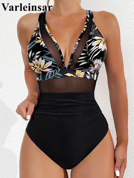 Splicing Deep V Neck Cross Back One Piece Swimsuit Women Swimwear Female Monokini Scrunch Butt Bather Bathing Suit Swim V3787