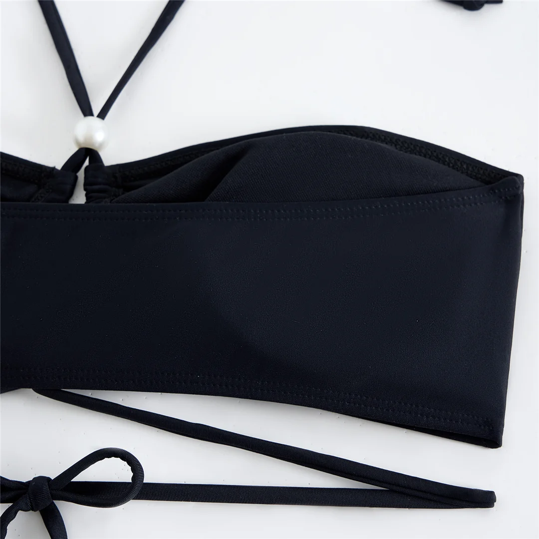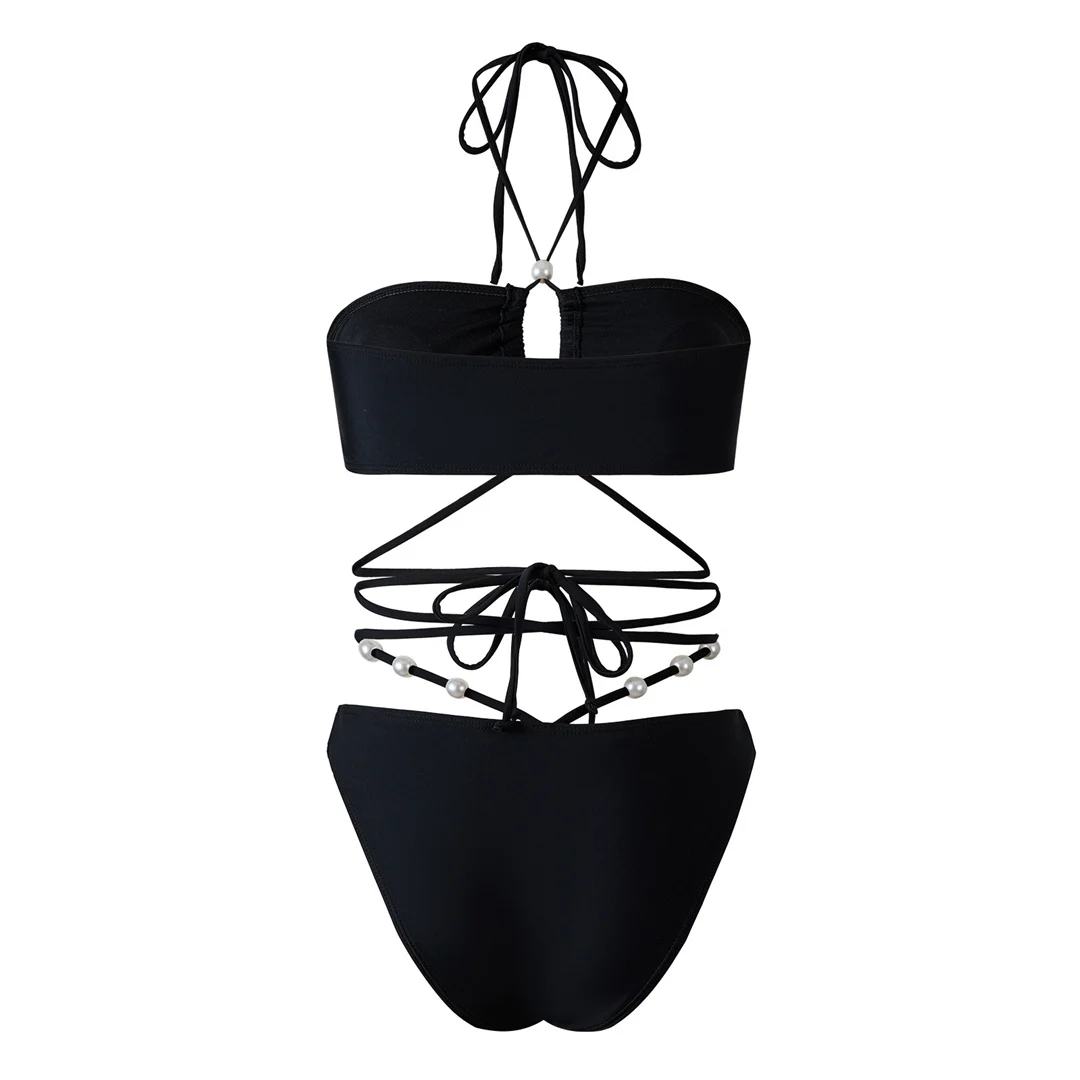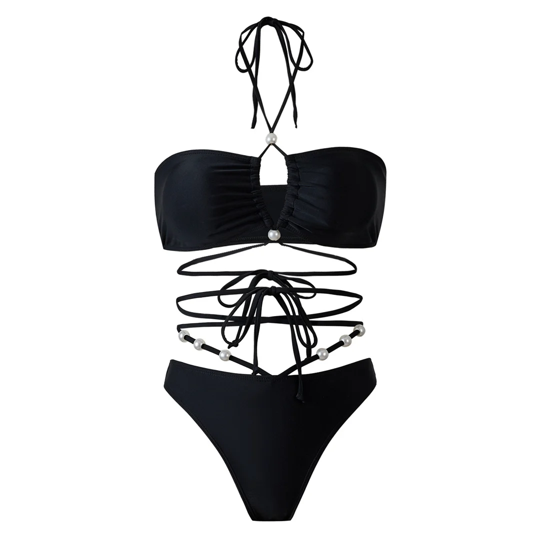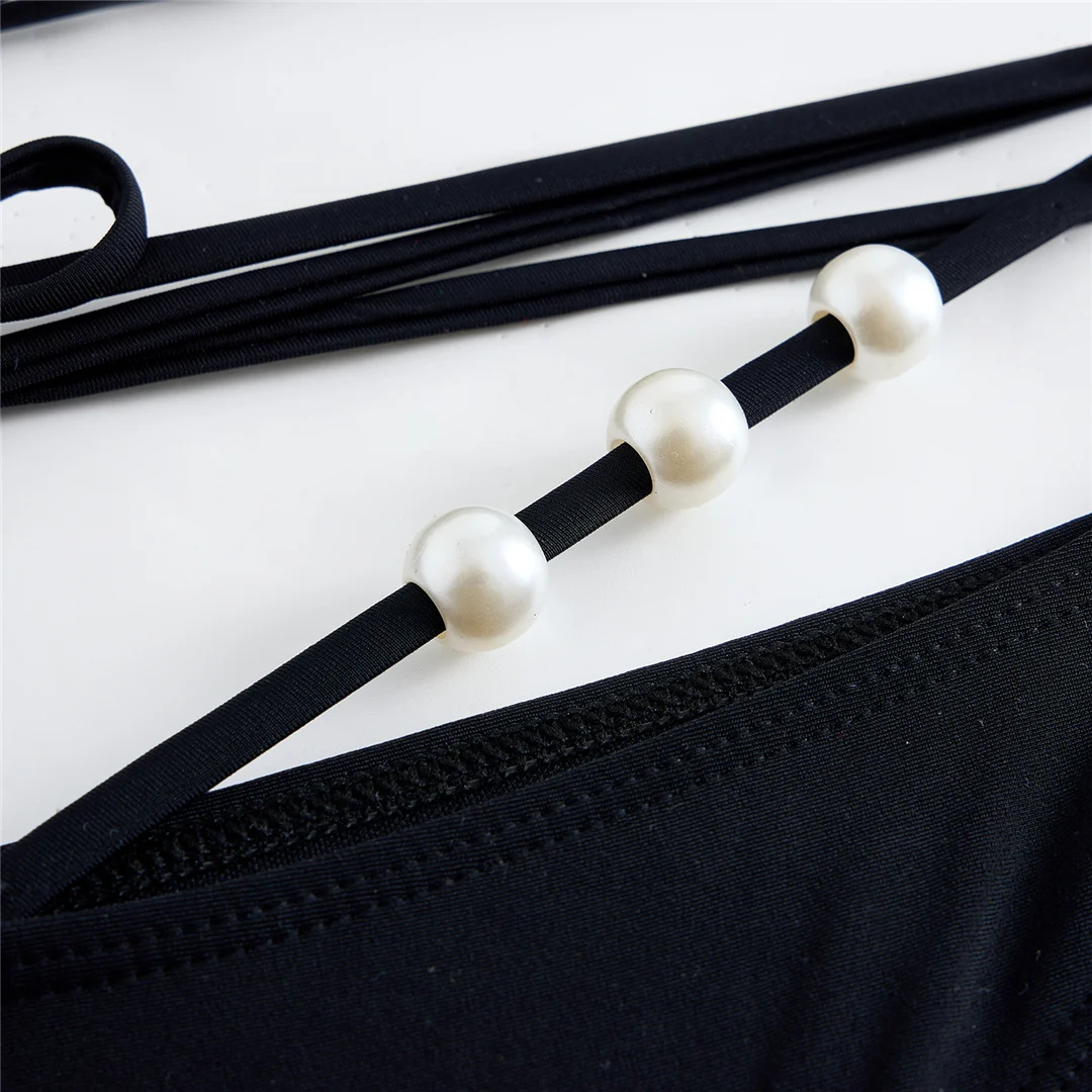 Pearl Wrap Around Halter With Skirt Bikini Women Swimwear Female Swimsuit Three-pieces Bikini set Bather Bathing Suit Swim V6098