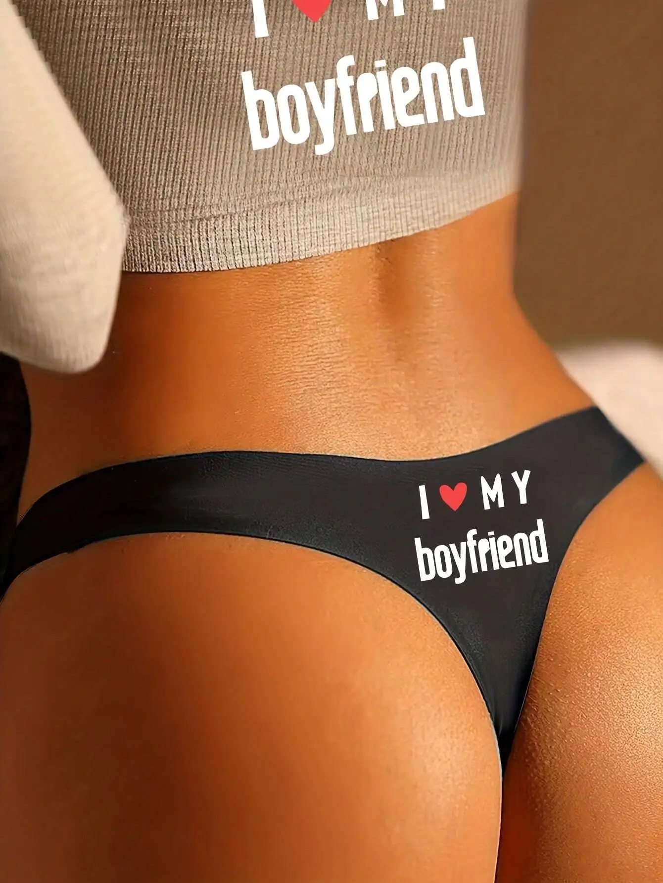 Playful Seamless Thong Quirky Letter Printed Underwear for Women Sexy Bikini with I Love My Boyfriend Prints Panties Large Size