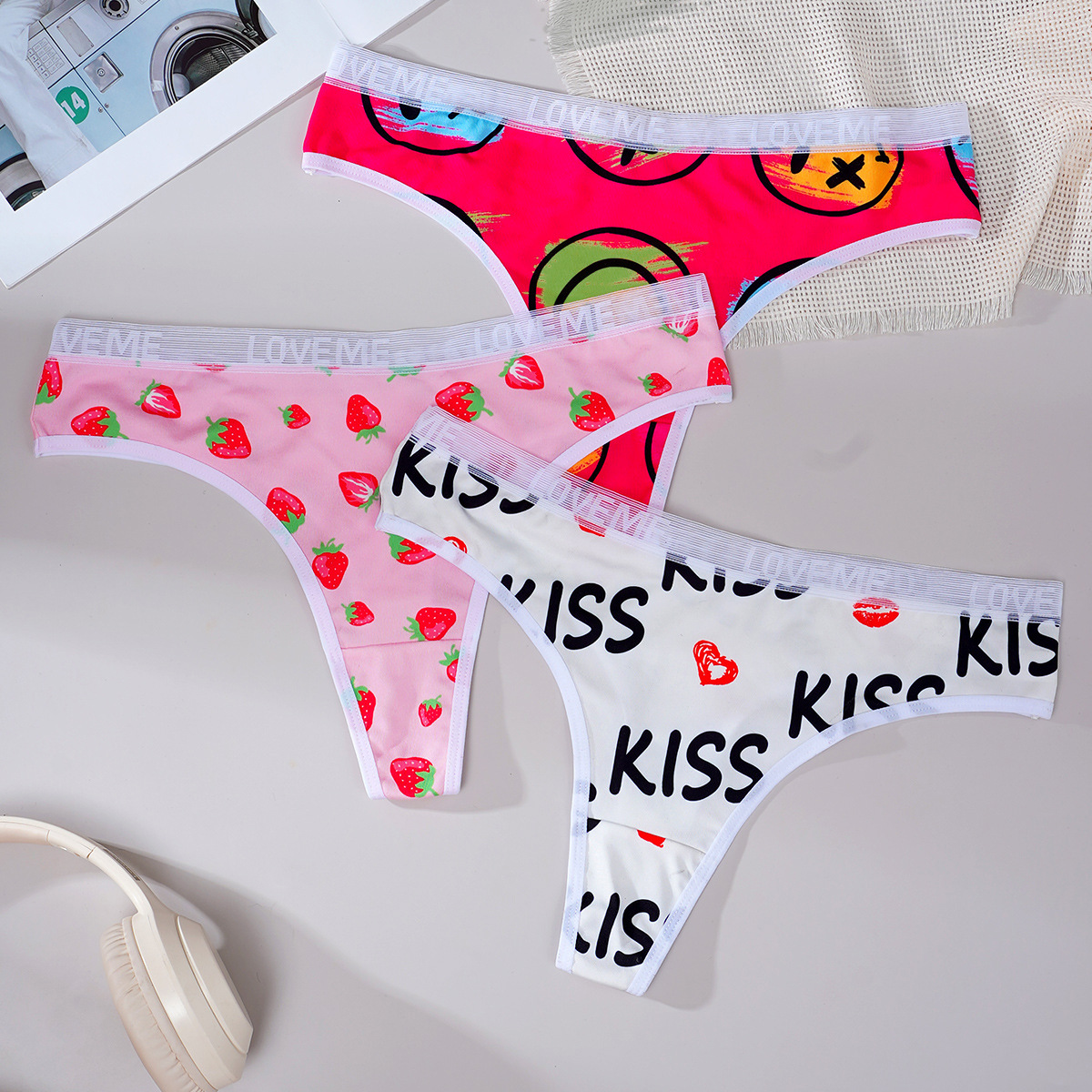 Playful Seamless Thong Sexy Bikini Panties Quirky Print Underwear for Women Large Size S-XL