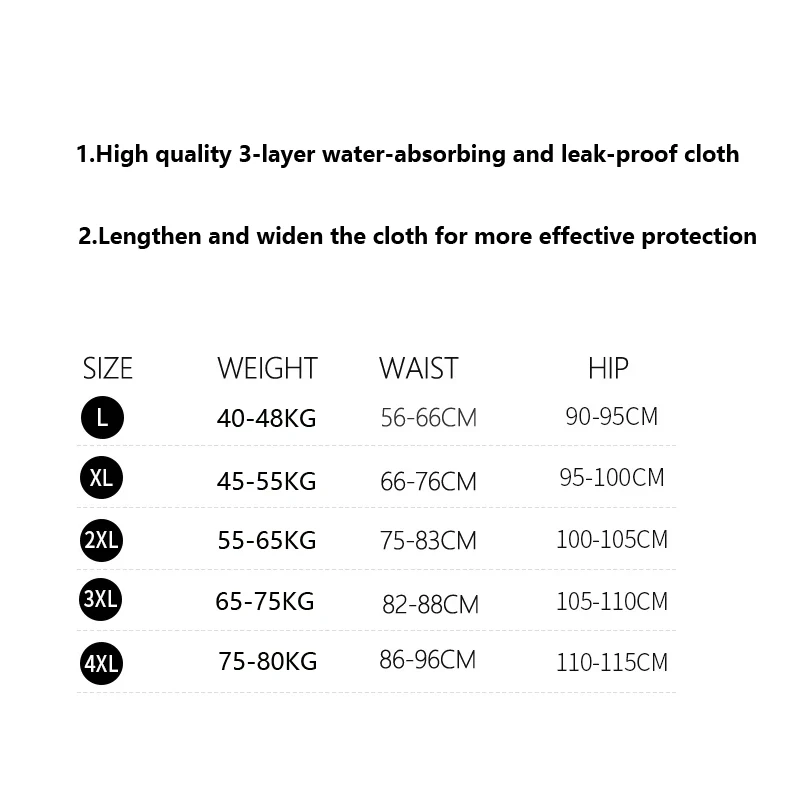 1.High quality 3-layer water-absorbing and leak-proof cloth;