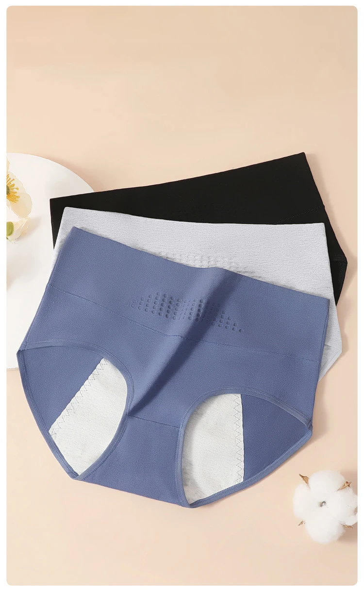 Plus Size 3Pcs High Waist Menstrual Women Panties Widen Period Pants Leak Proof Physiological Underwear Cotton Female Briefs 4XL