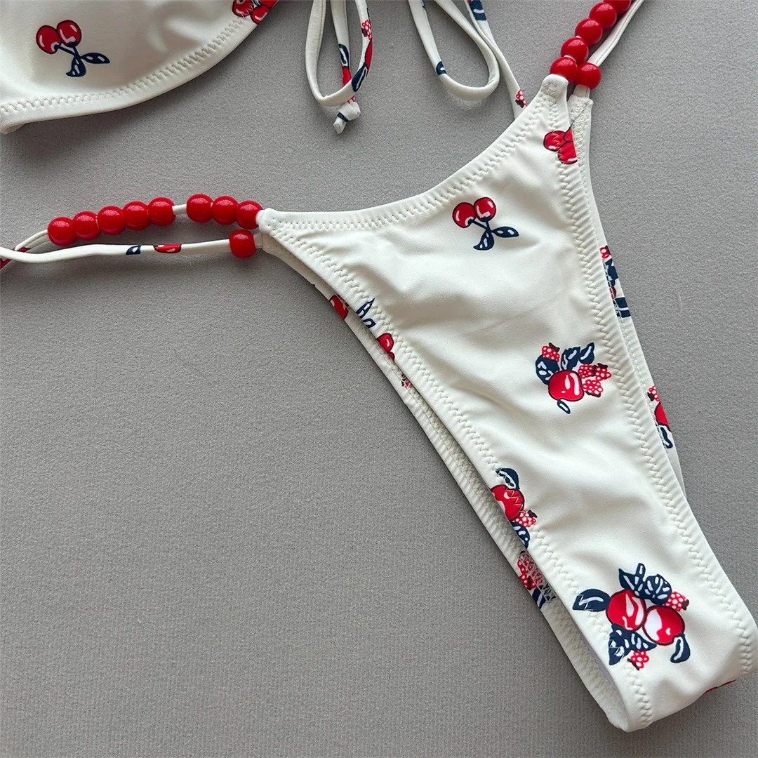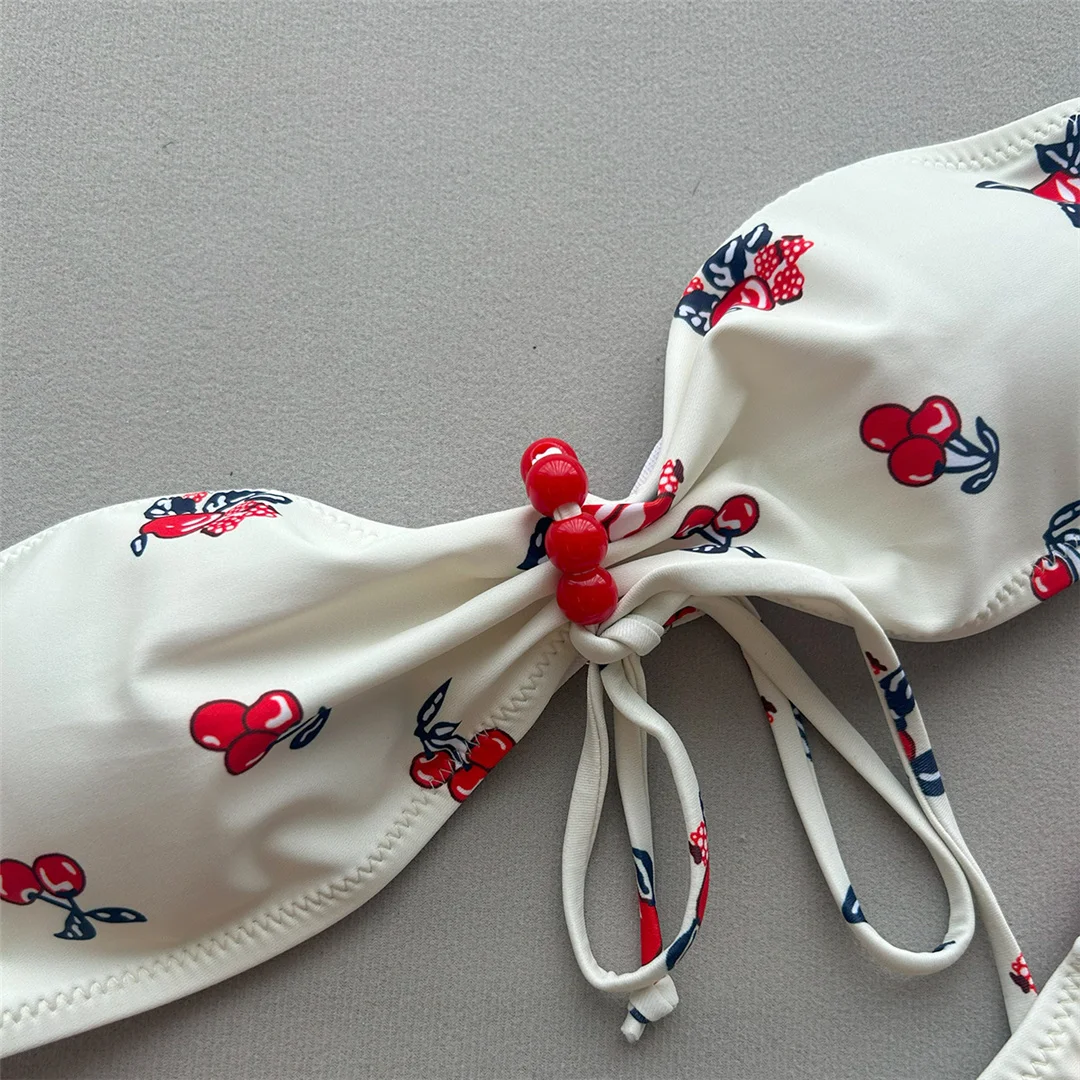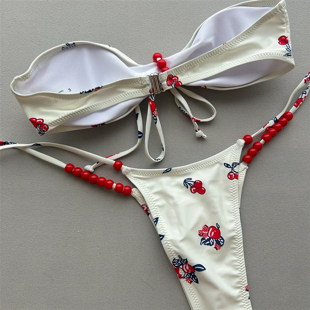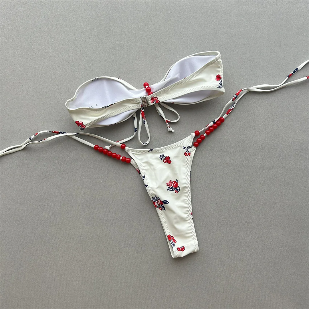 Printed Bandeau Bikini Women Swimwear Female Swimsuit Two-pieces Bikini set High Leg Cut Padded Bather Bathing Suit Swim V7396