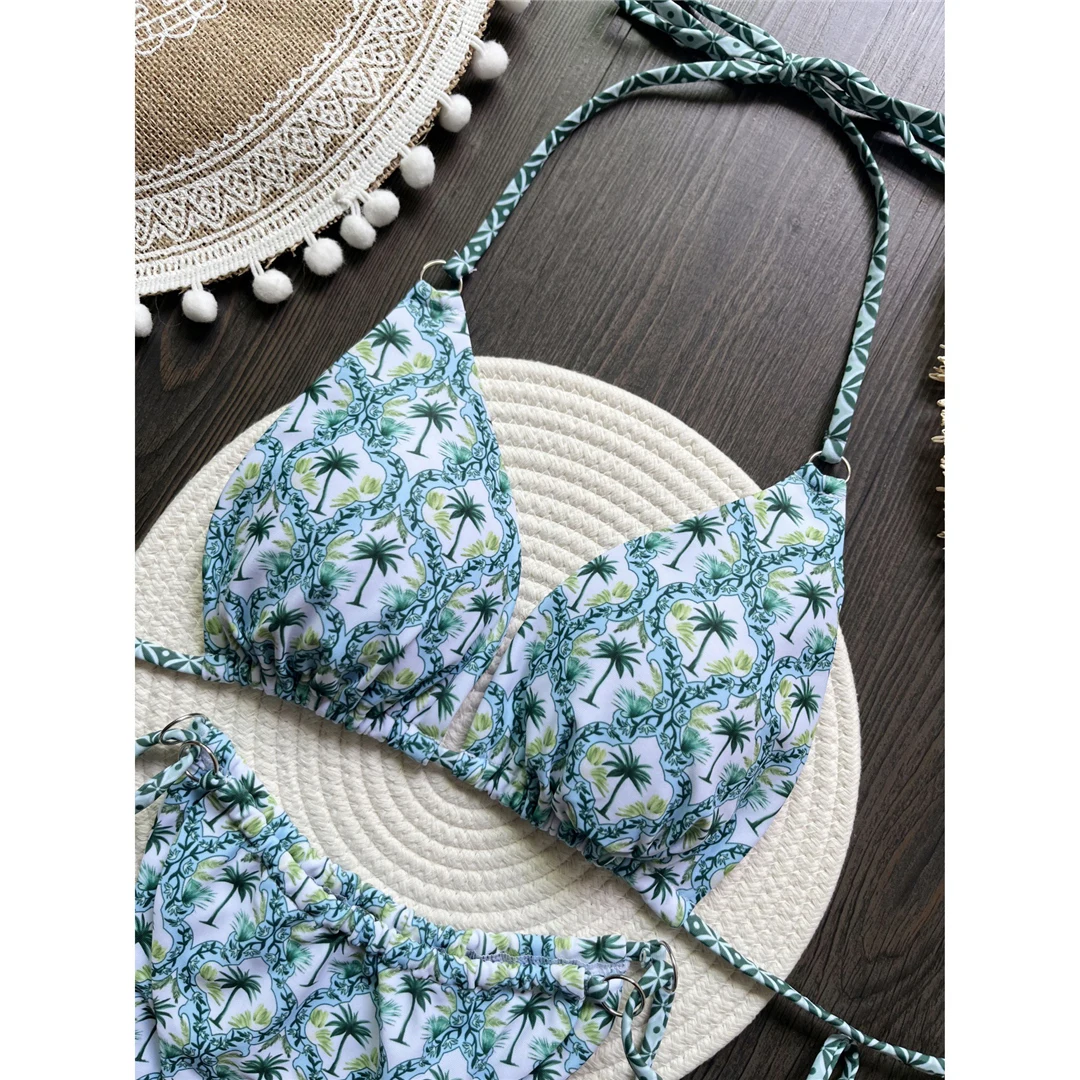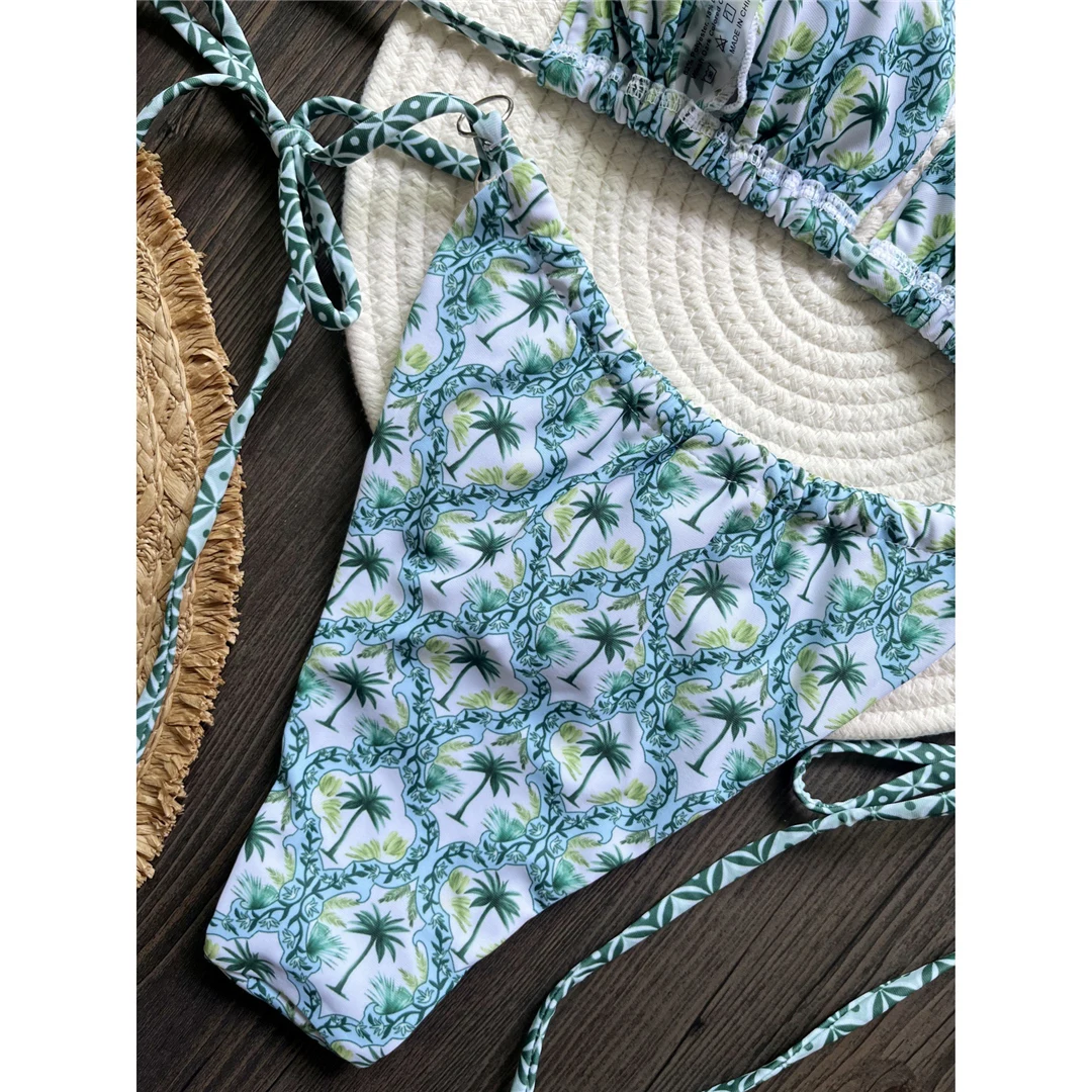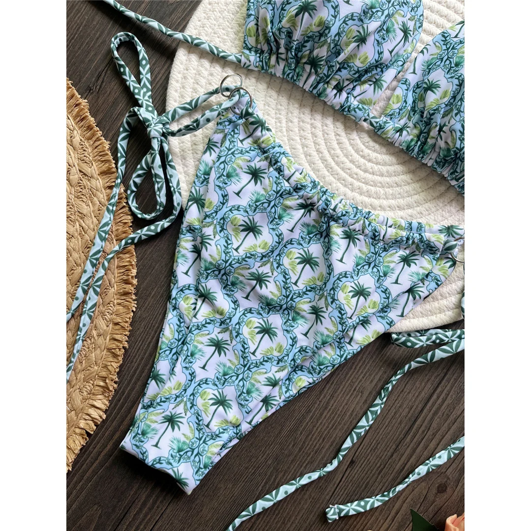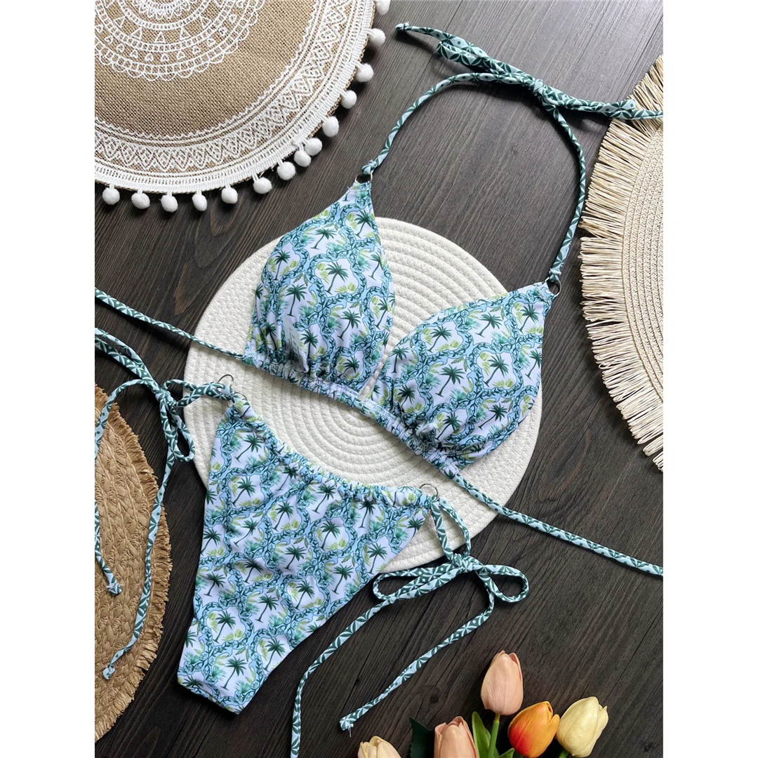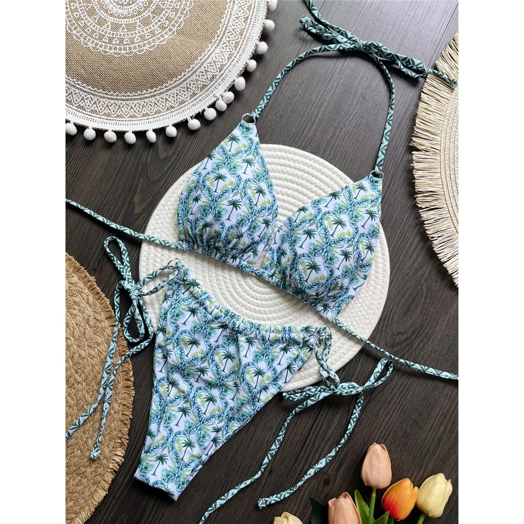Printed Halter Brazilian High Leg Cut Bikini Women Swimwear Female Swimsuit Two-pieces Bikini set Bather Bathing Suit Swim V6052