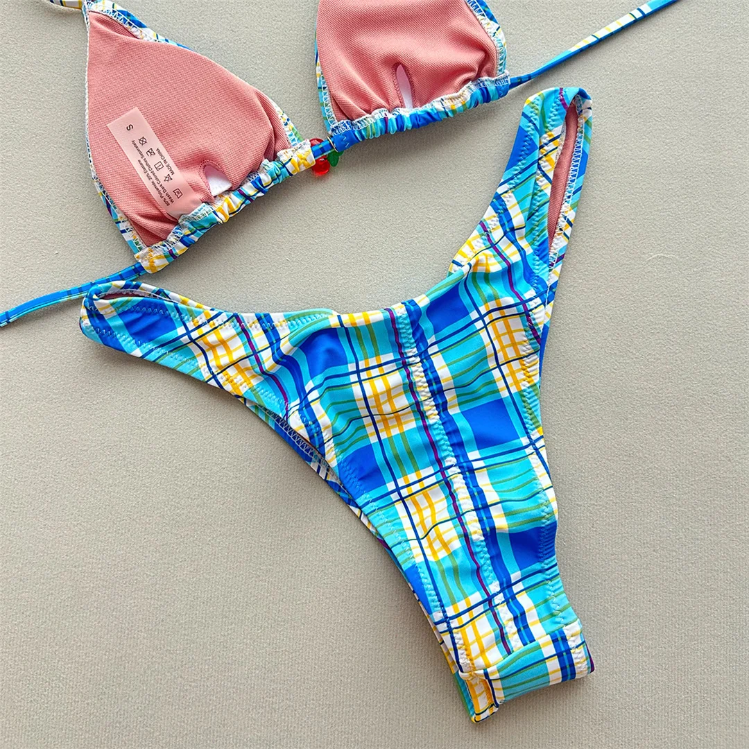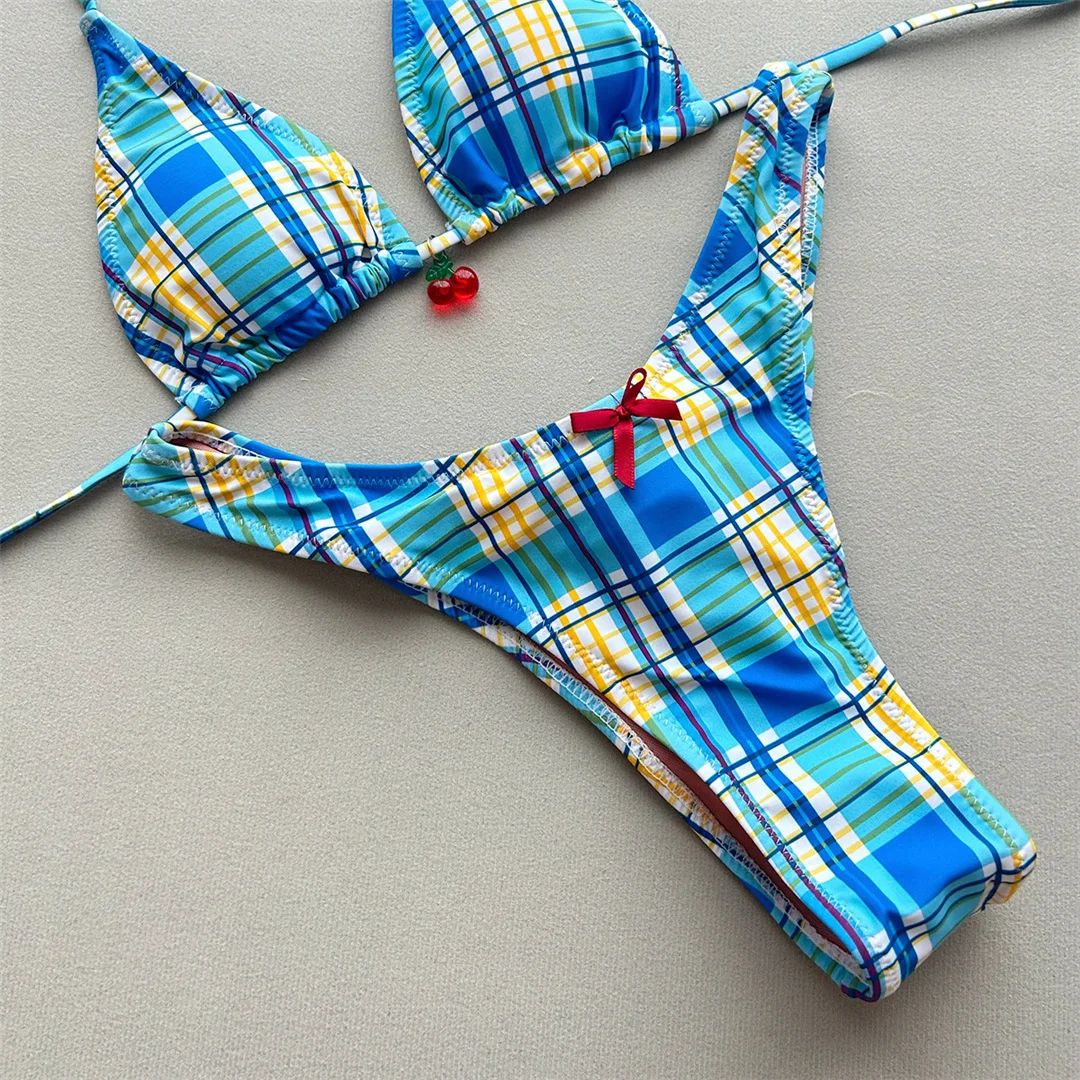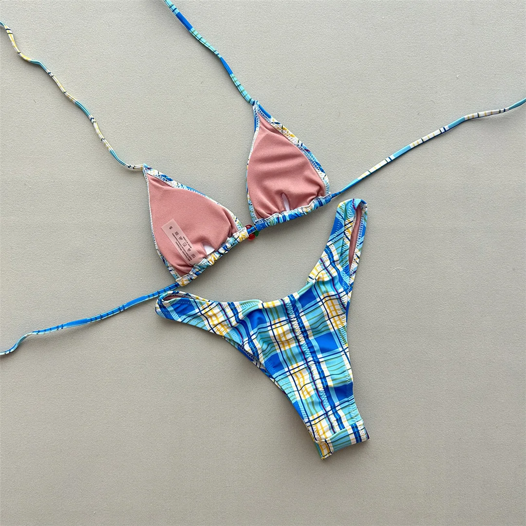 Printed Halter Scrunch Butt Bikini Female Swimsuit Women Swimwear Two-pieces Bikini set Brazilian Bather Bathing Suit Swim V7397
