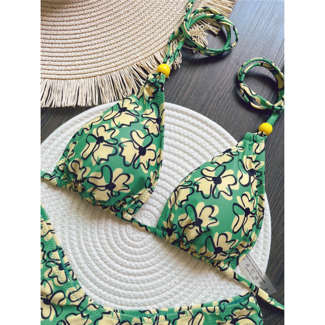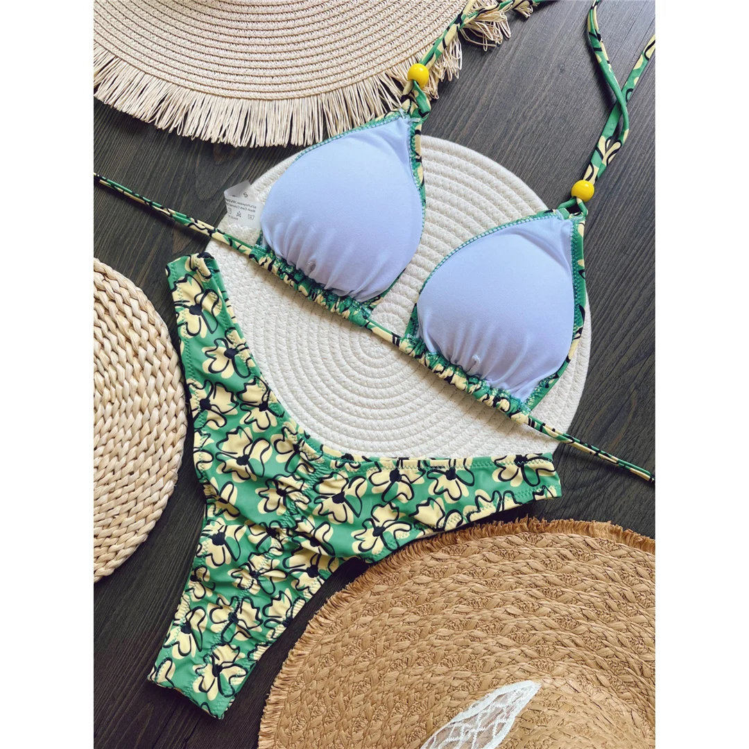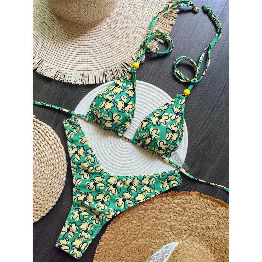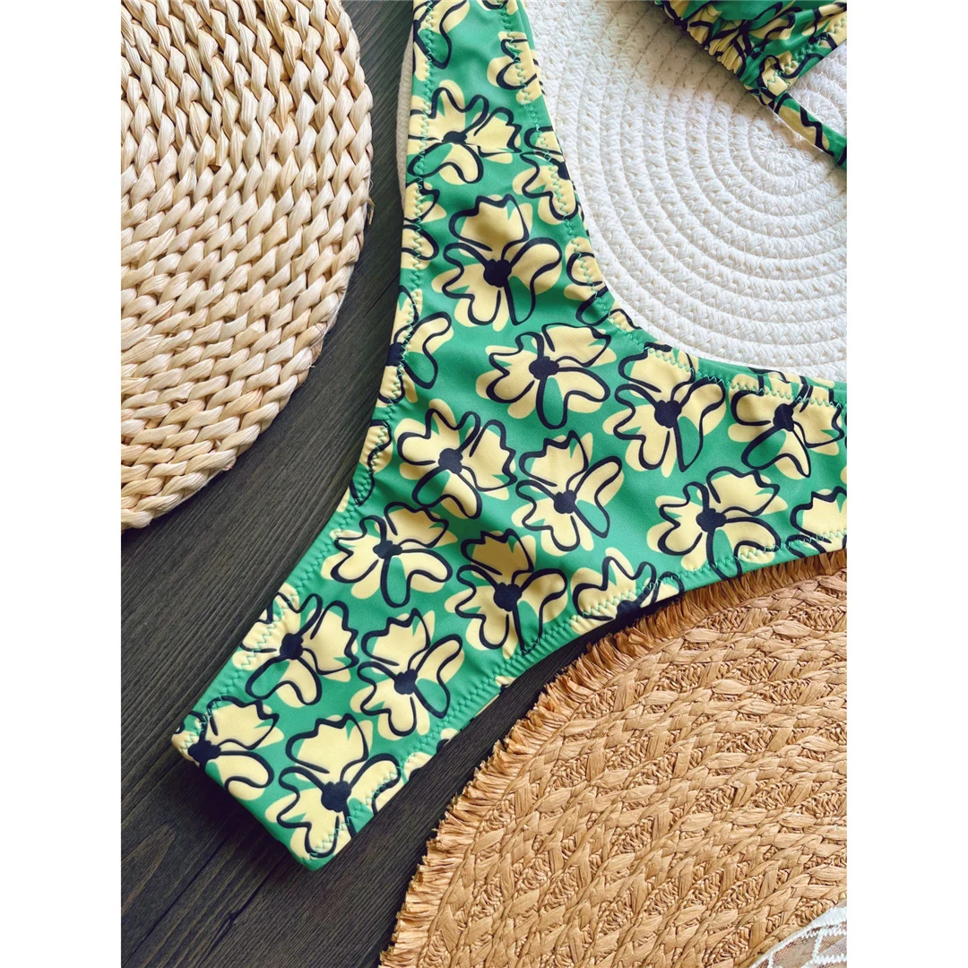 Printed Halter Scrunch Butt High Cut Bikini Women Swimwear Female Swimsuit Two-pieces Bikini set Bather Bathing Suit Swim V6069