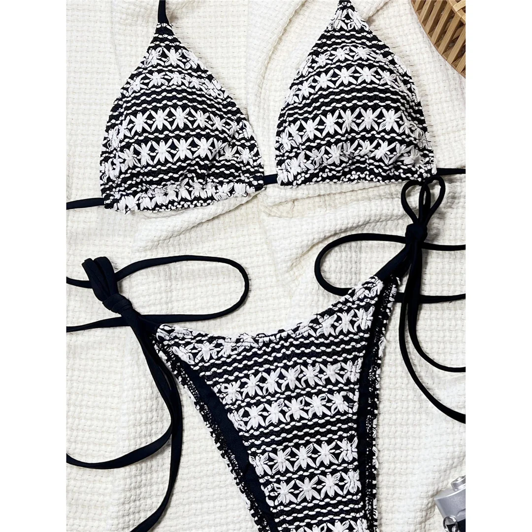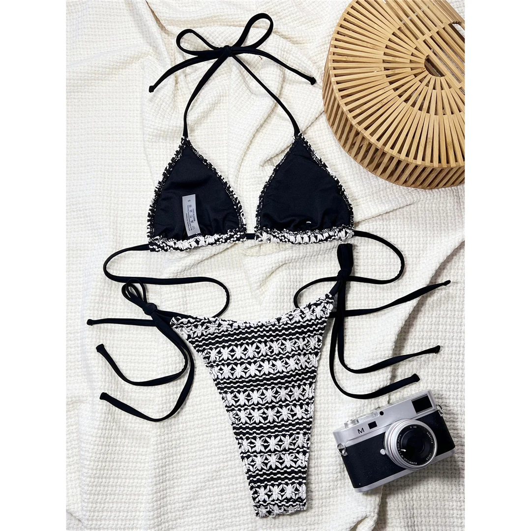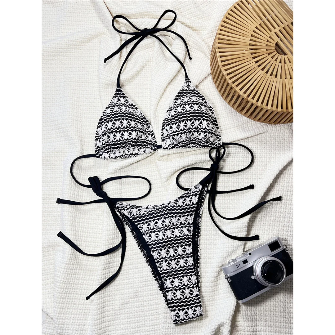 Printed Halter Strappy High Leg Cut Bikini Female Swimsuit Women Swimwear Two-pieces Bikini set Bather Bathing Suit Swim V6481