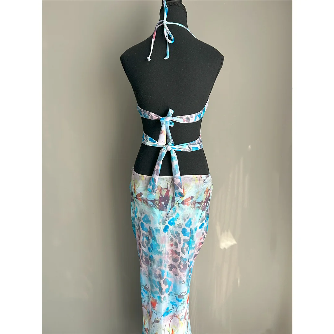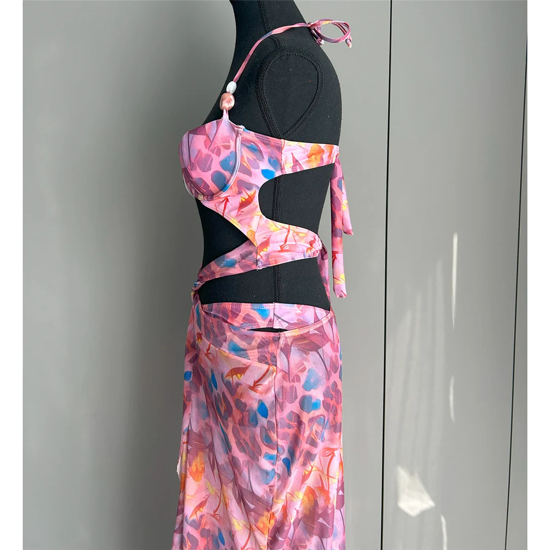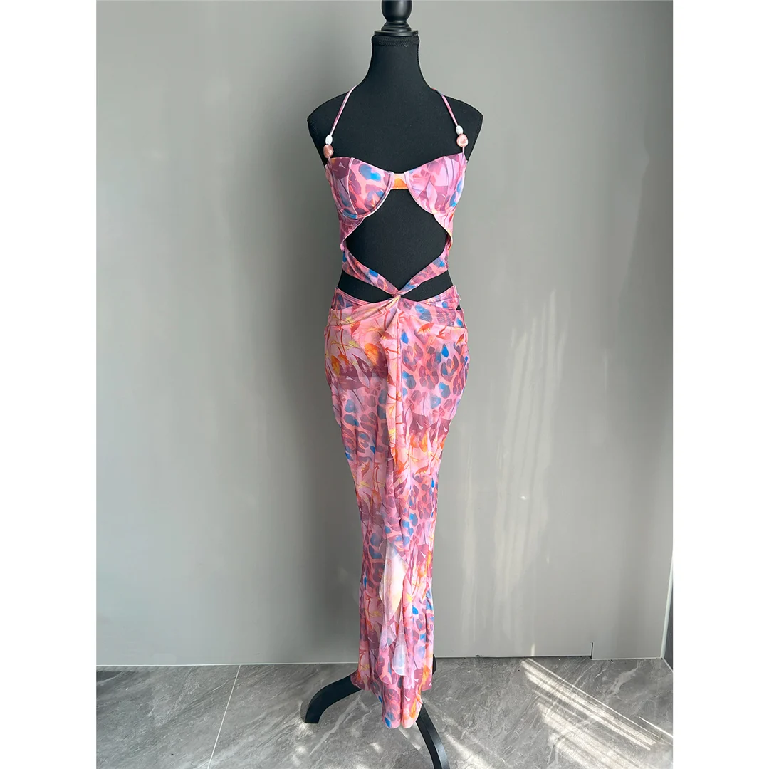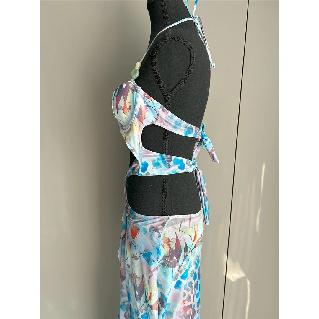 Printed With Skirt Halter Bikini Female Swimsuit Women Swimwear Two-pieces Bikini set Underwired Bather Bathing Suit Swim V6585