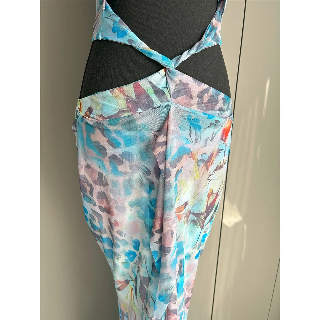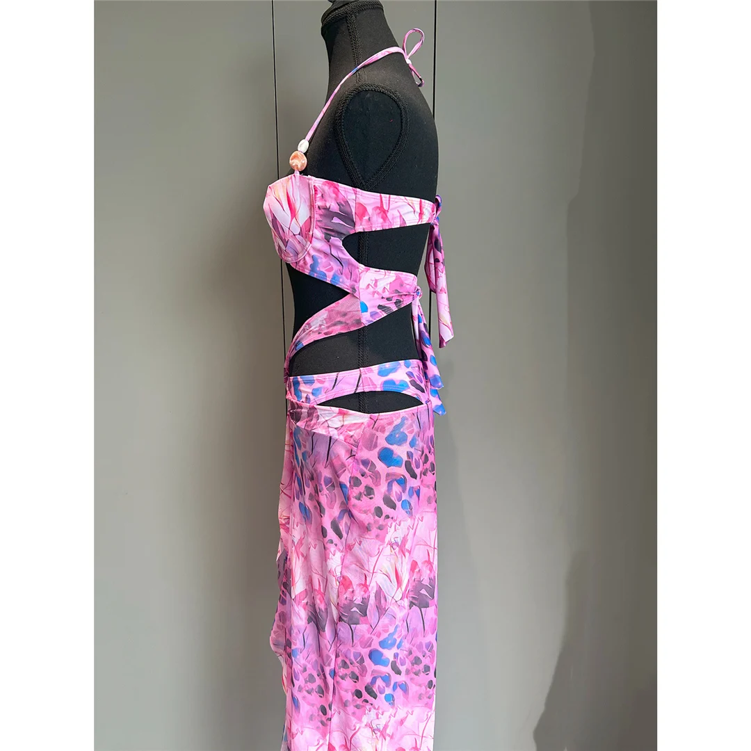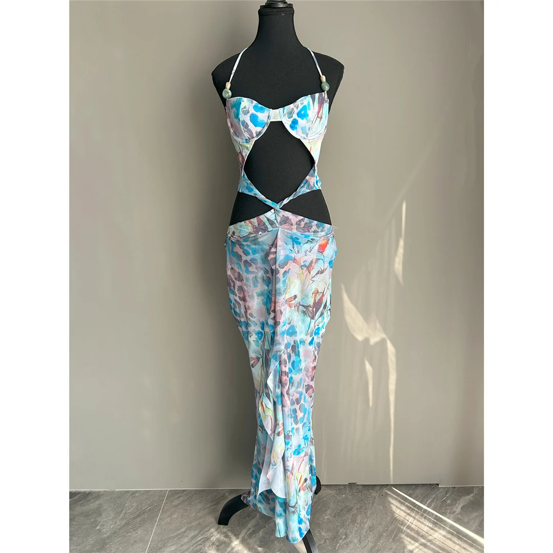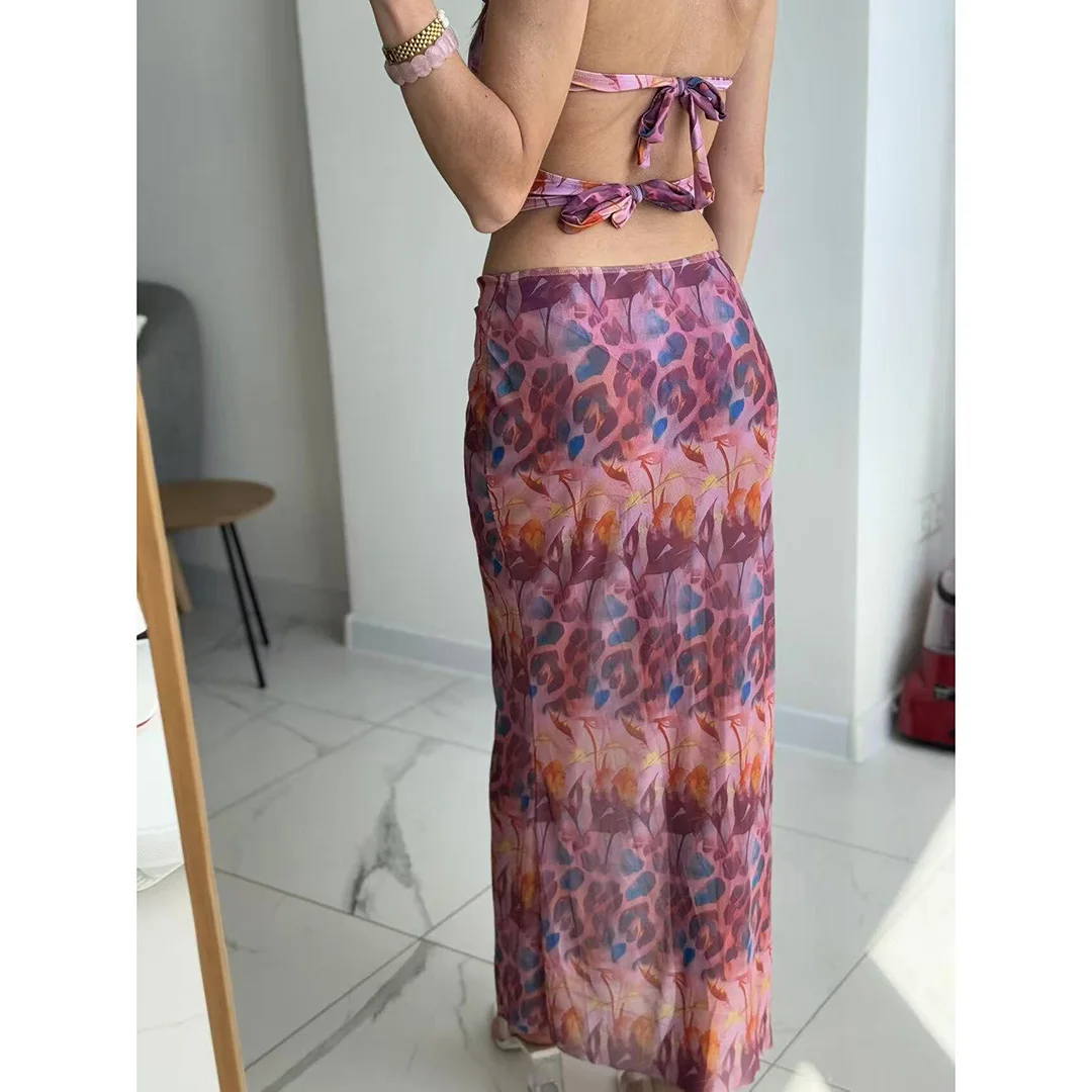 Printed With Skirt Halter Bikini Female Swimsuit Women Swimwear Two-pieces Bikini set Underwired Bather Bathing Suit Swim V6585