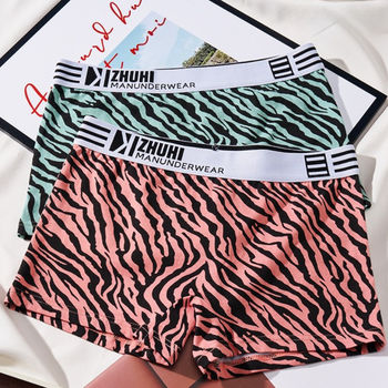 Cotton Women’s Underwear Zebra Printed Boxer Breathable Mid-rise Lingerie Sexy Boyshorts Seamless Briefs Underpants Safety Pants