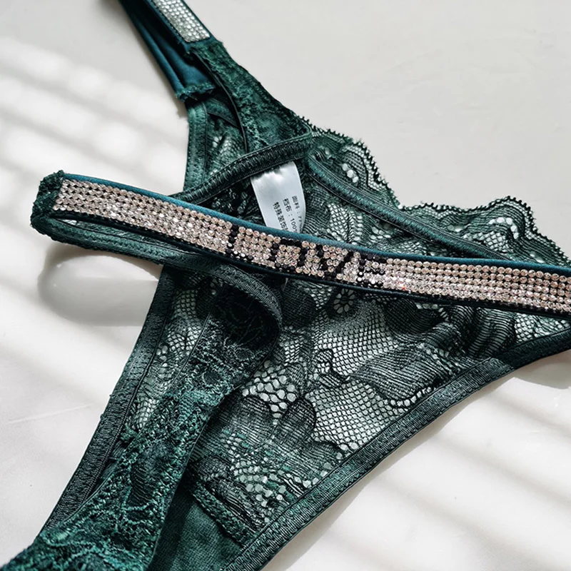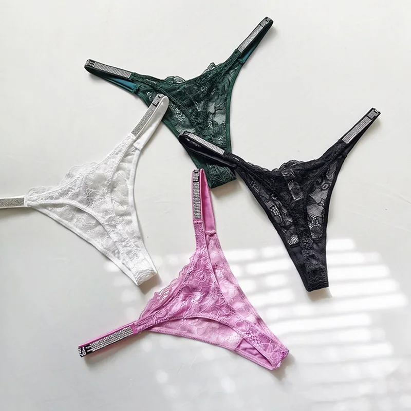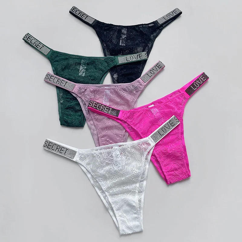 Rhinestone Lace Letter Sexy G String Women Panties Seamless Girls Underwear Transparent Thong For Female Low Rise Ladies Briefs