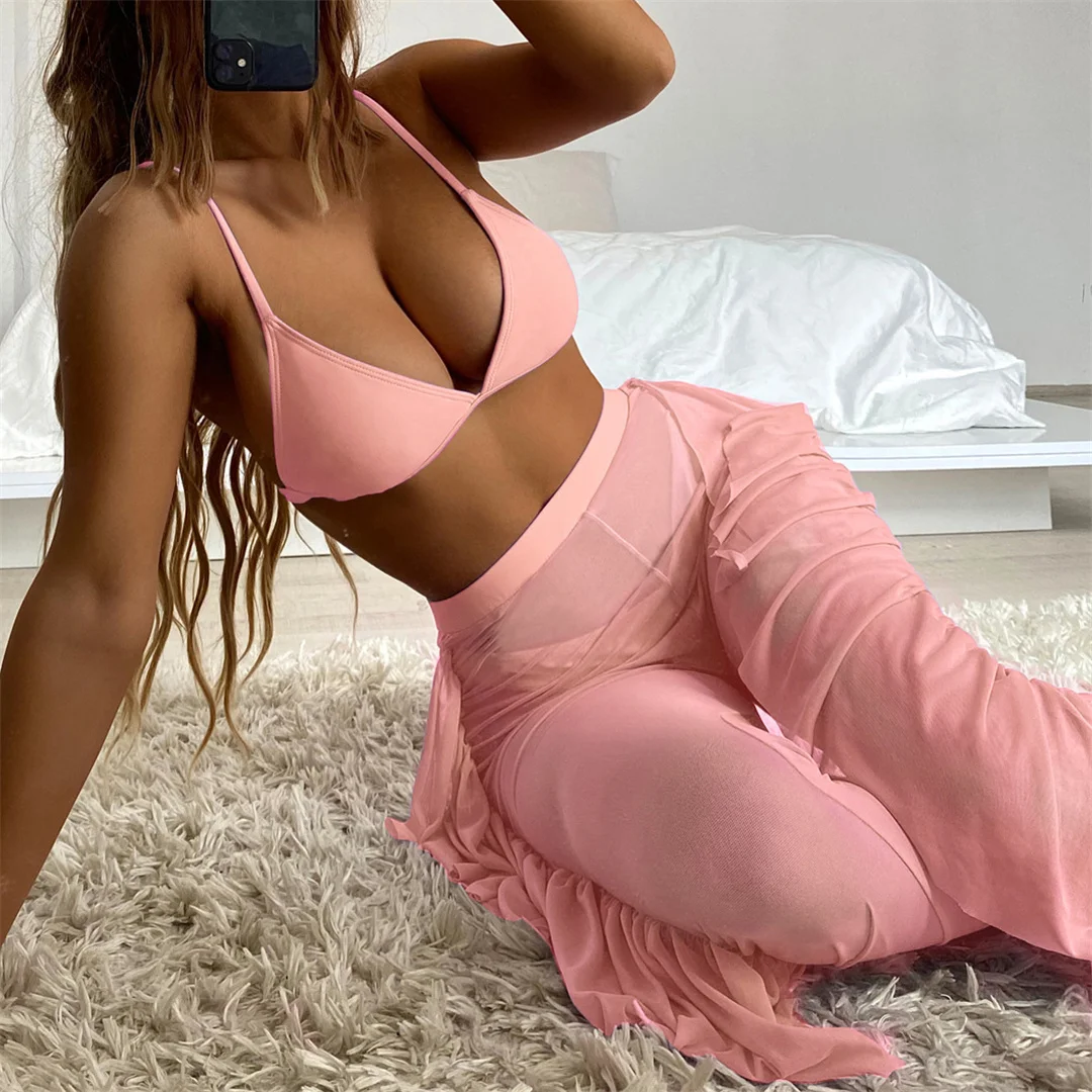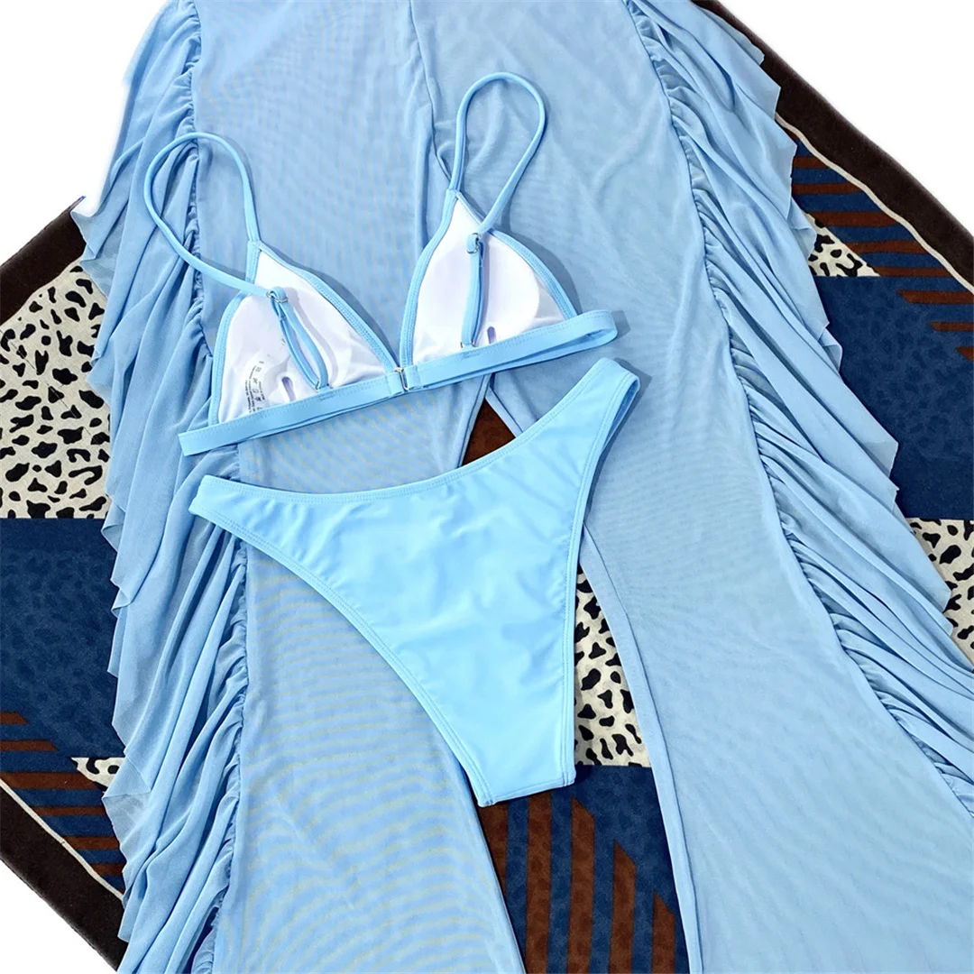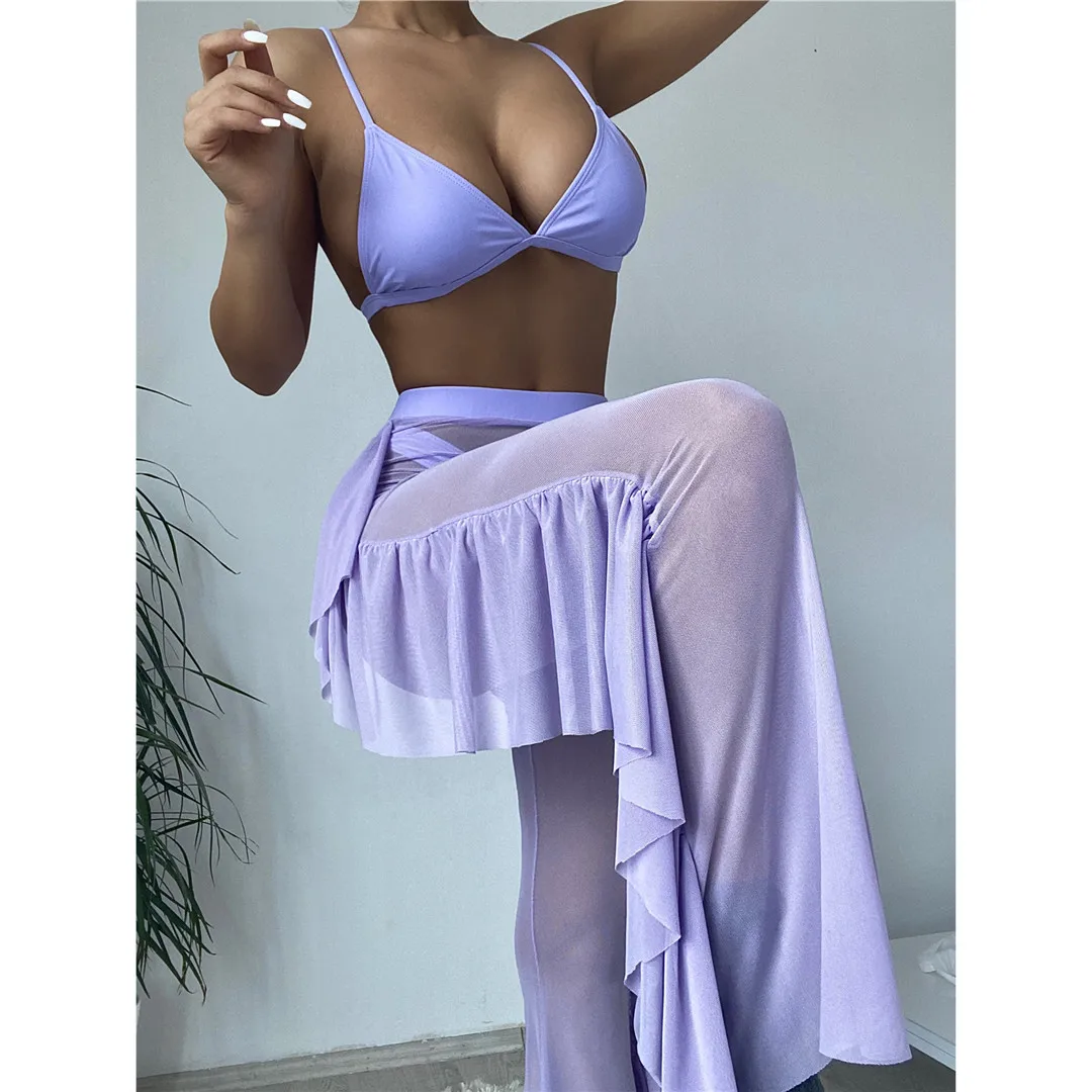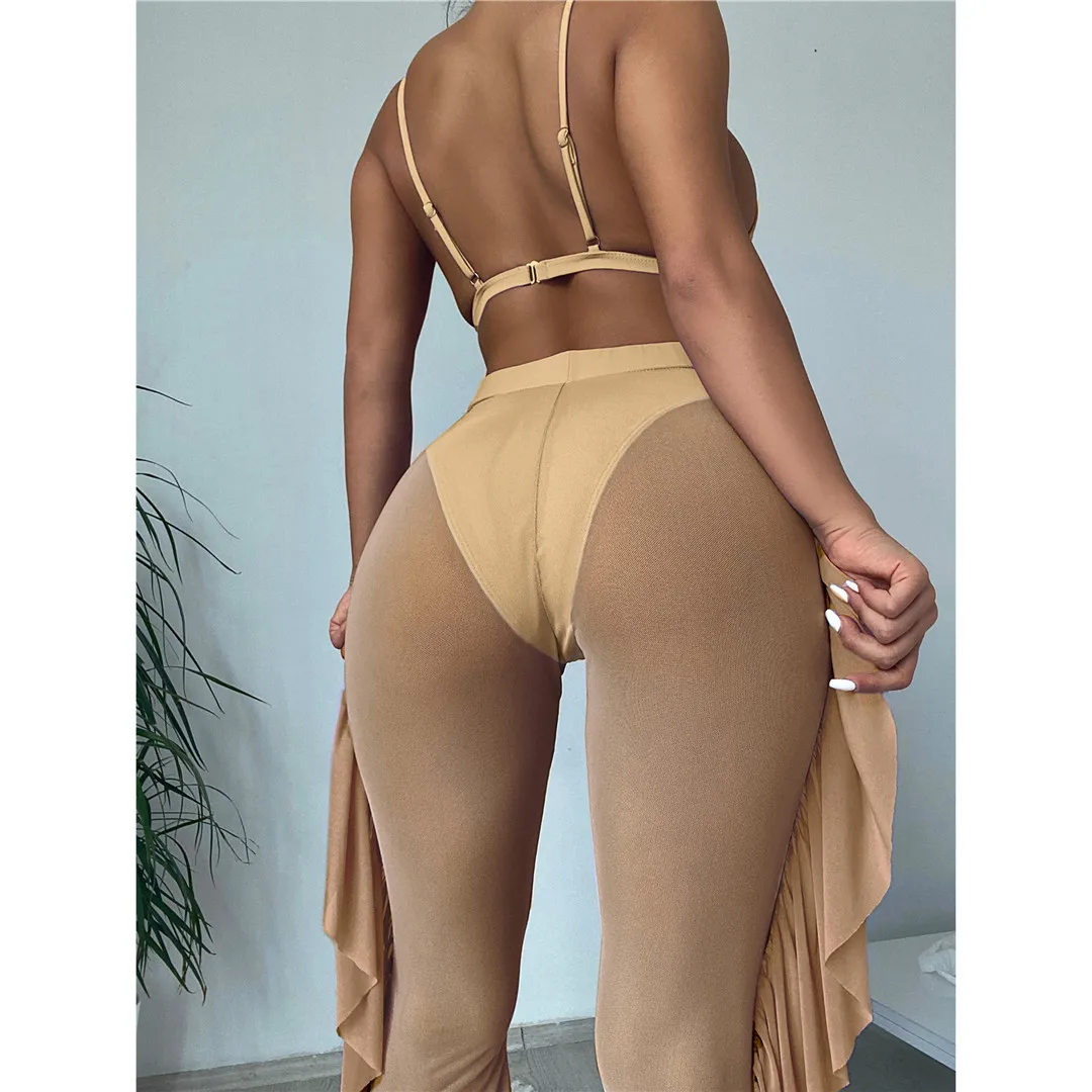 S- XL 3 PCS Bikini Female Swimsuit Women Swimwear Three-piece Bikini set With Ruffled Beach Pants Bather Bathing Suit Swim V3005