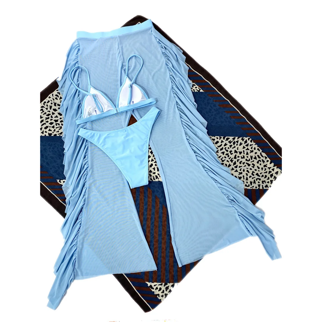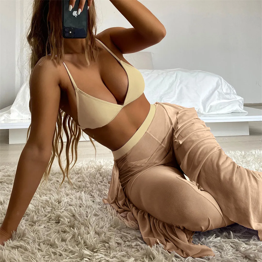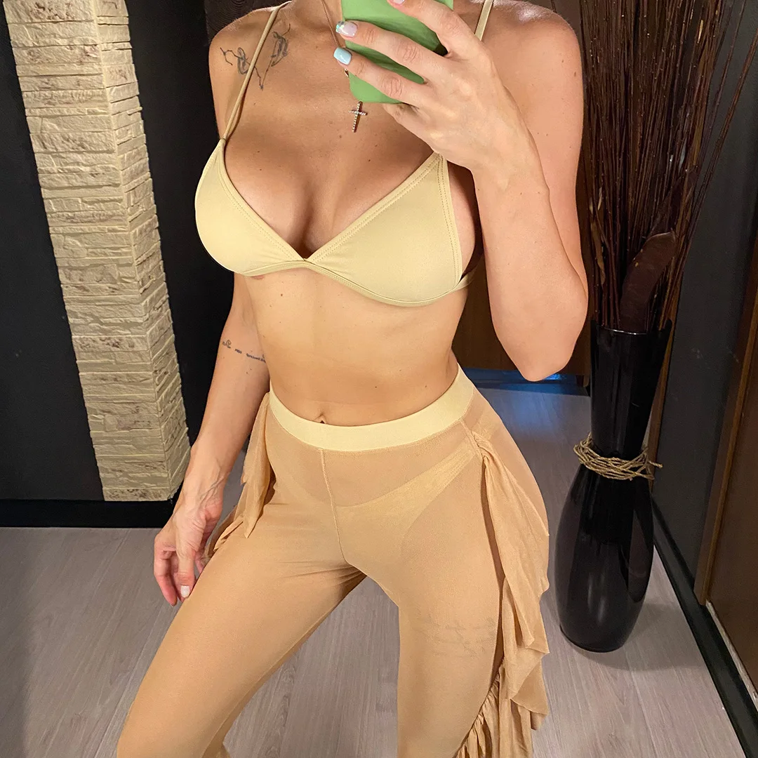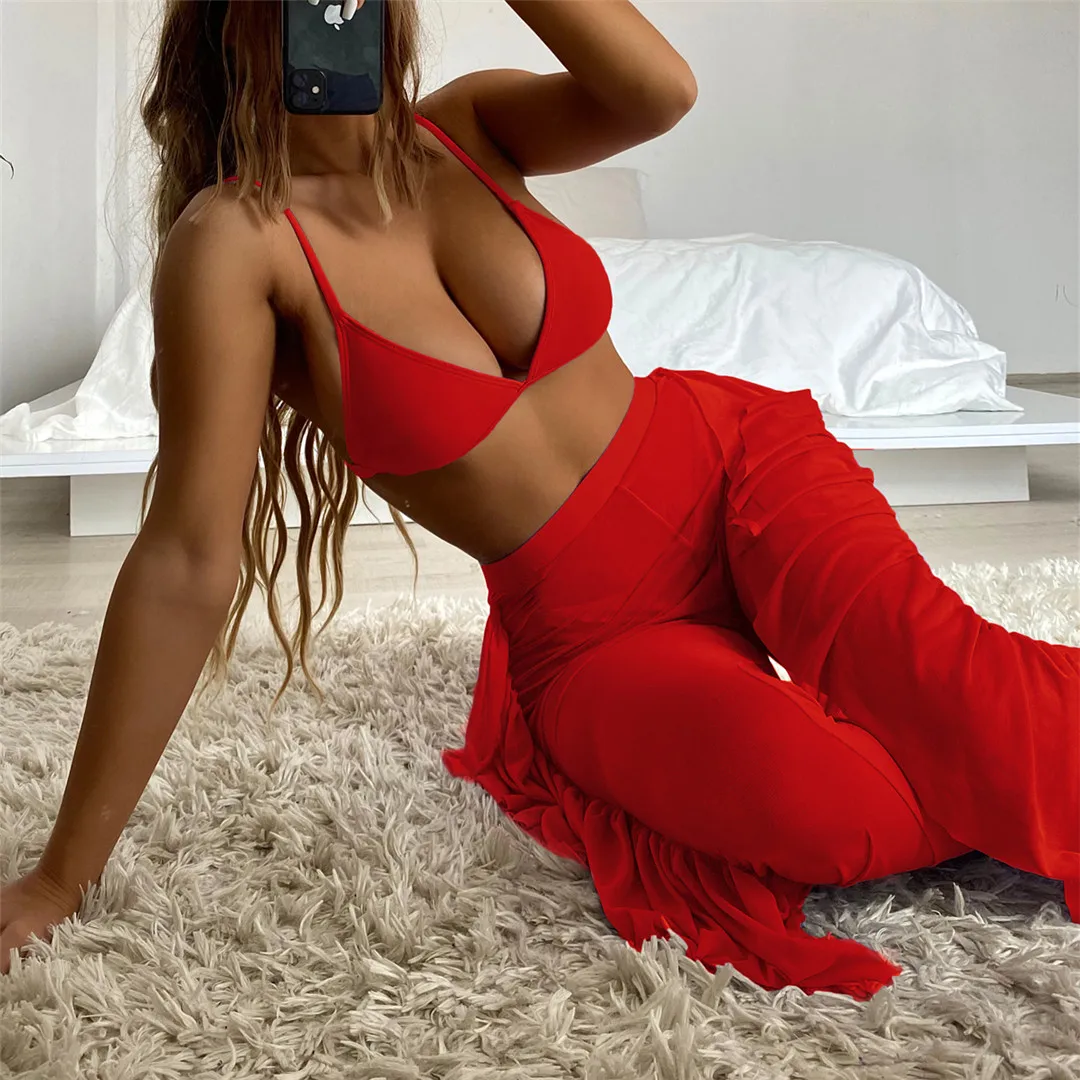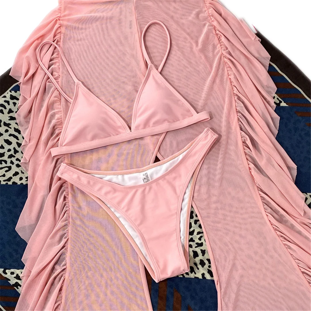 S- XL 3 PCS Bikini Female Swimsuit Women Swimwear Three-piece Bikini set With Ruffled Beach Pants Bather Bathing Suit Swim V3005