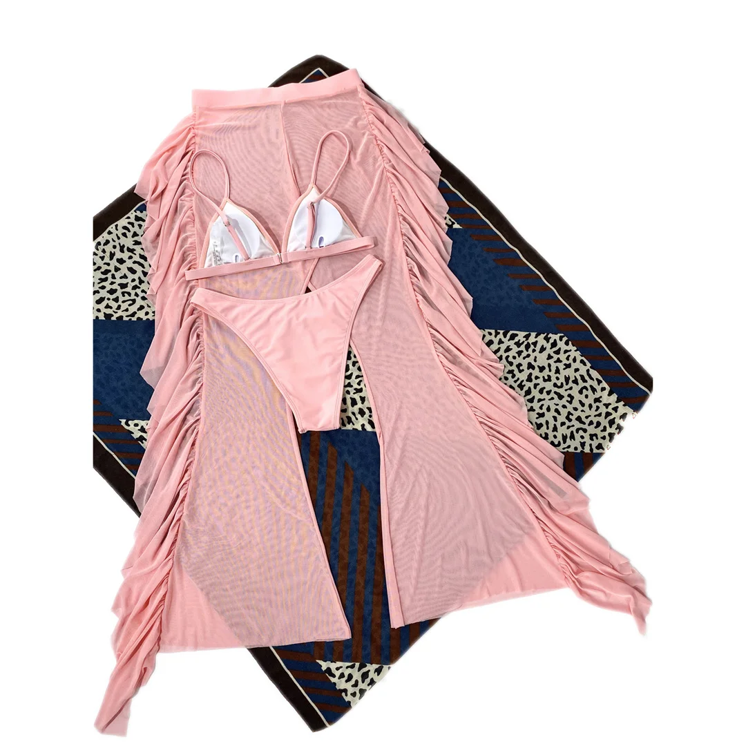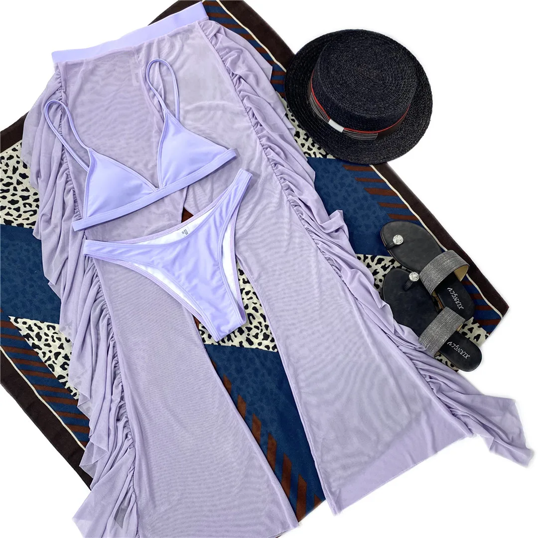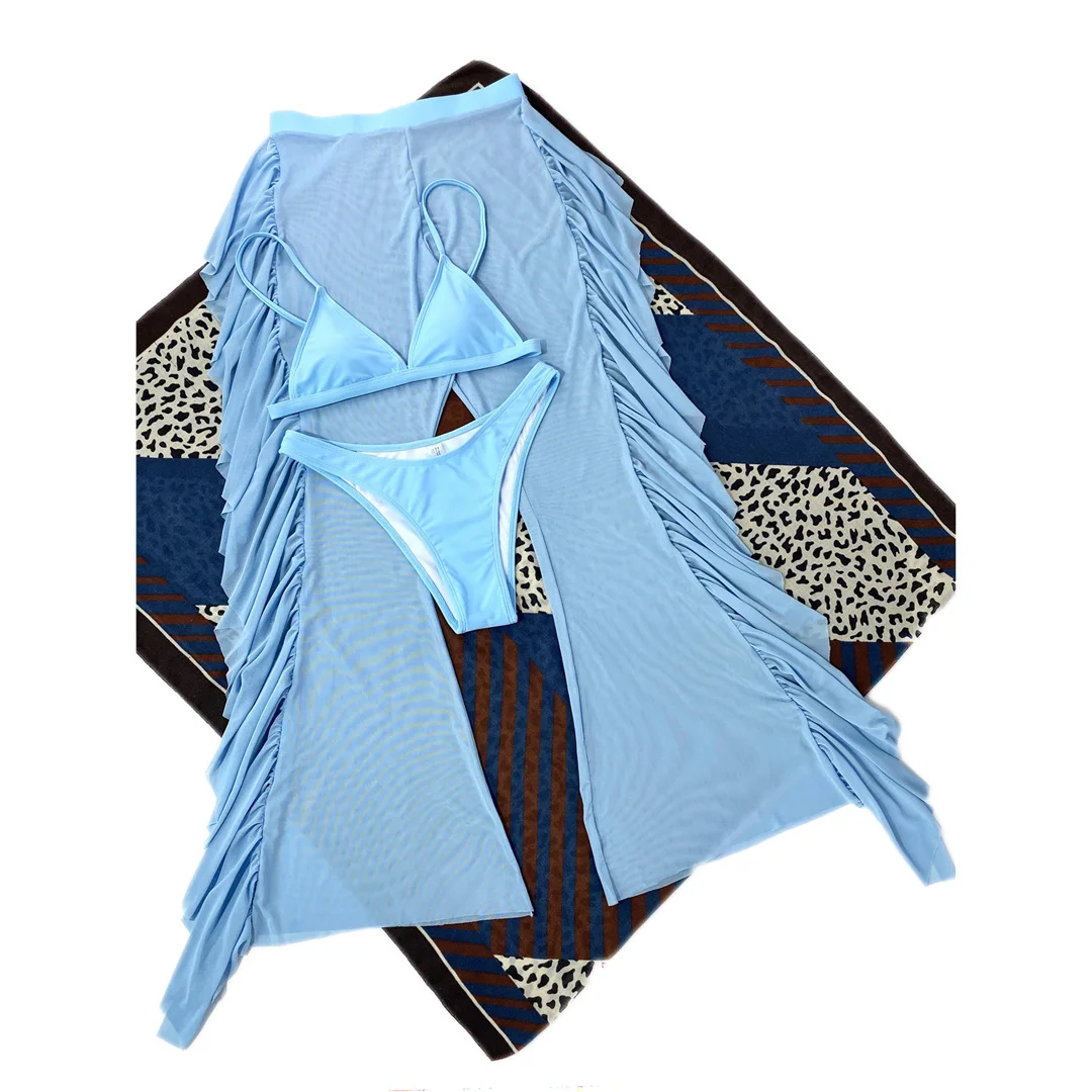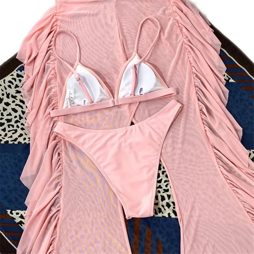 S- XL 3 PCS Bikini Female Swimsuit Women Swimwear Three-piece Bikini set With Ruffled Beach Pants Bather Bathing Suit Swim V3005