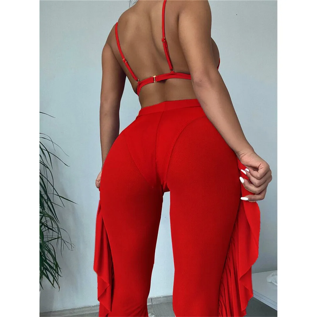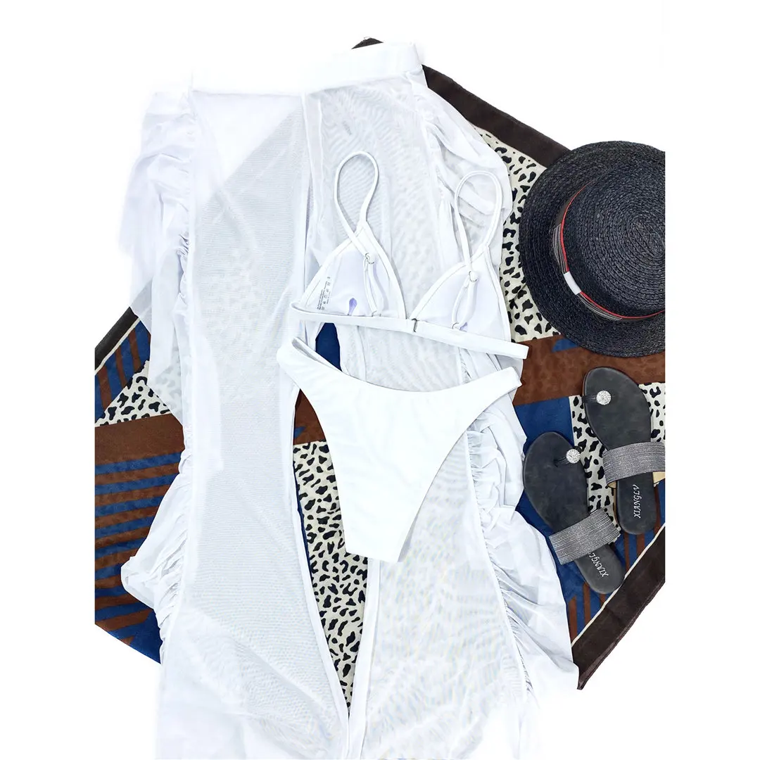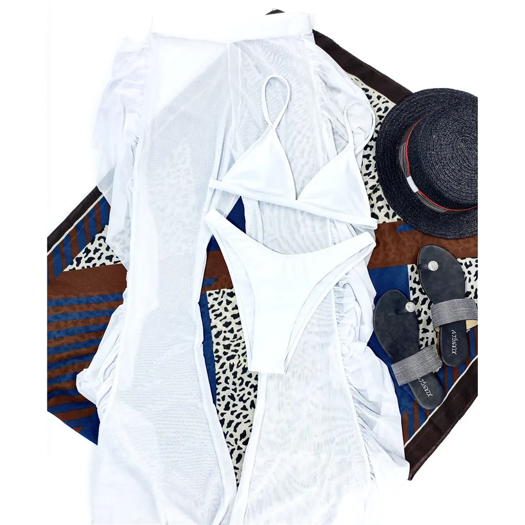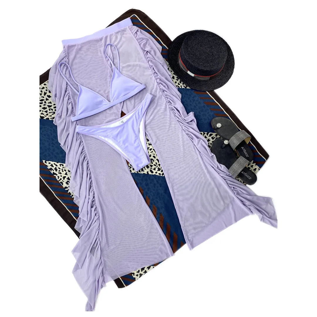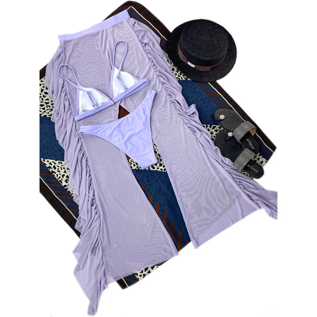 S- XL 3 PCS Bikini Female Swimsuit Women Swimwear Three-piece Bikini set With Ruffled Beach Pants Bather Bathing Suit Swim V3005