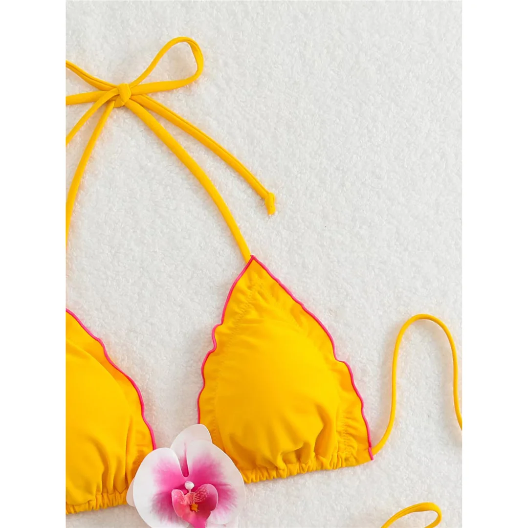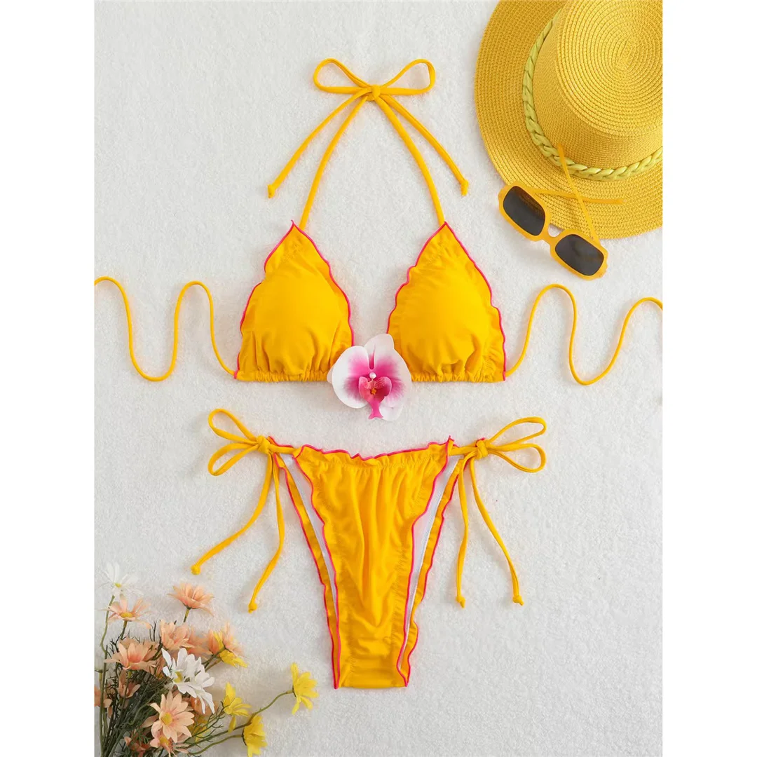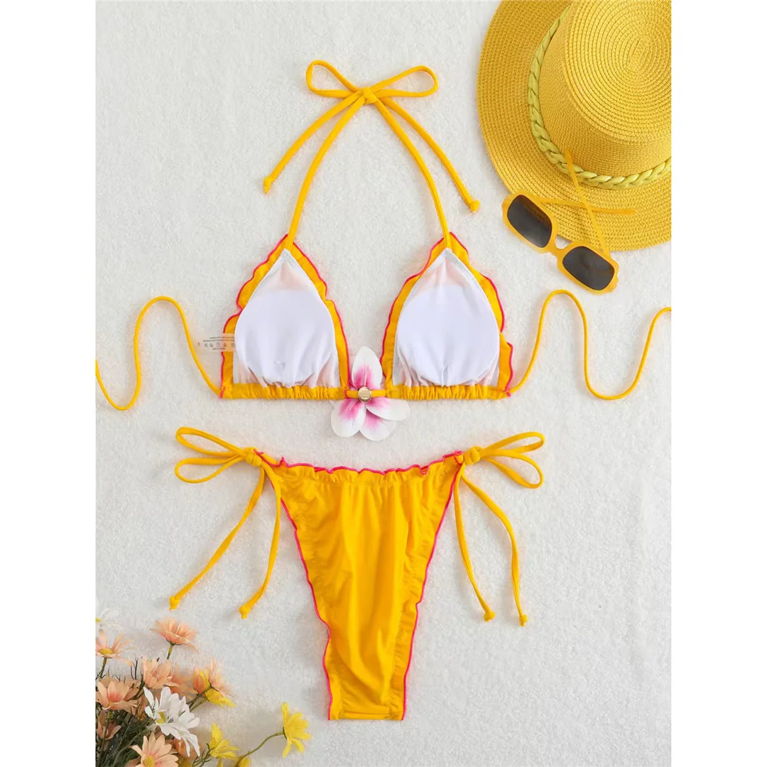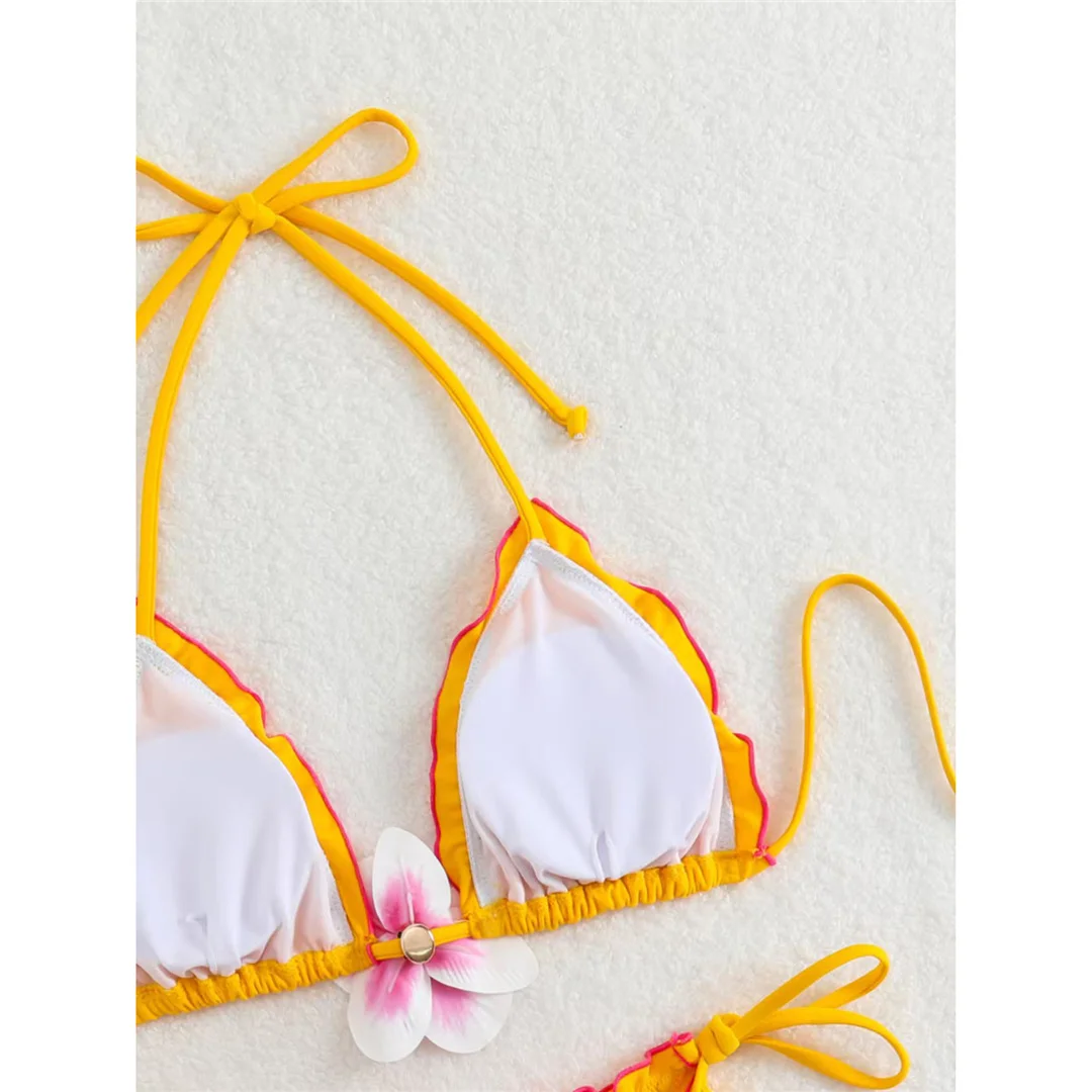 S – XL 3D Flower Halter Bikini Women Swimwear Female Swimsuit Two-pieces Bikini set High Leg Cut Bather Bathing Suit Swim V7325