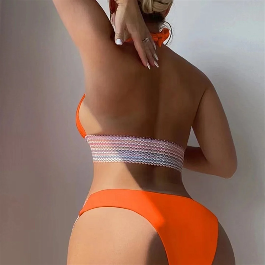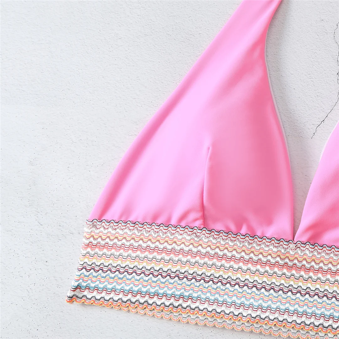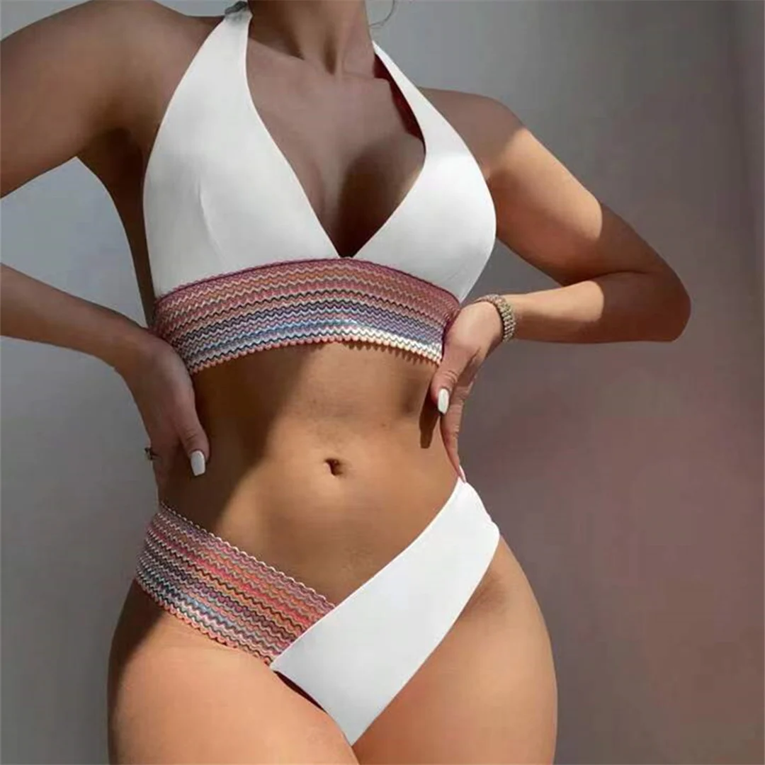 S – XL 5 Color Splicing Halter V Neck Bikini Female Swimsuit Women Swimwear Two-pieces Bikini set Bather Bathing Suit Swim V5142
