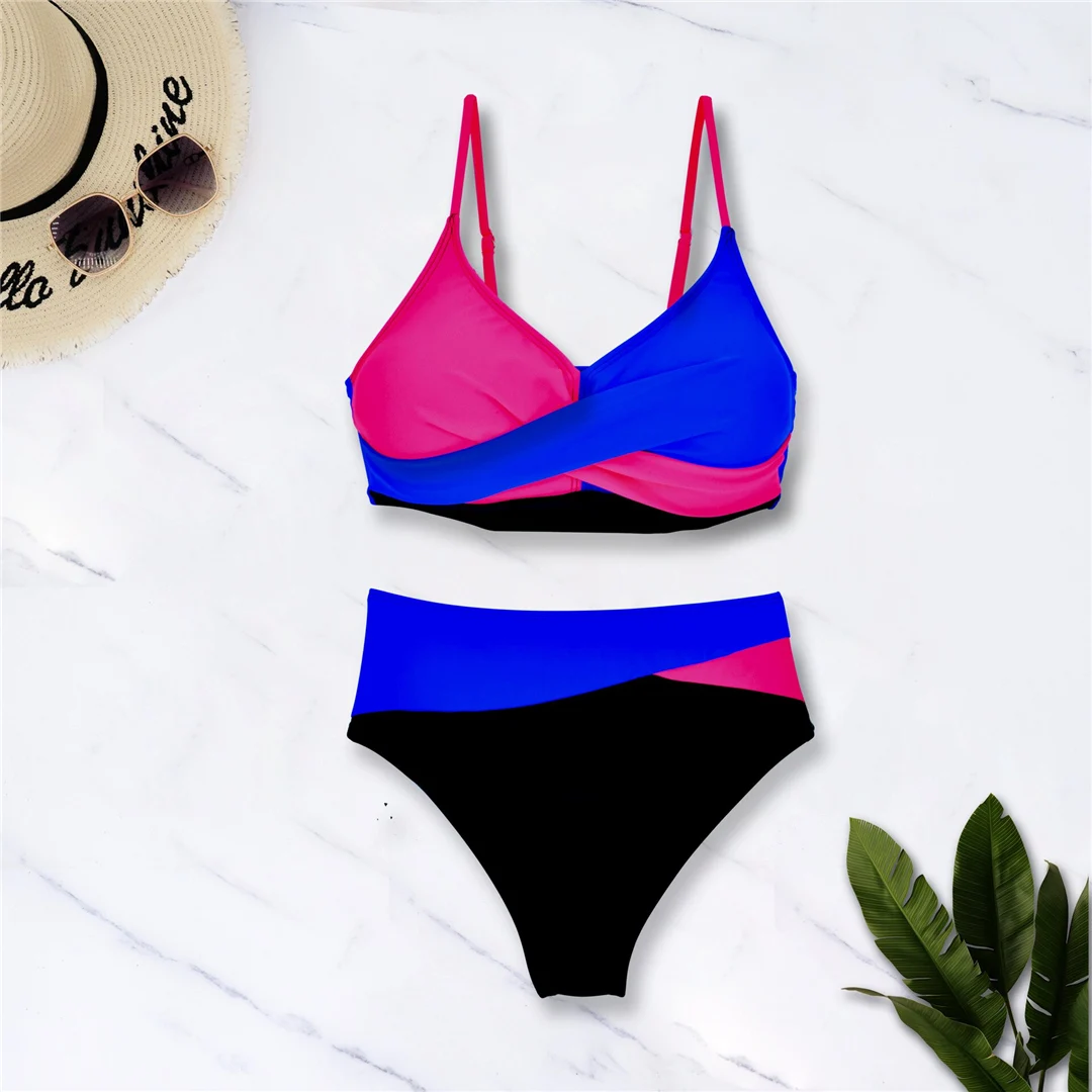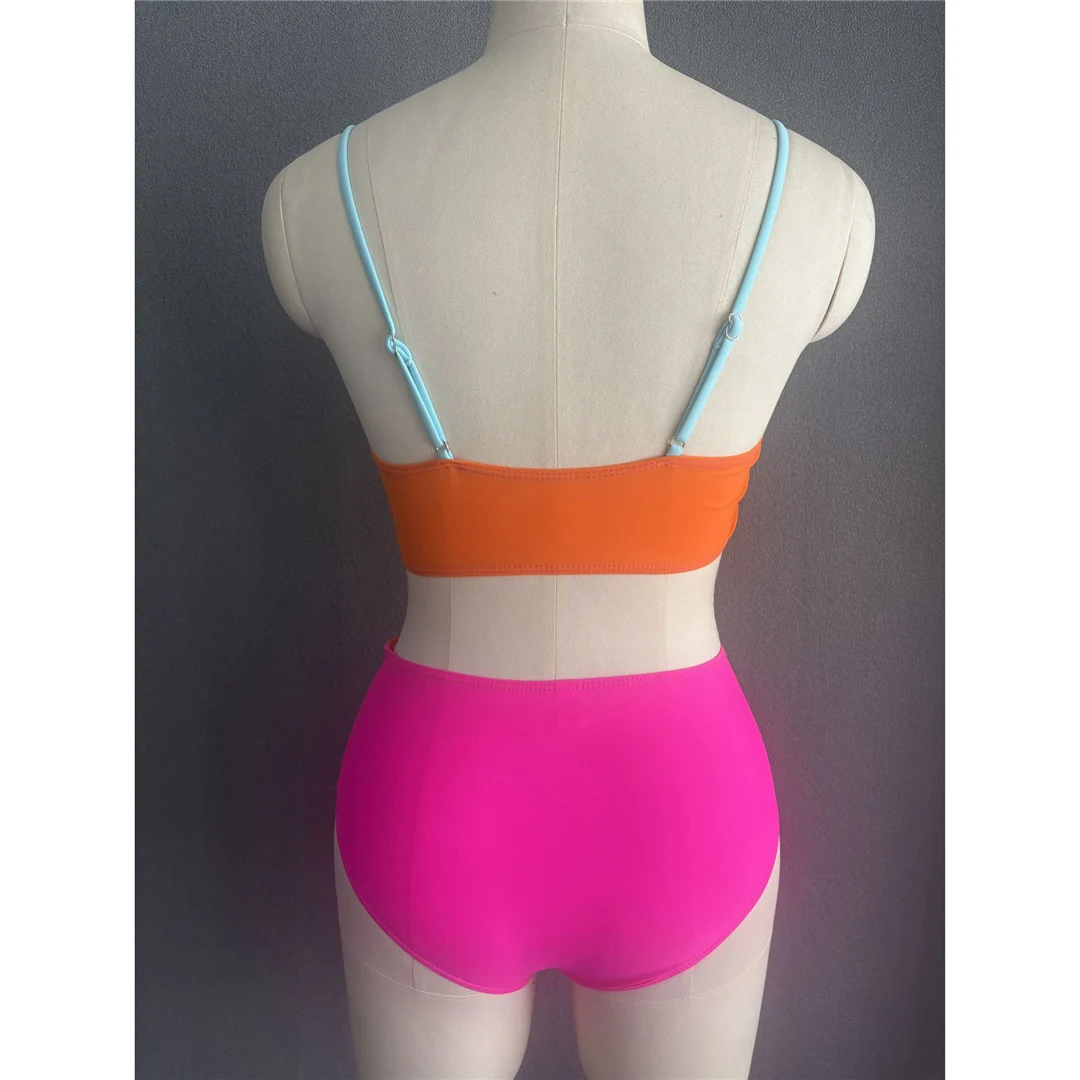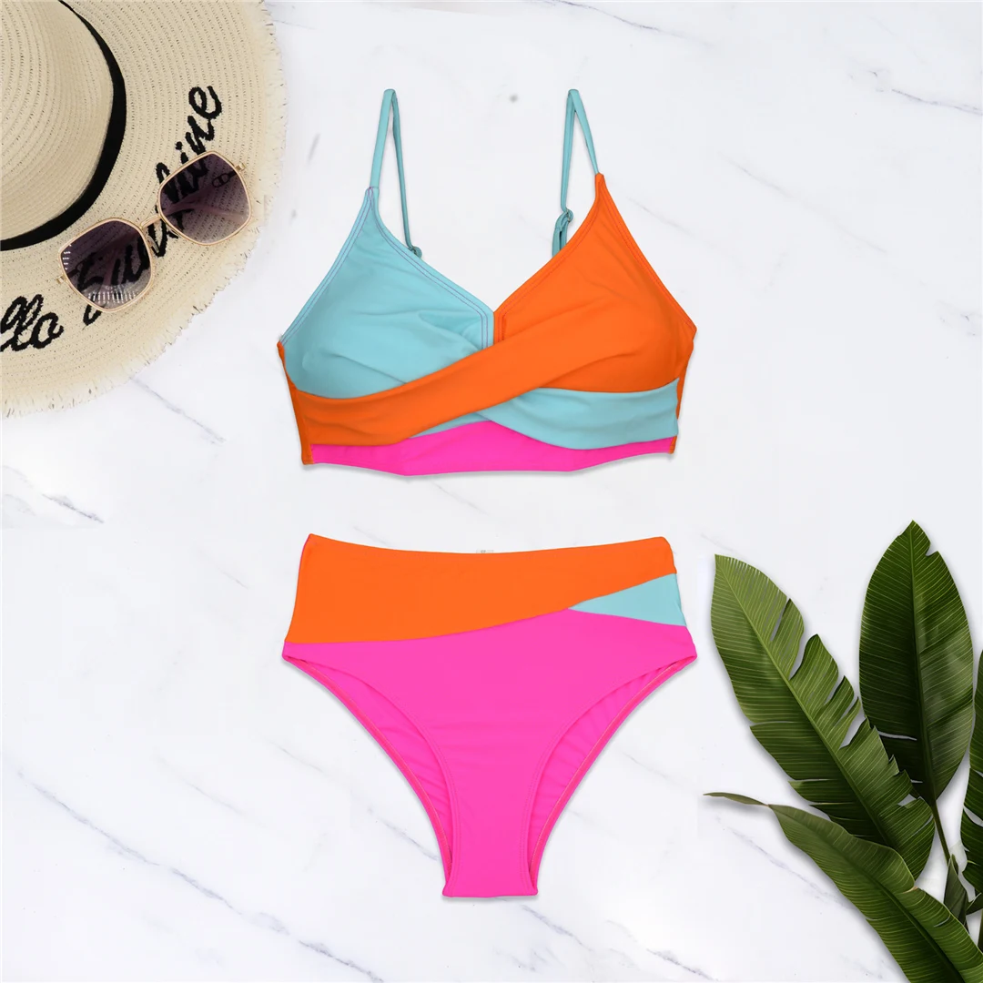S – XL 5 Colors Splicing Female Swimsuit High Waist Bikini Women Swimwear Two-pieces Bikini set Bather Bathing Suit Swim V6201
