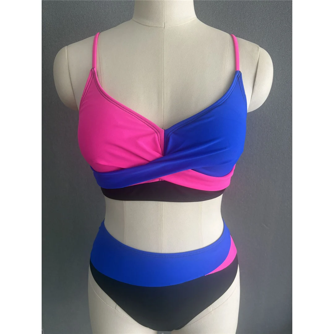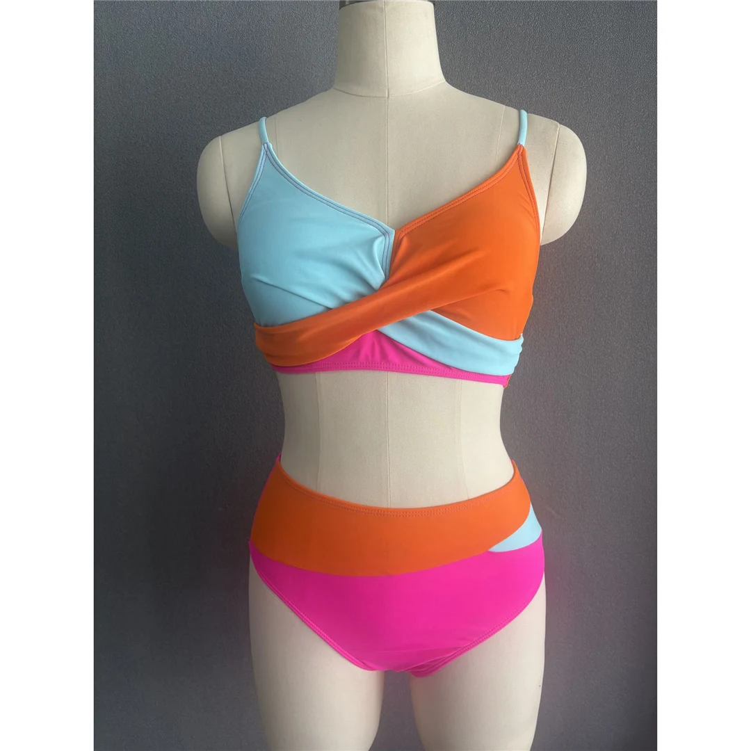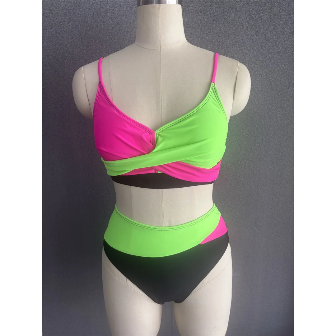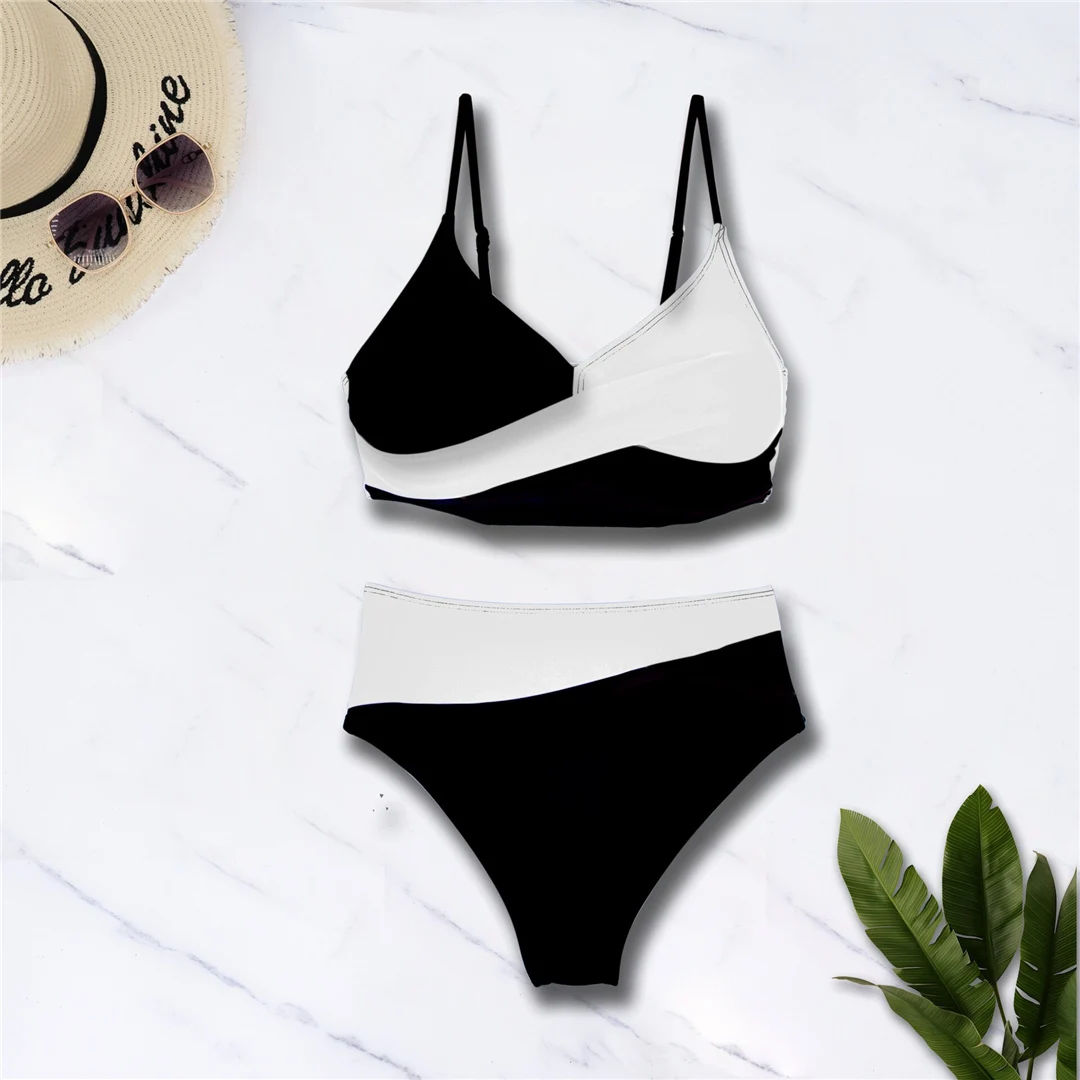 S – XL 5 Colors Splicing Female Swimsuit High Waist Bikini Women Swimwear Two-pieces Bikini set Bather Bathing Suit Swim V6201
