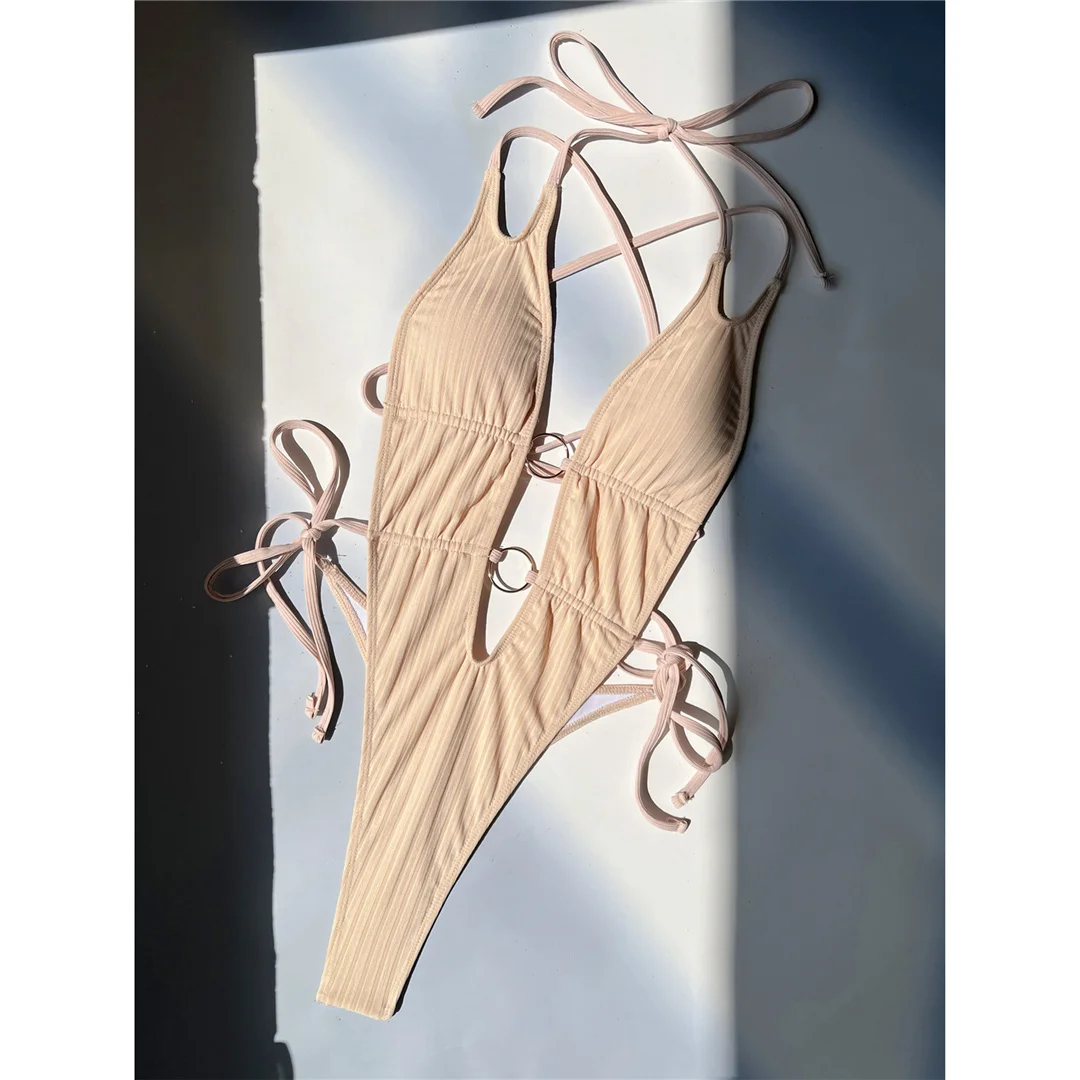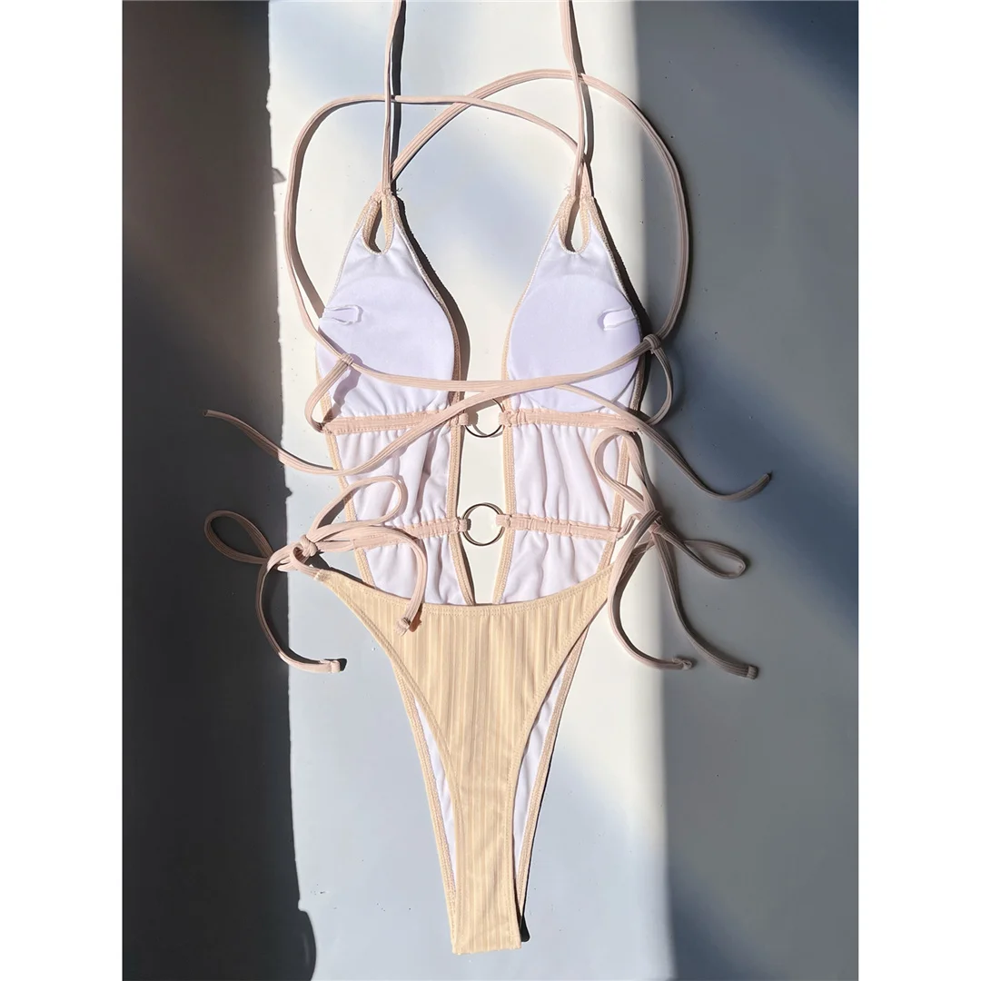 S – XL Deep V Neck Halter High Leg Cut One Piece Swimsuit Women Swimwear Female Mini Micro Thong Bather Bathing Suit Swim V5799
