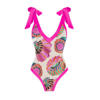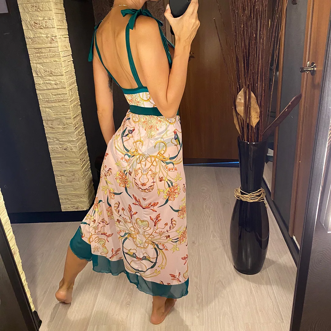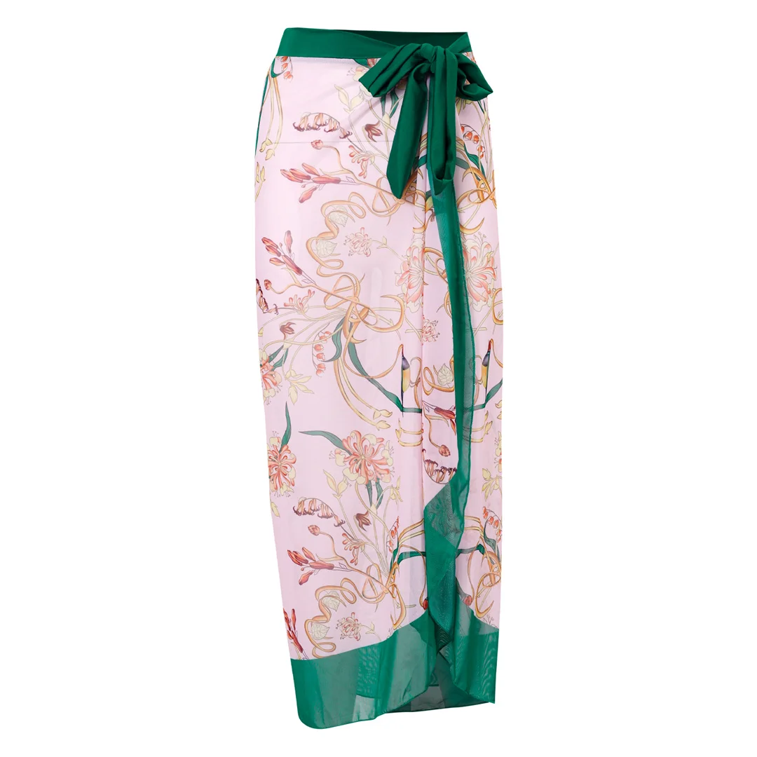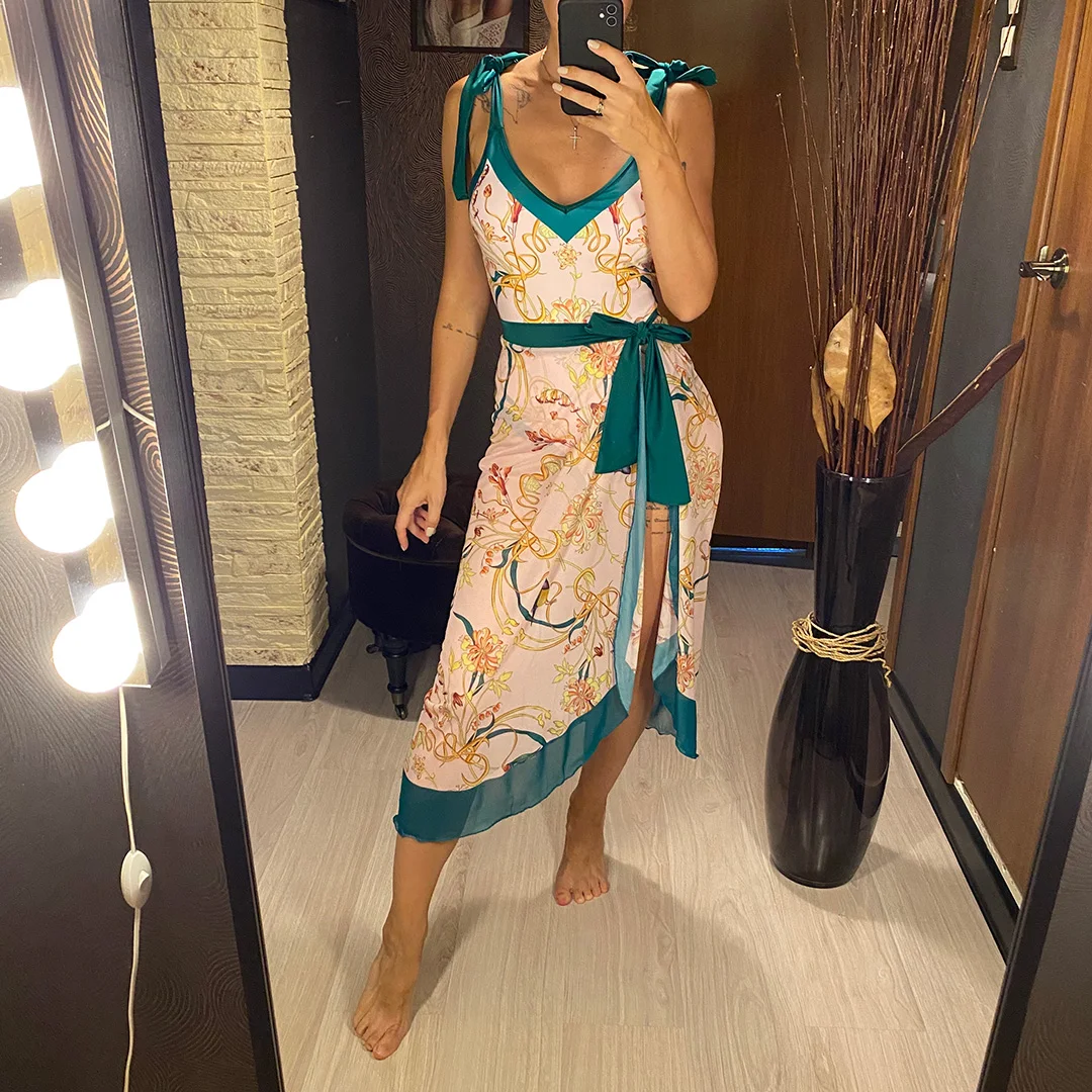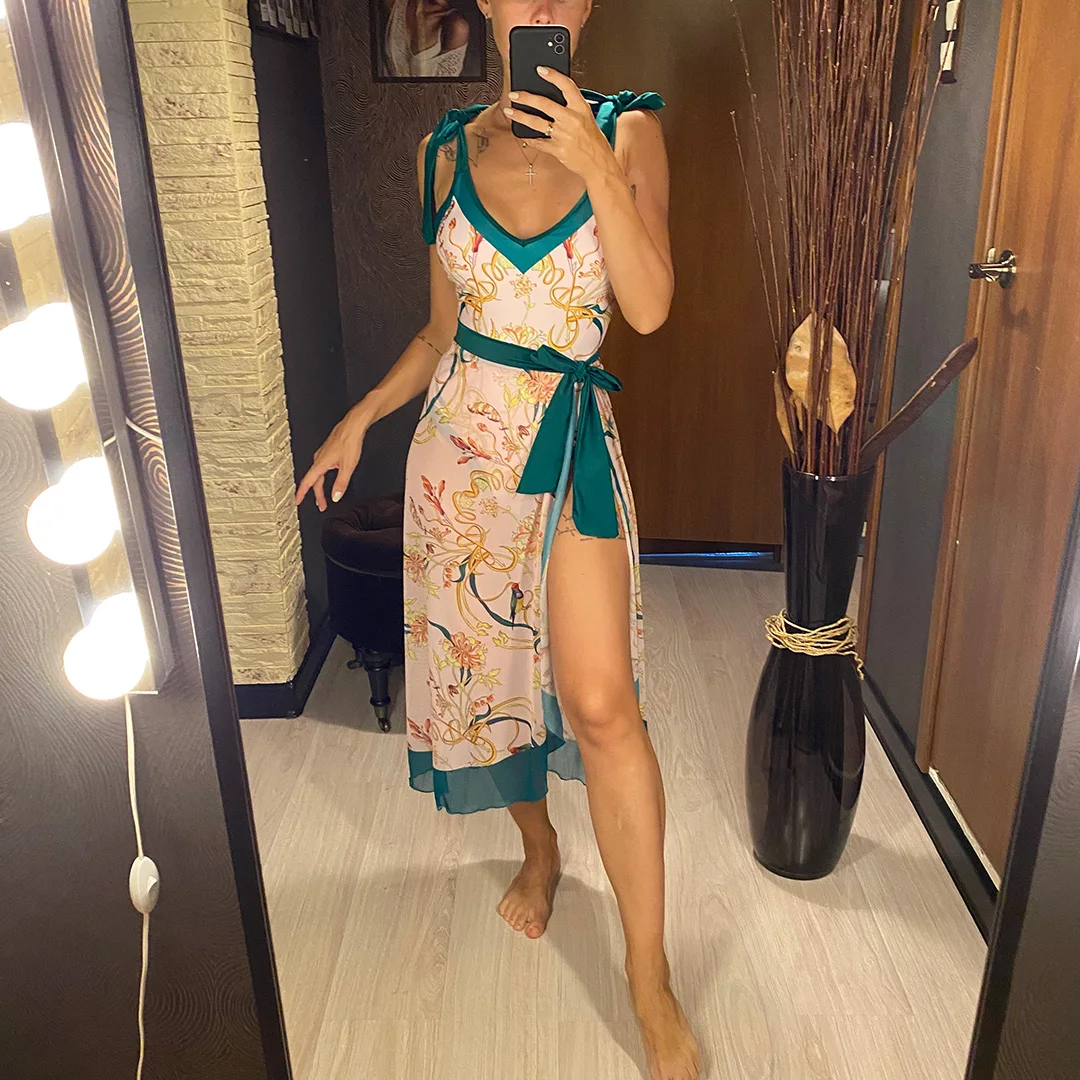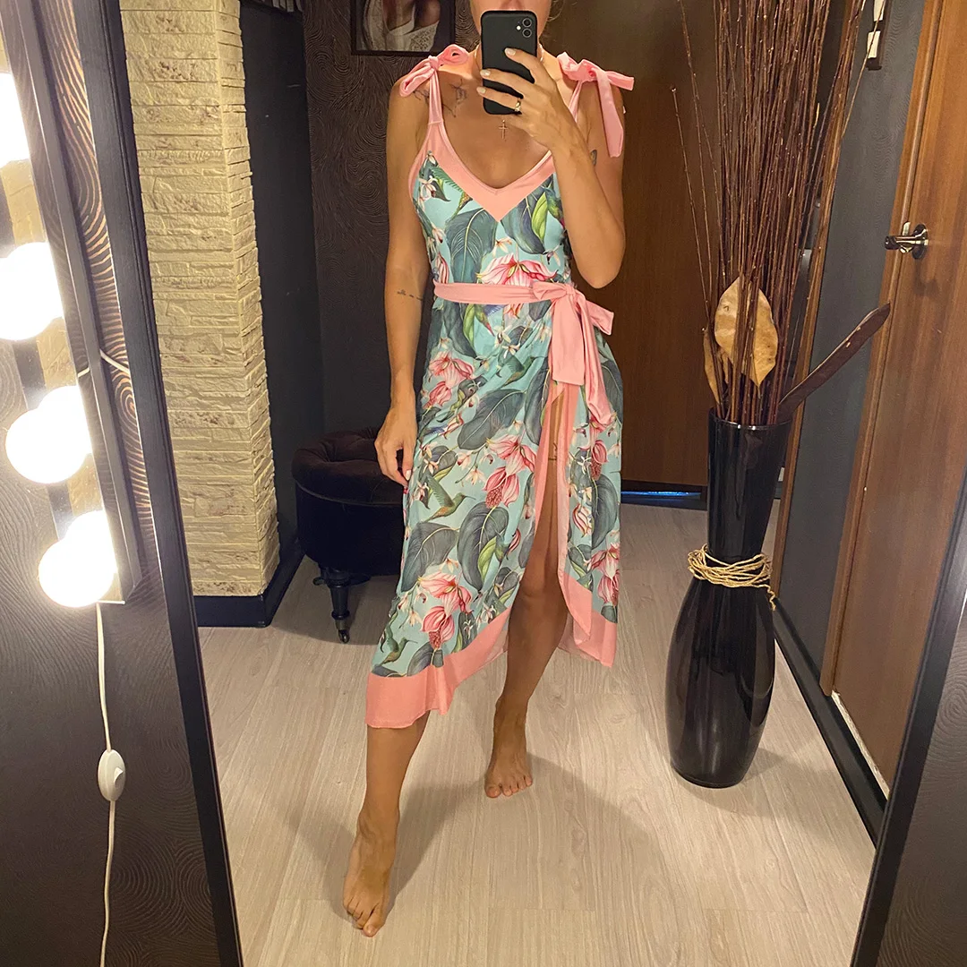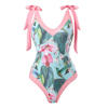 S – XL Flower Printed With Knotted Skirt One Piece Swimsuit Women Swimwear Female Floral V Neck Bather Bathing Suit Swim V3965