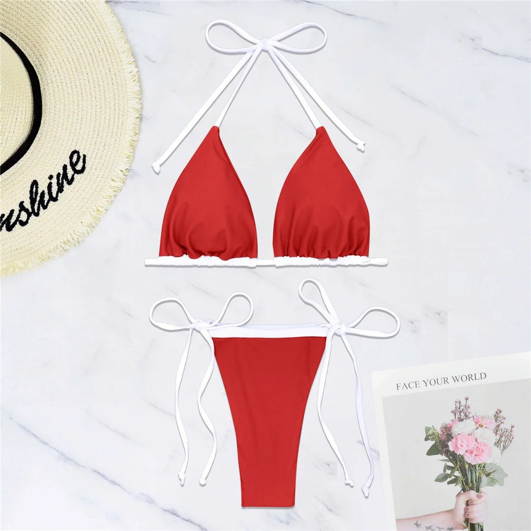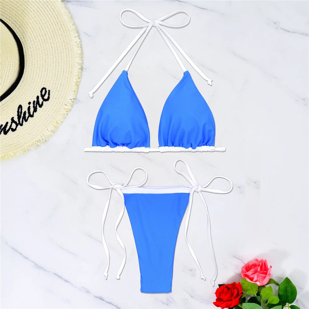 S – XL Halter High Leg Cut Strappy Bikini Women Swimwear Female Swimsuit Two-pieces Bikini set Bather Bathing Suit Swim V6182