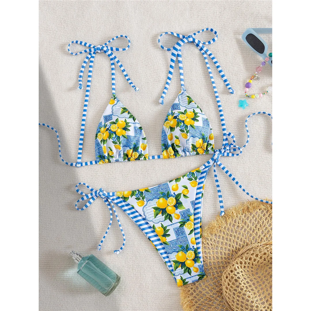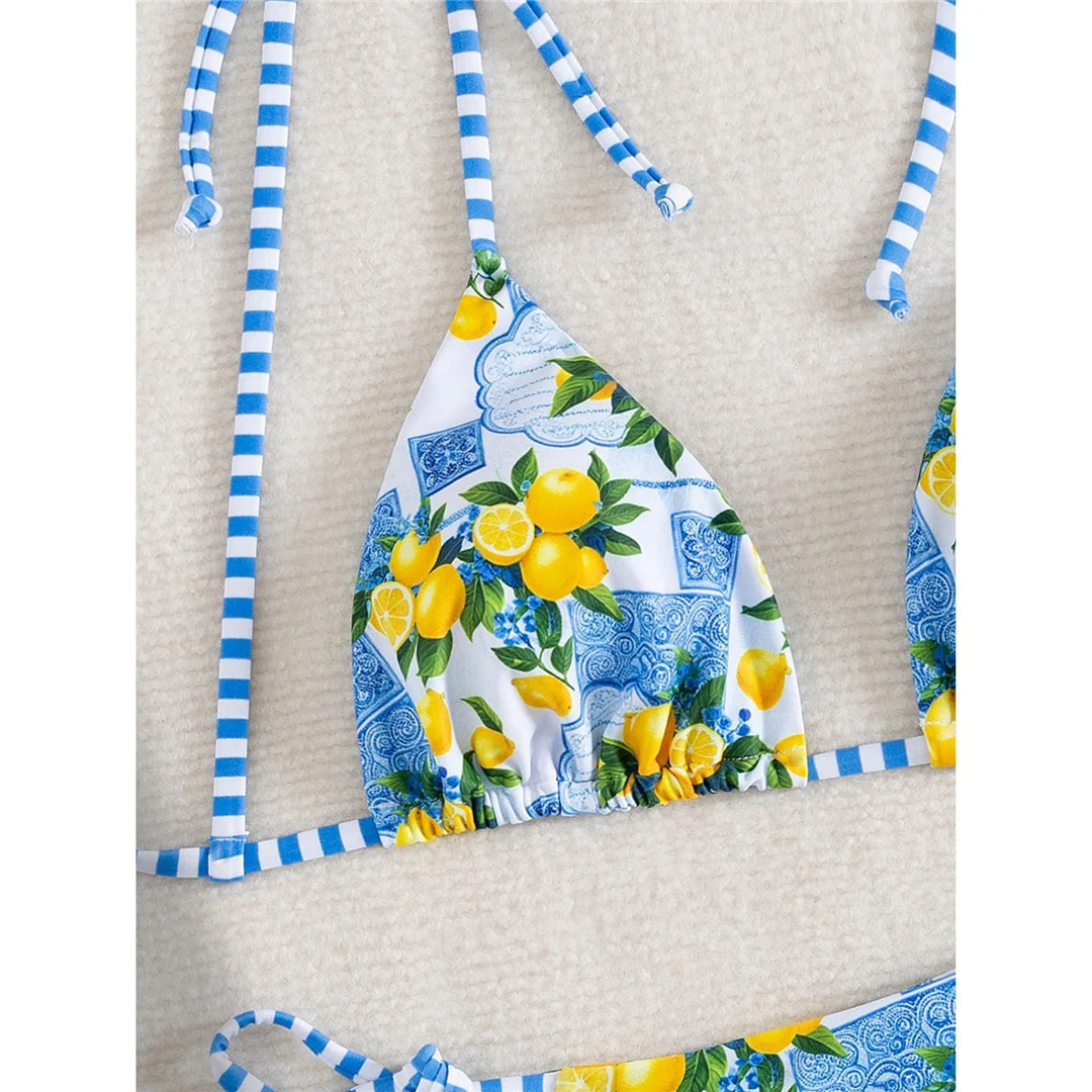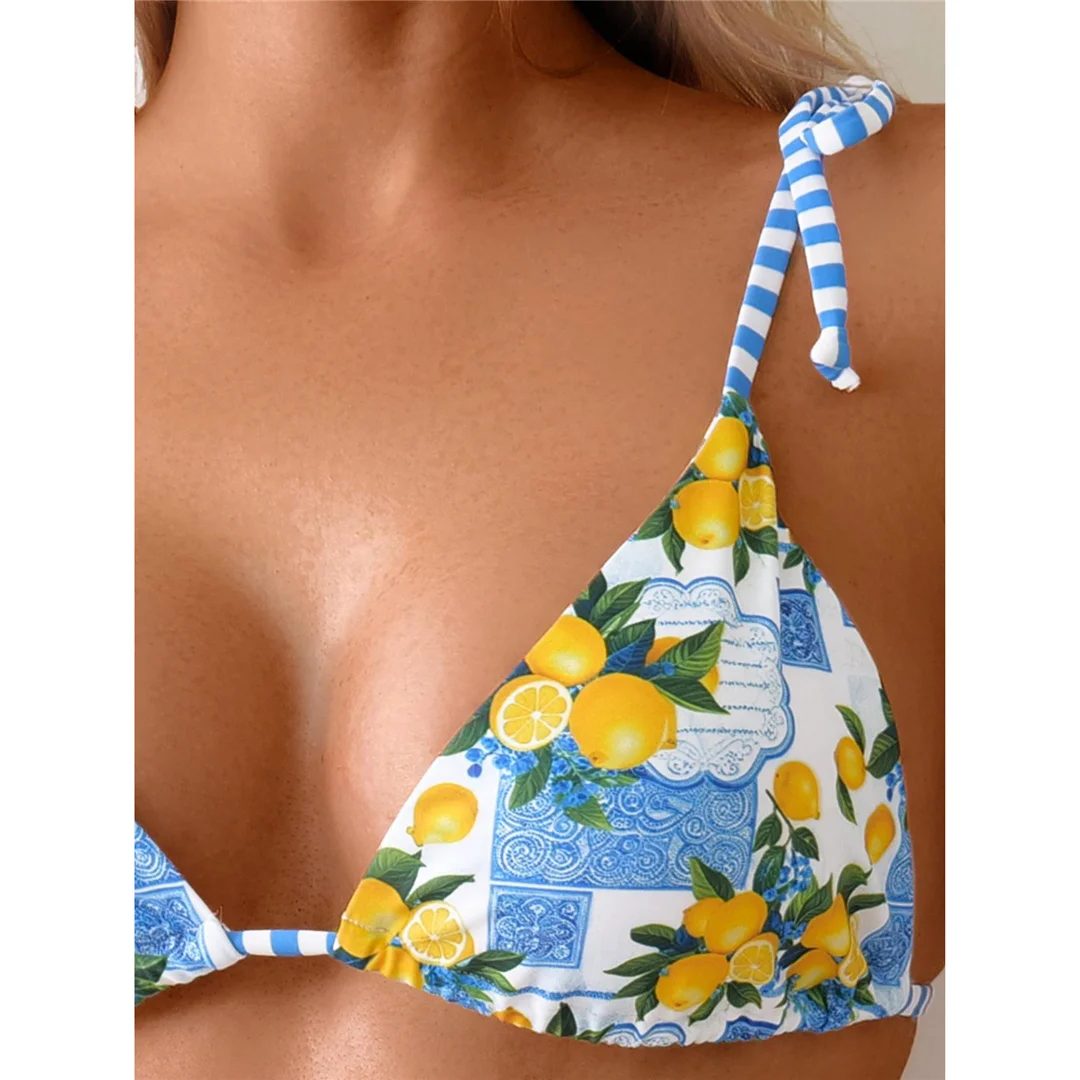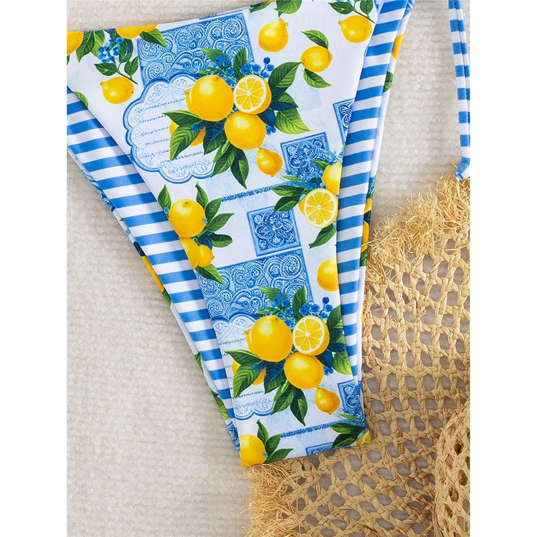 S – XL Lemon Printed Striped Bikini Female Swimsuit Women Swimwear Two-pieces Bikini set Padded Bather Bathing Suit Swim V7112