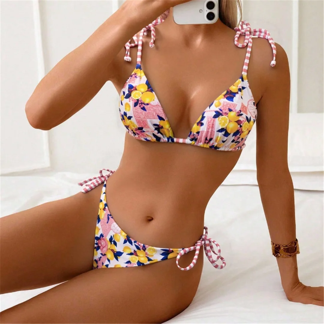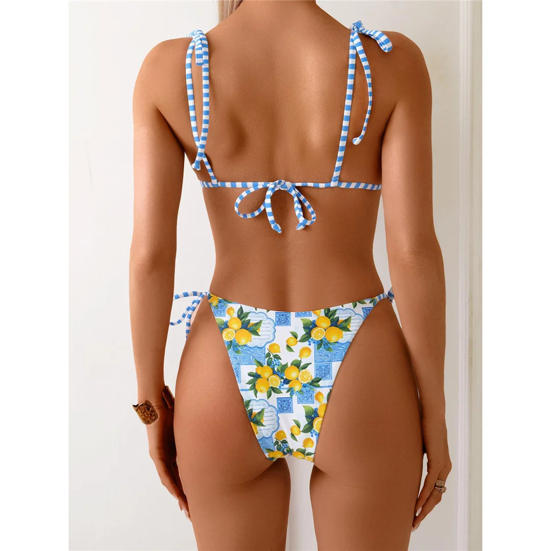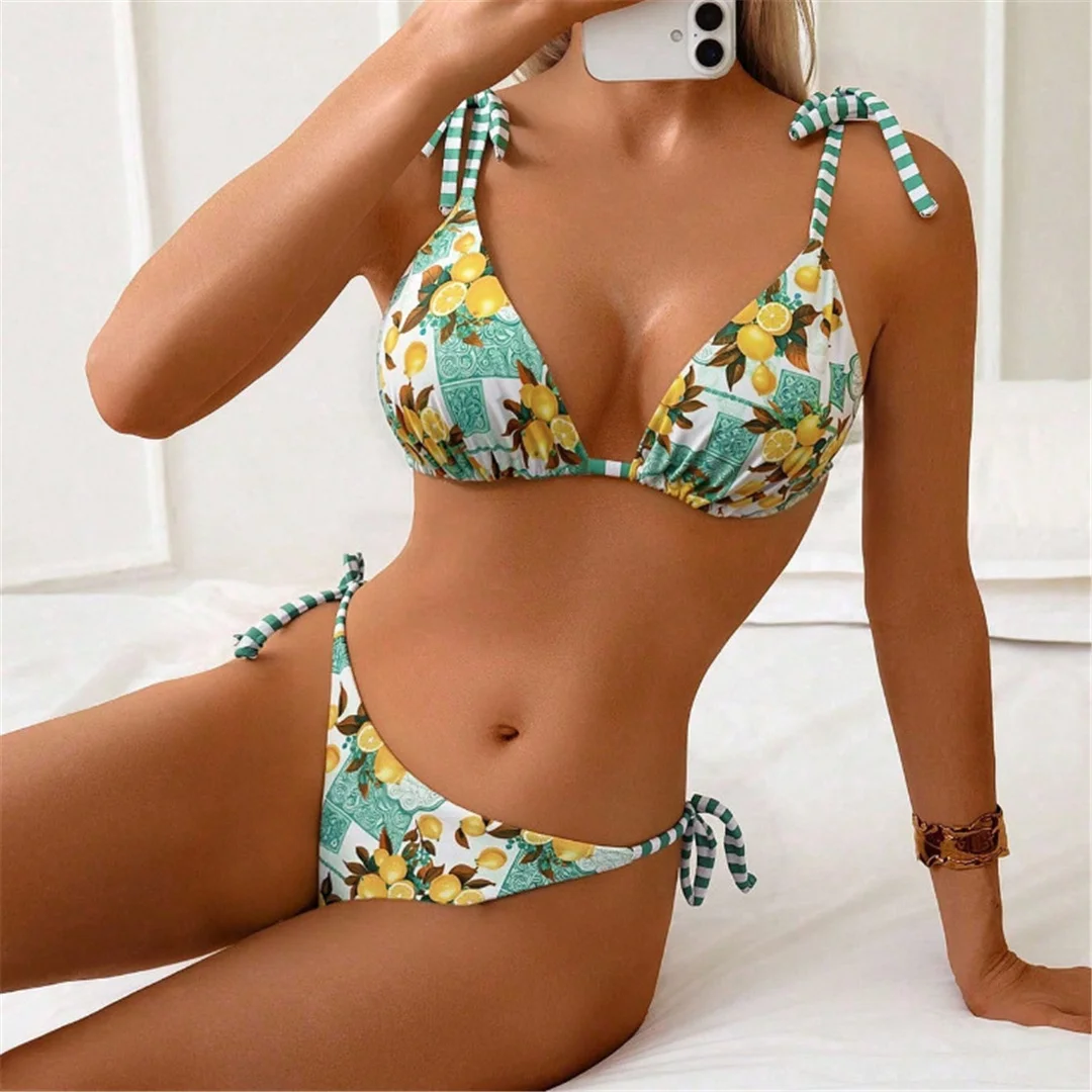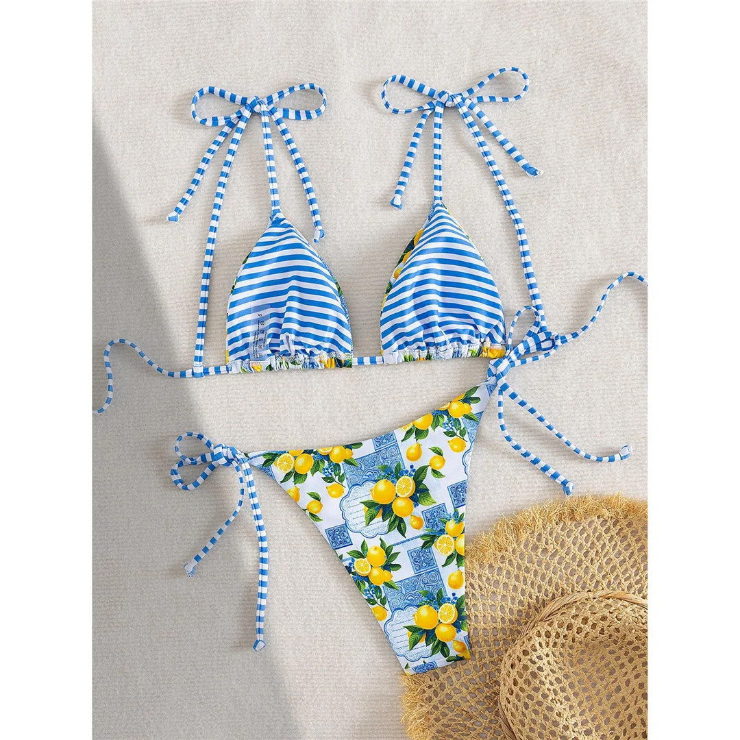 S – XL Lemon Printed Striped Bikini Female Swimsuit Women Swimwear Two-pieces Bikini set Padded Bather Bathing Suit Swim V7112