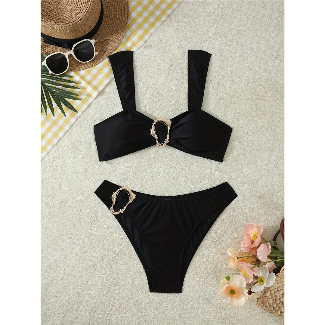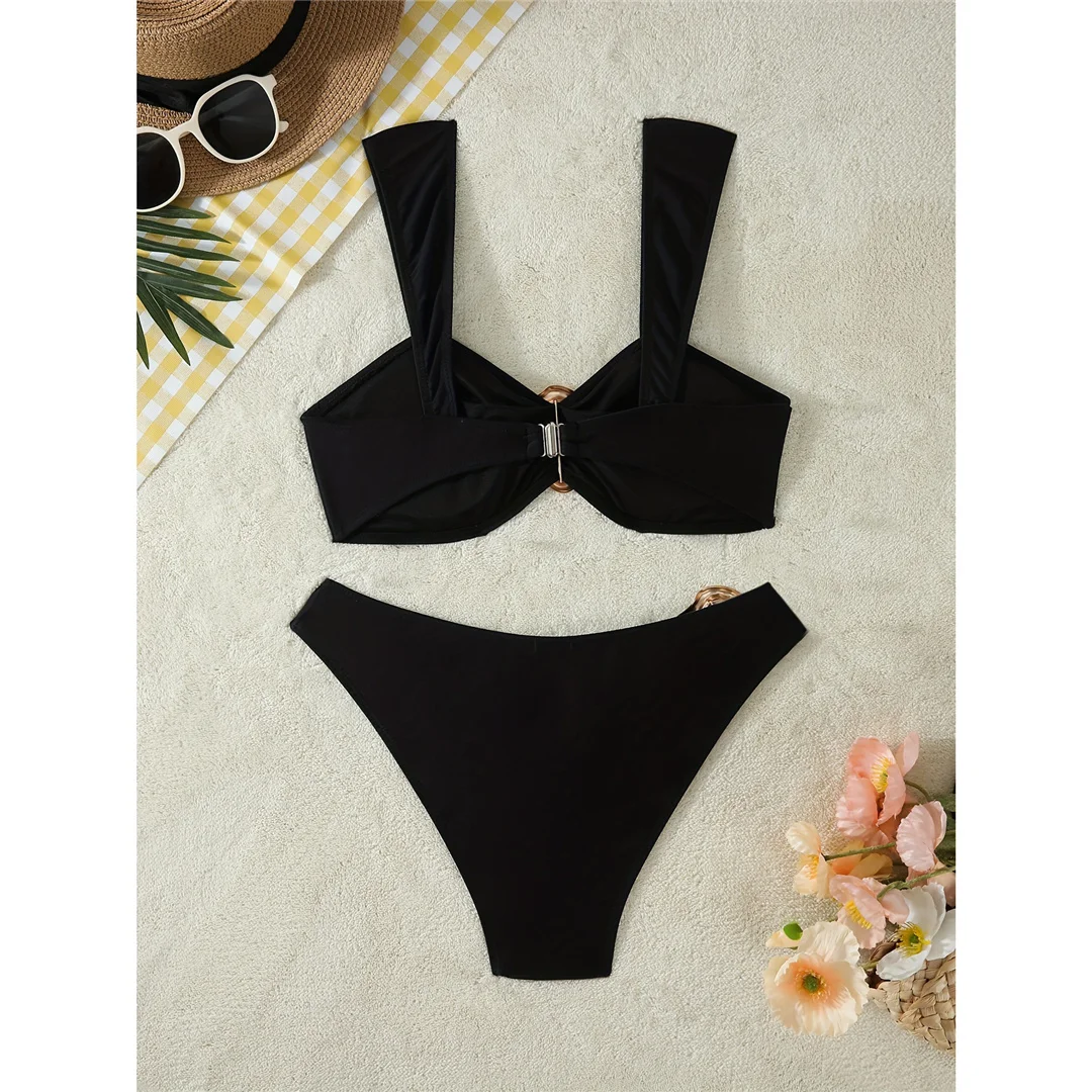S – XL Metal Ring High Cut Leg Bikini Female Swimsuit Women Swimwear Two-pieces Bikini set Padded Bather Bathing Suit Swim V7133