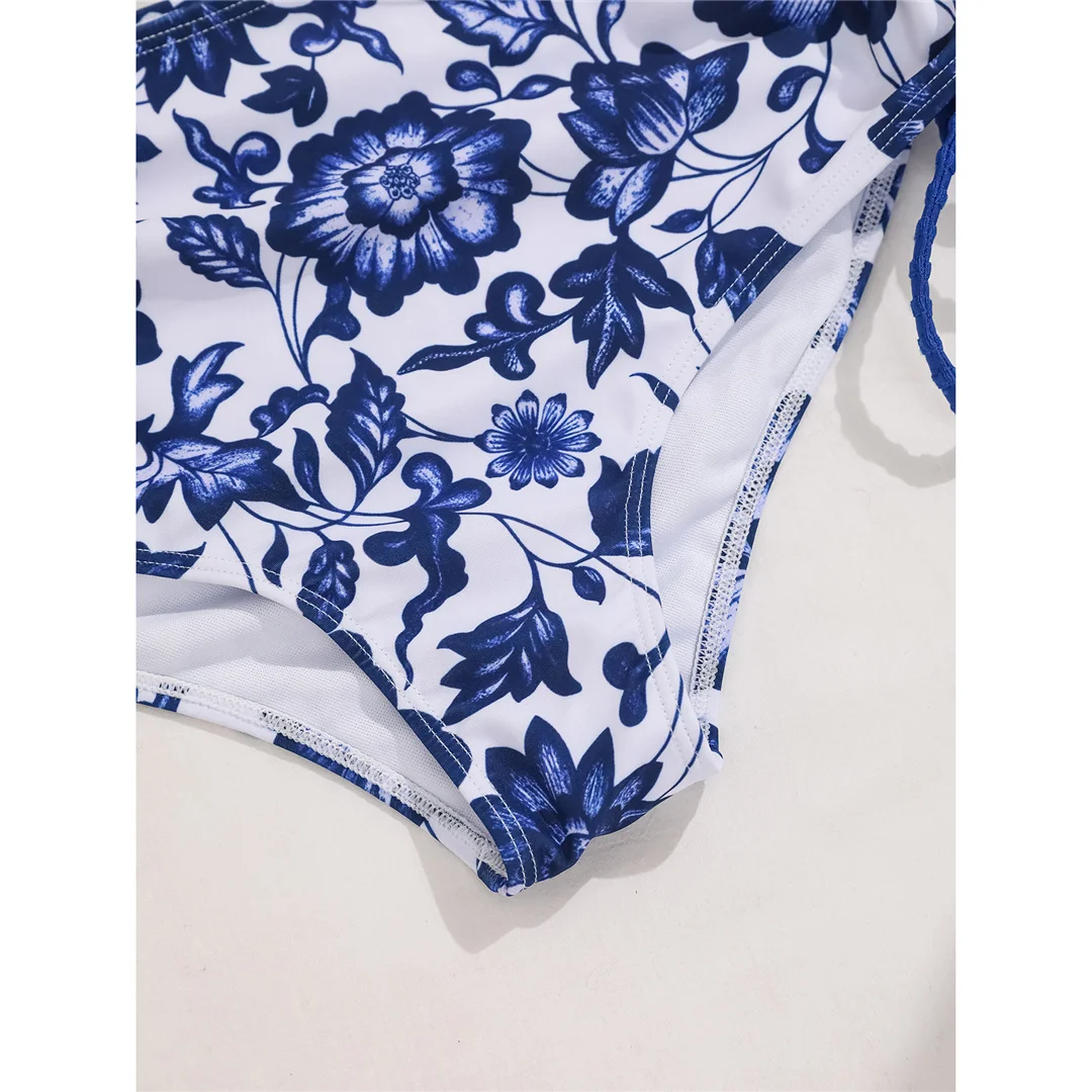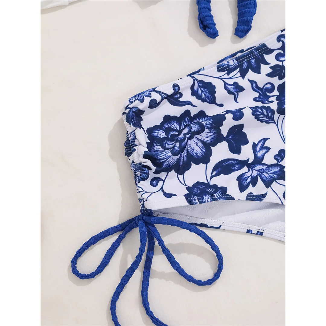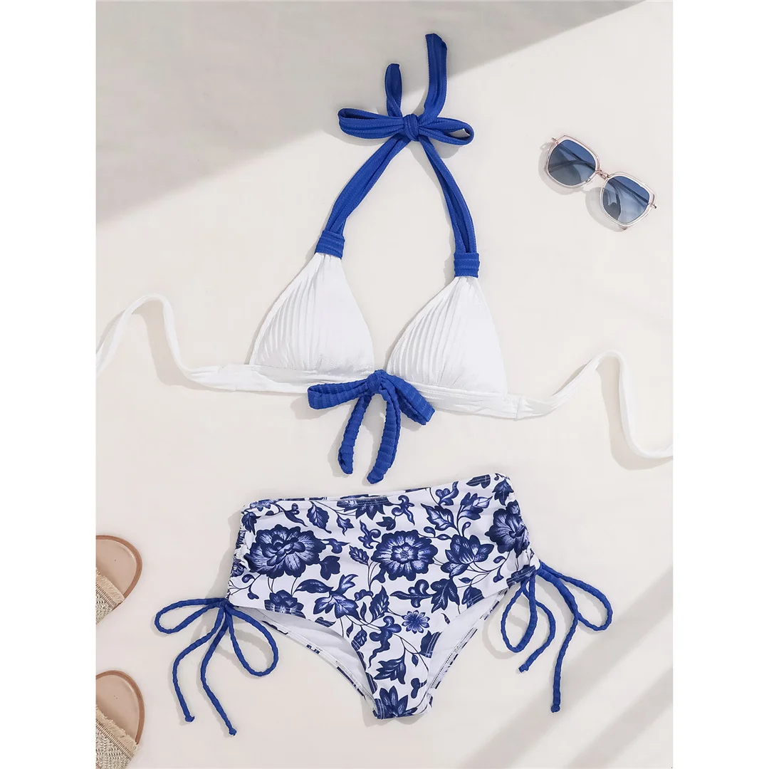 S – XL New Floral Halter Female Swimsuit High Waist Bikini Women Swimwear Two-pieces Bikini set Bather Bathing Suit Swim V6555