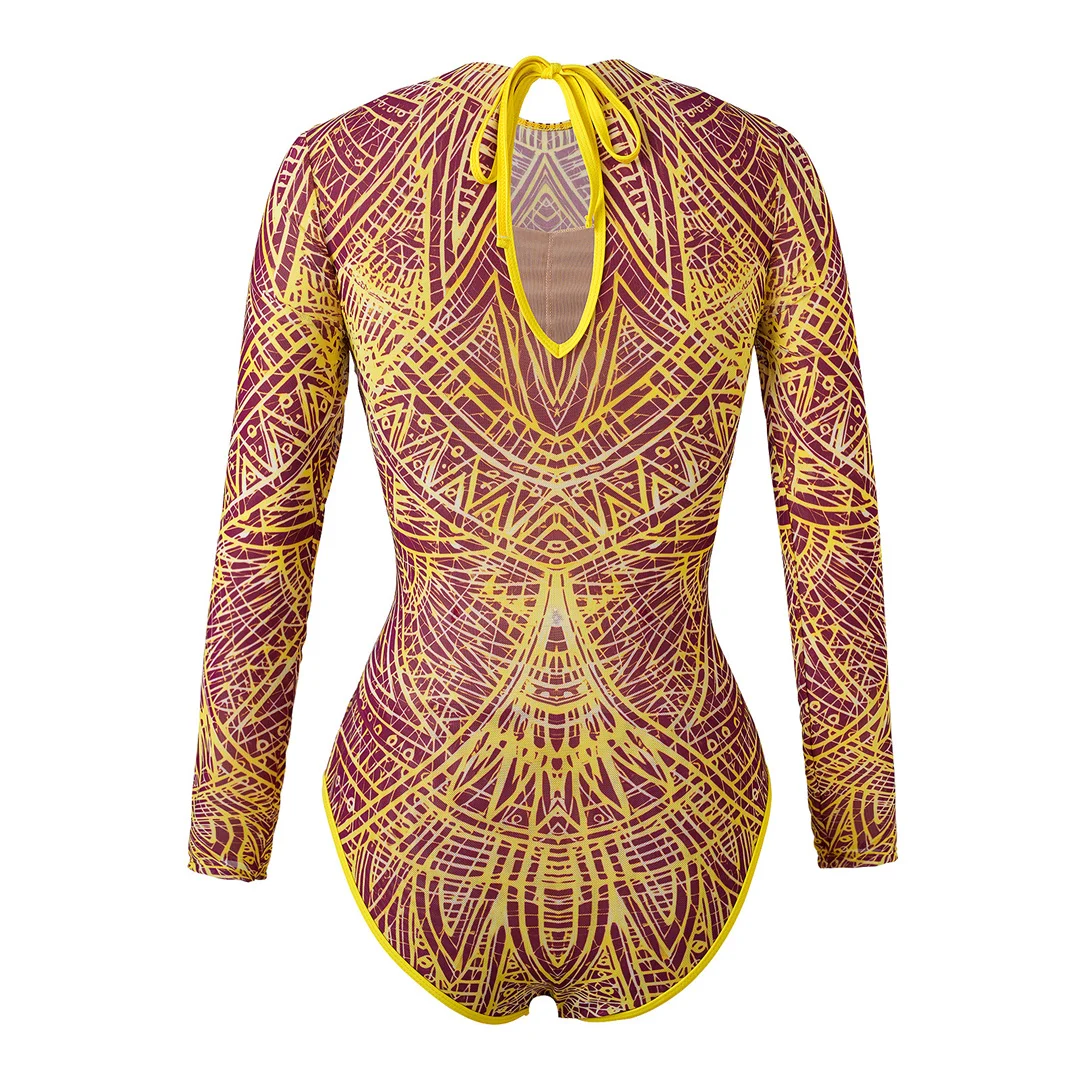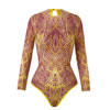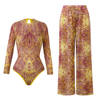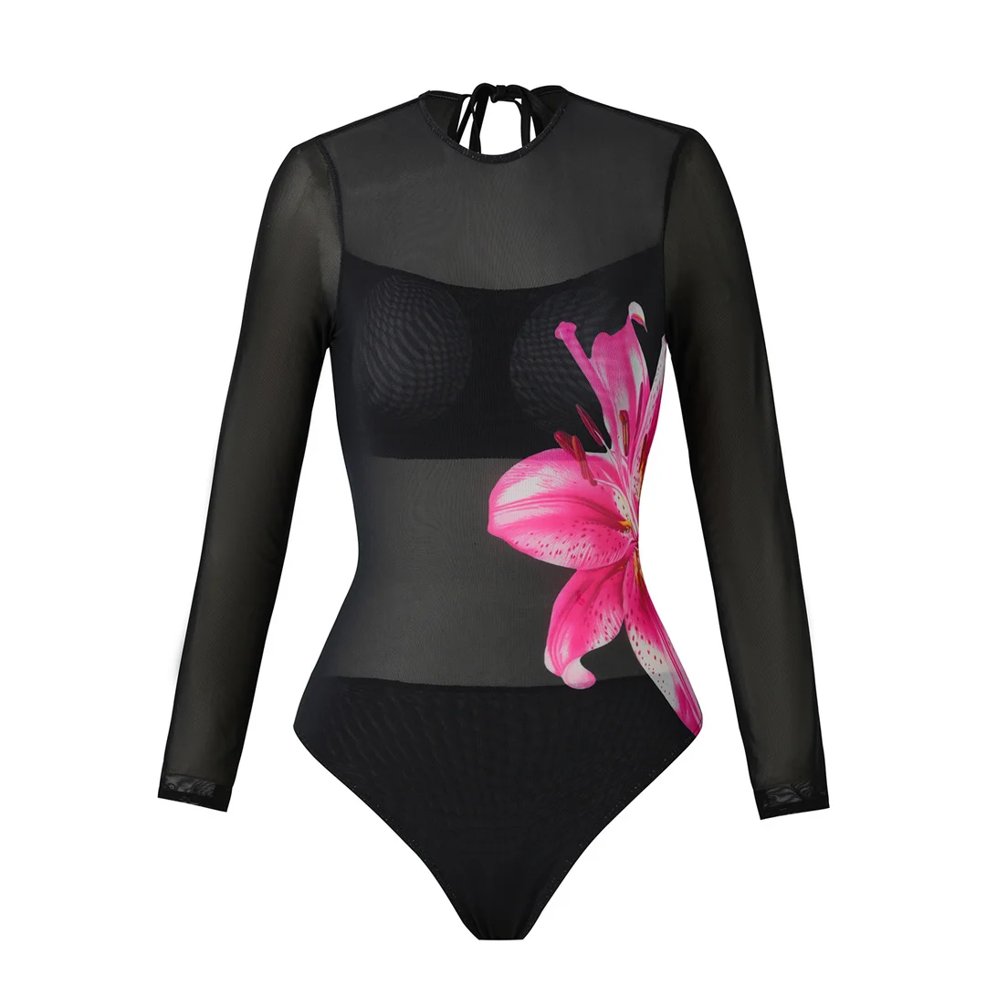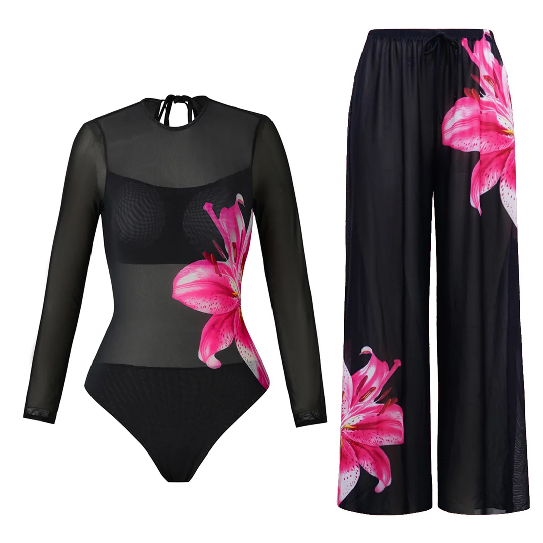 S – XL New Flower Printed Floral Long Sleeve With Pants One Piece Swimsuit Women Swimwear Female Bather Bathing Suit Swim V7099