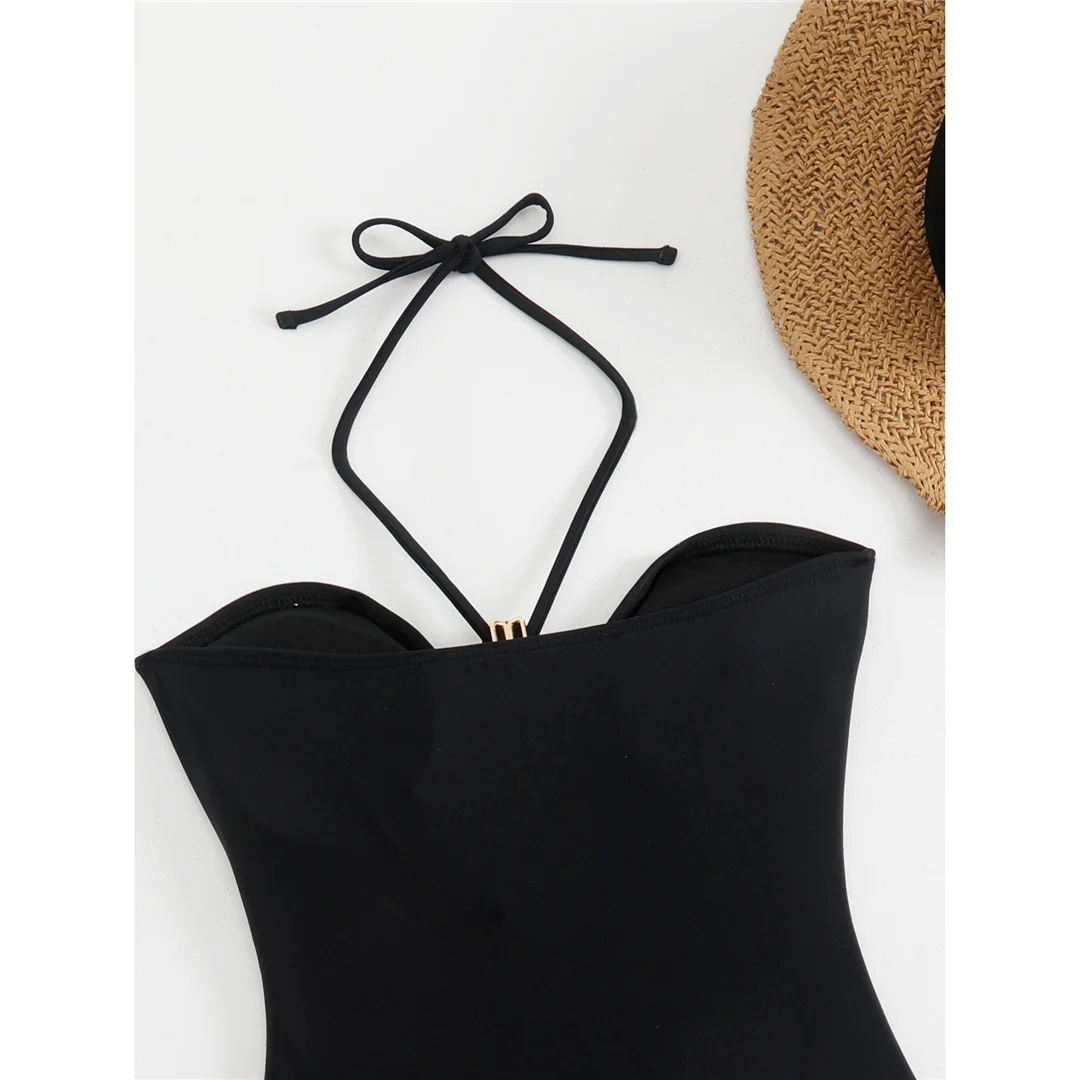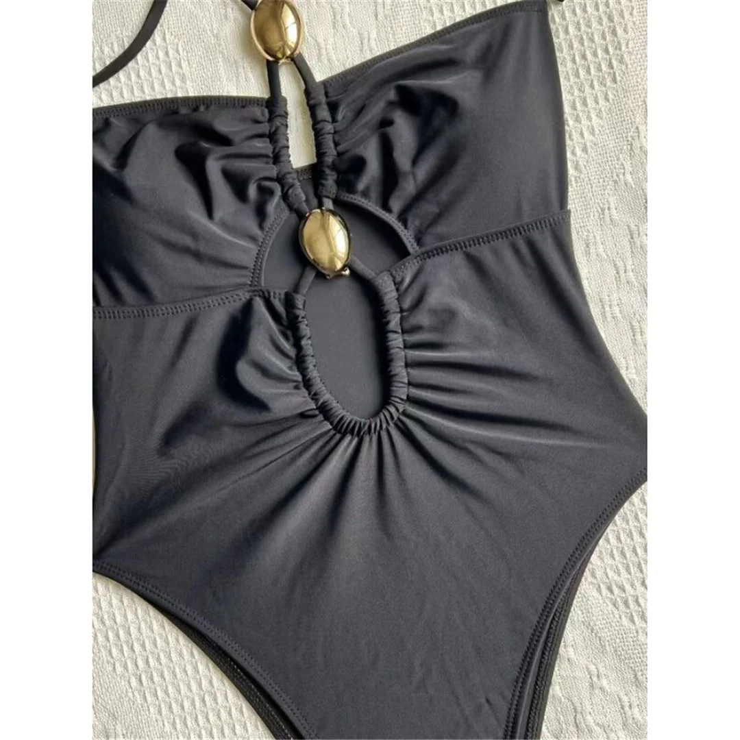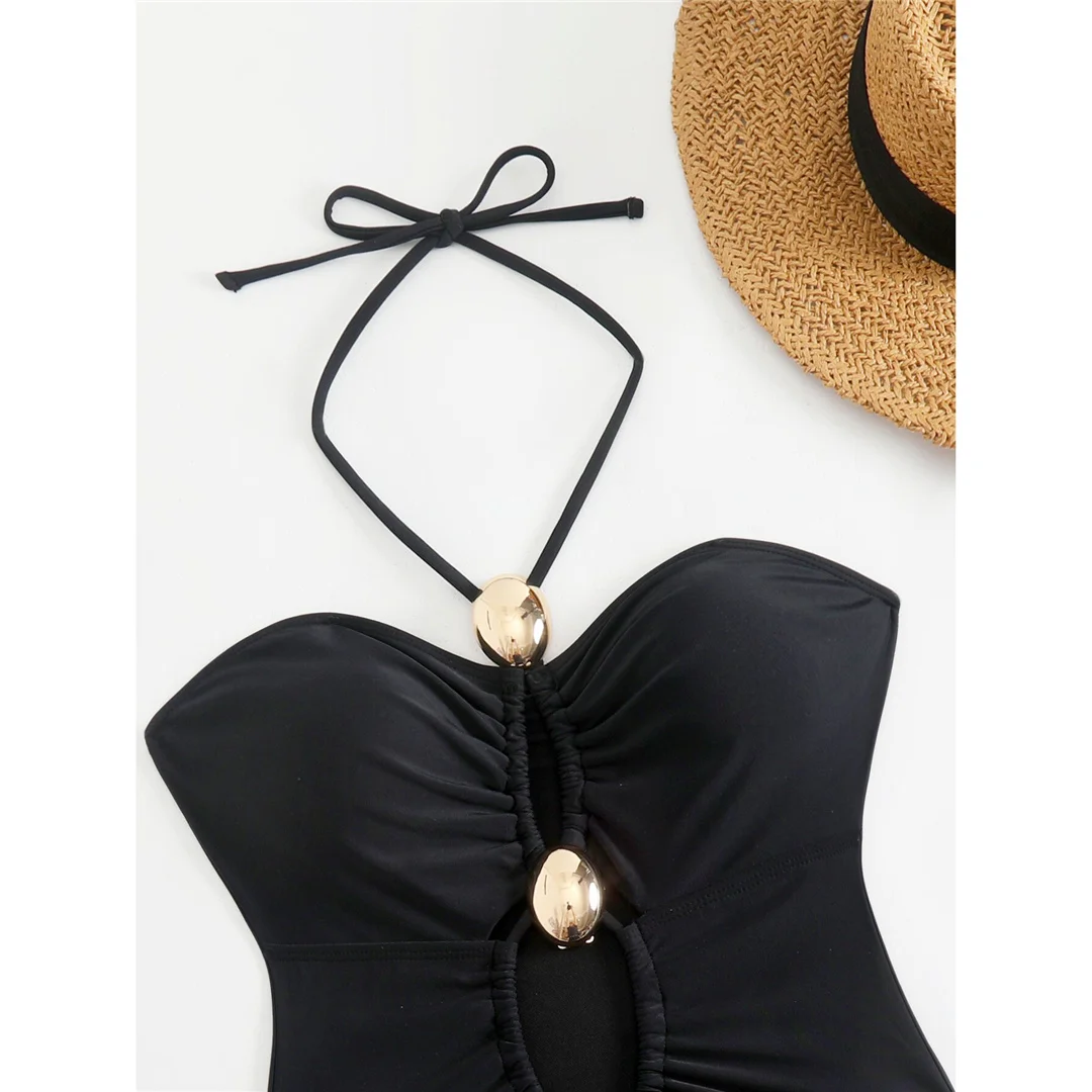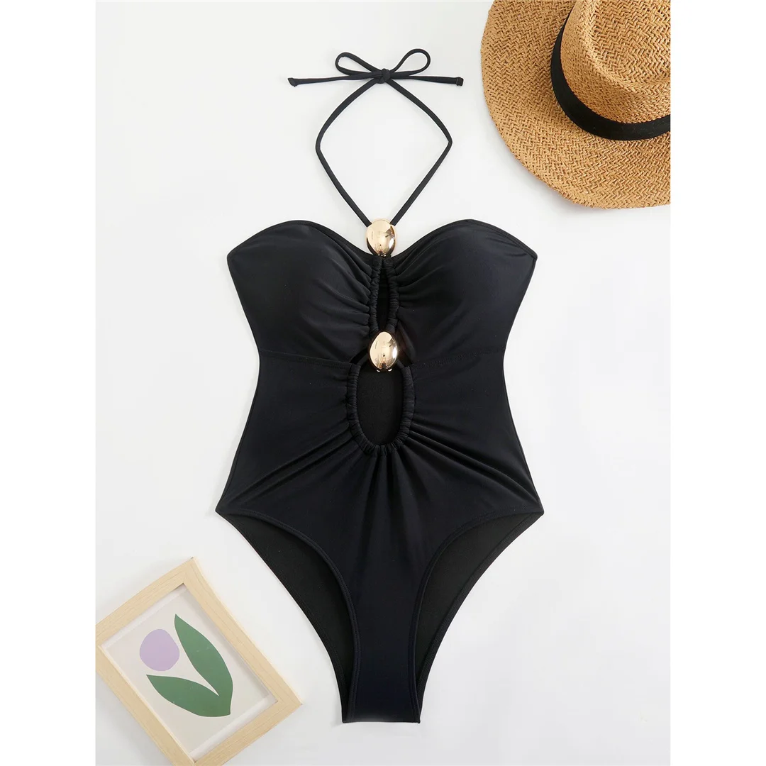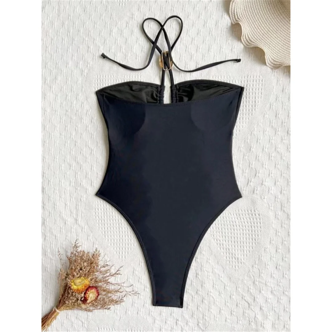 S – XL New Halter Cut Out Metal Ring Women Swimwear One Piece Swimsuit Female High Leg Cut Padded Bather Bathing Suit Swim V7390