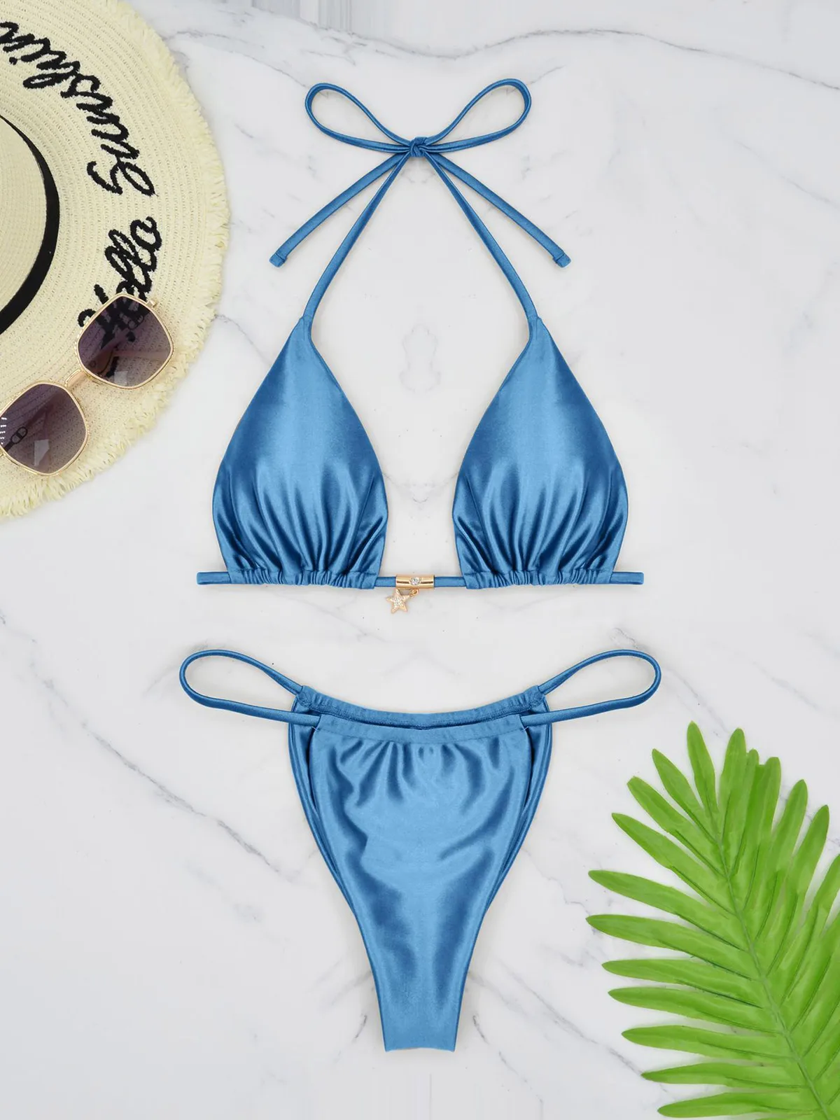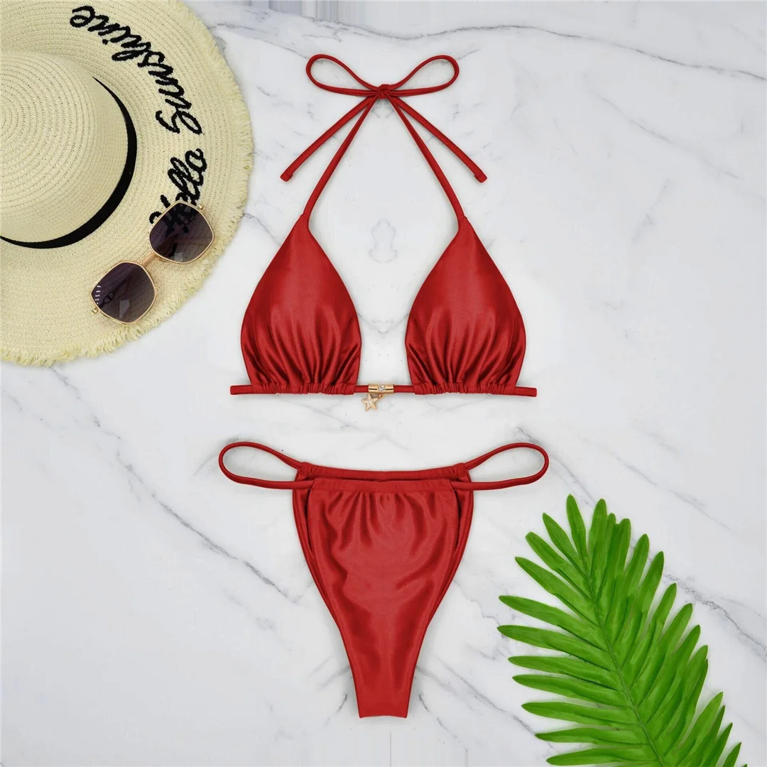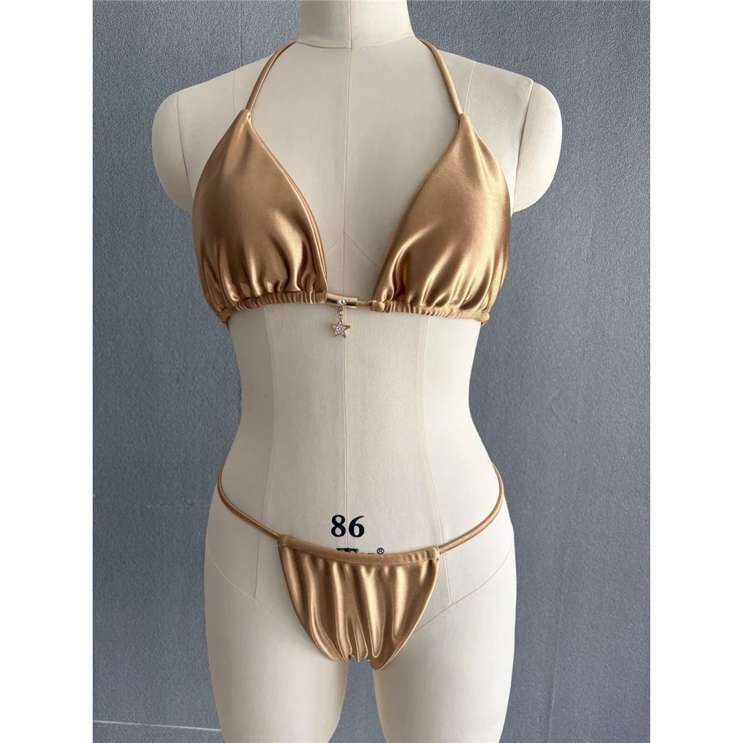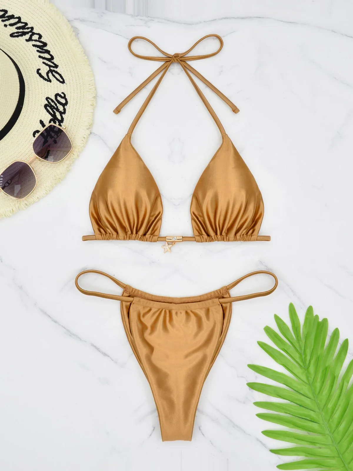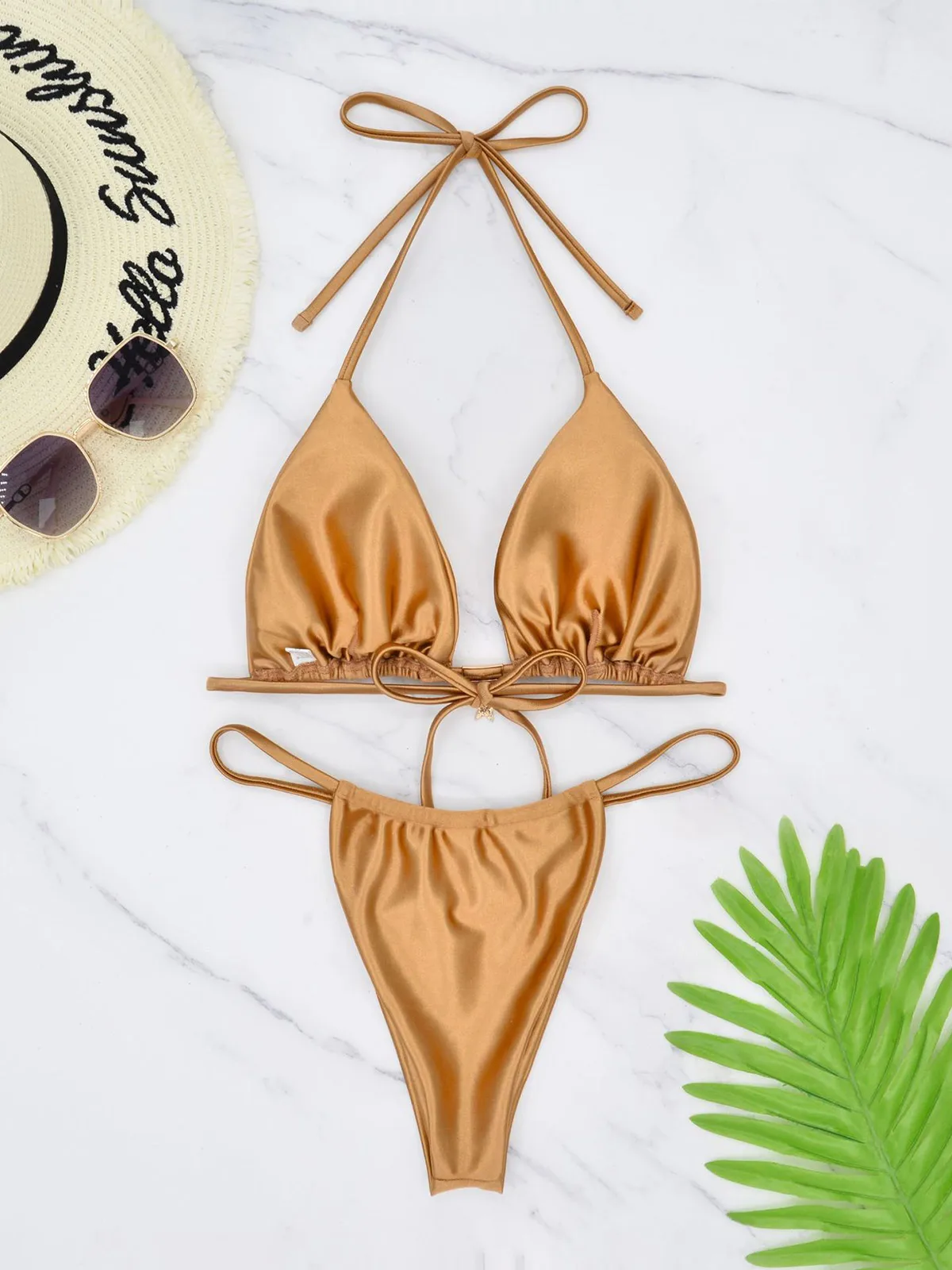 S – XL New Sexy Golden High Leg Cut Bikini Female Swimsuit Women Swimwear Two-pieces Bikini set Bather Bathing Suit Swim V6192G