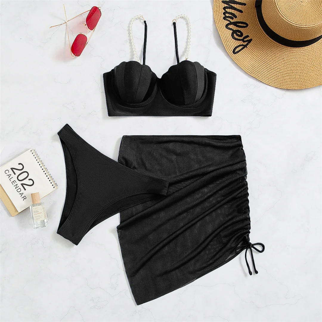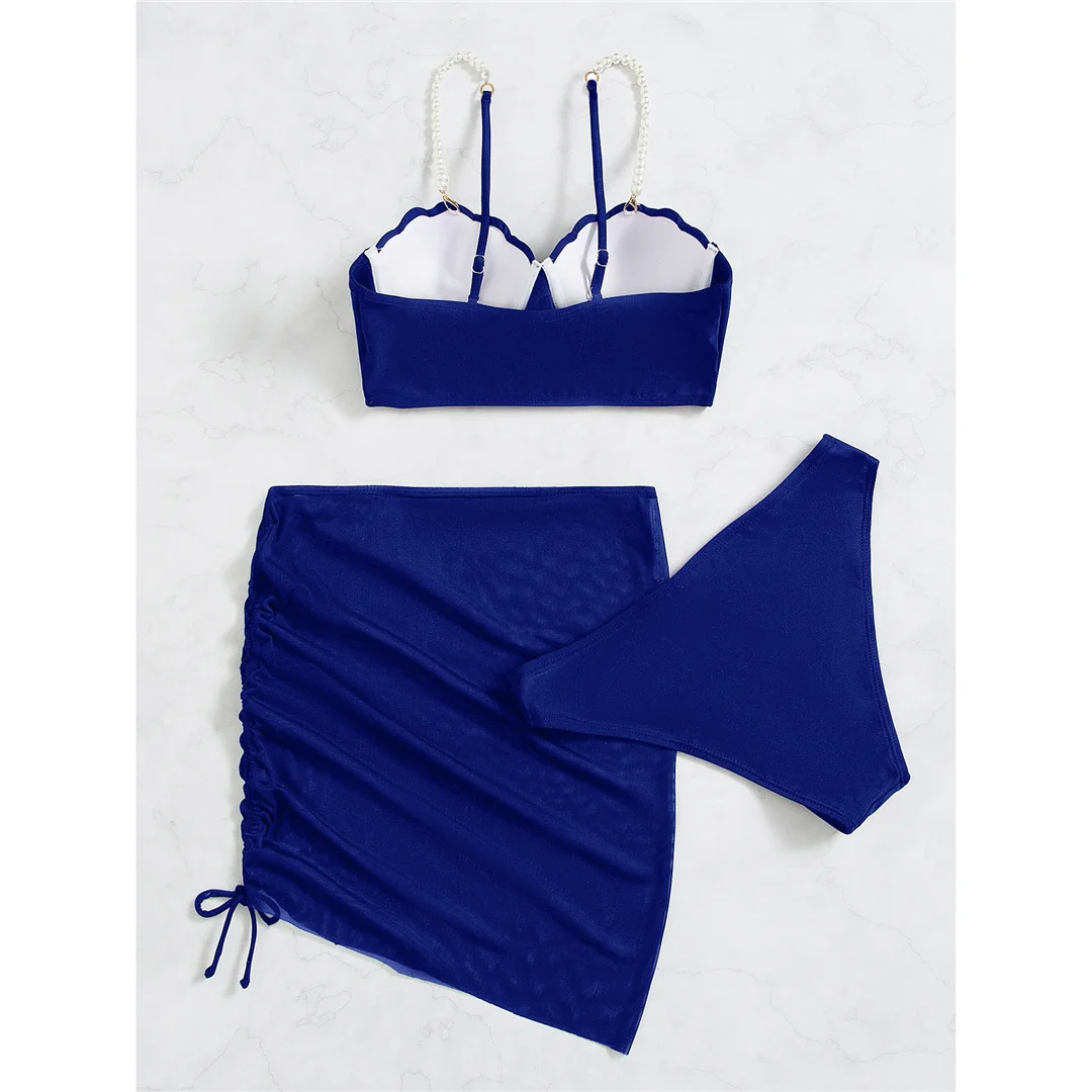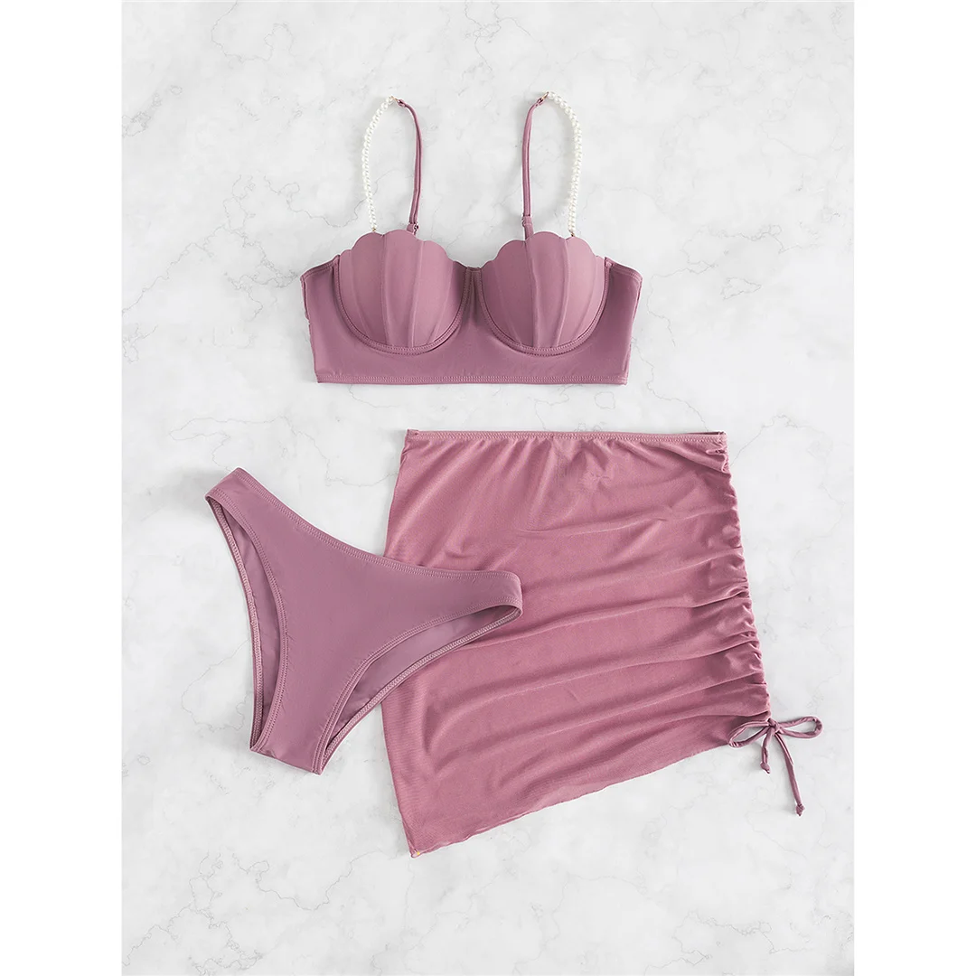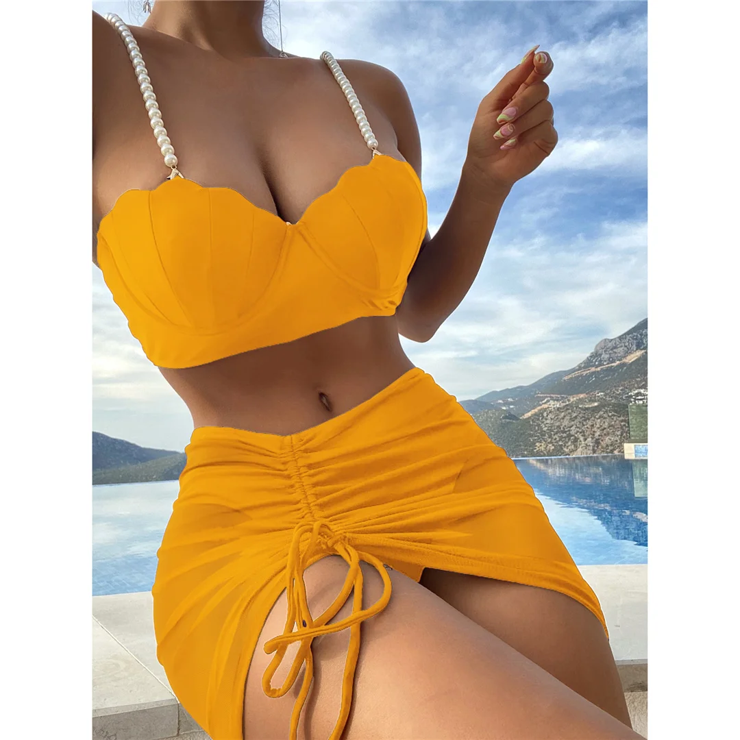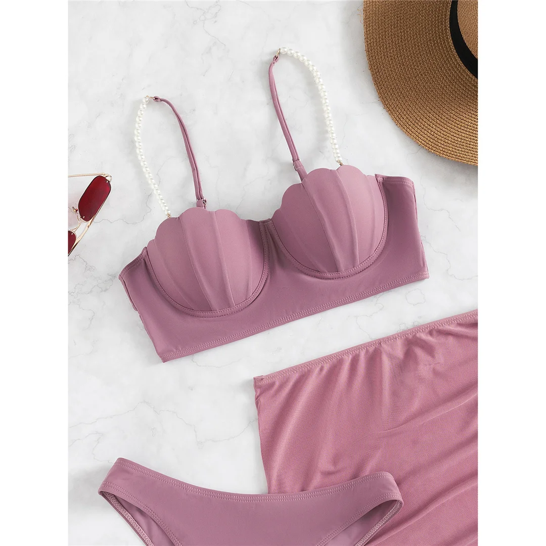 S – XL Pearls Bikini Push Up Swimsuit Female Swimwear Women Three-pieces Bikini set With Bra Cup Bather Bathing Suit Swim V4302