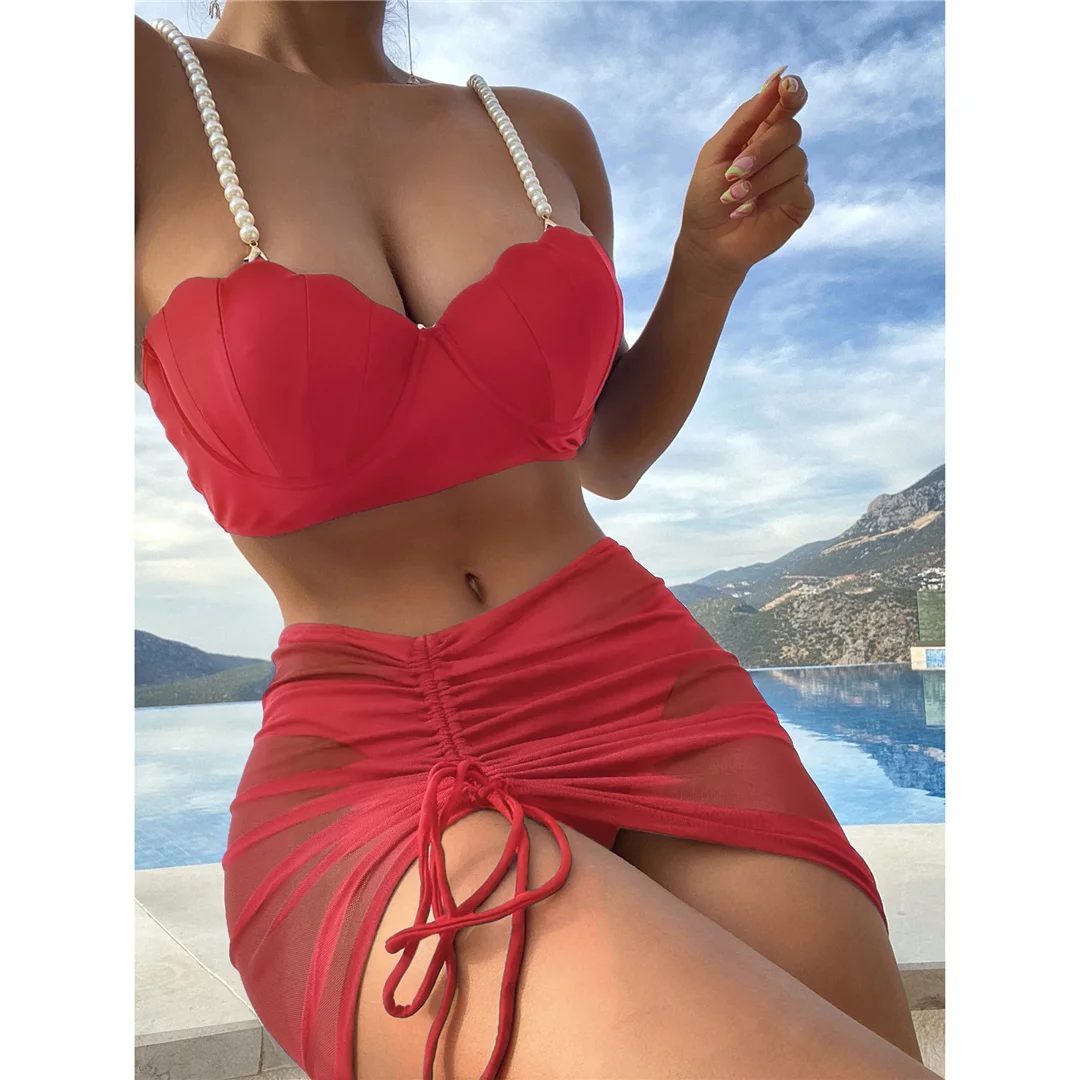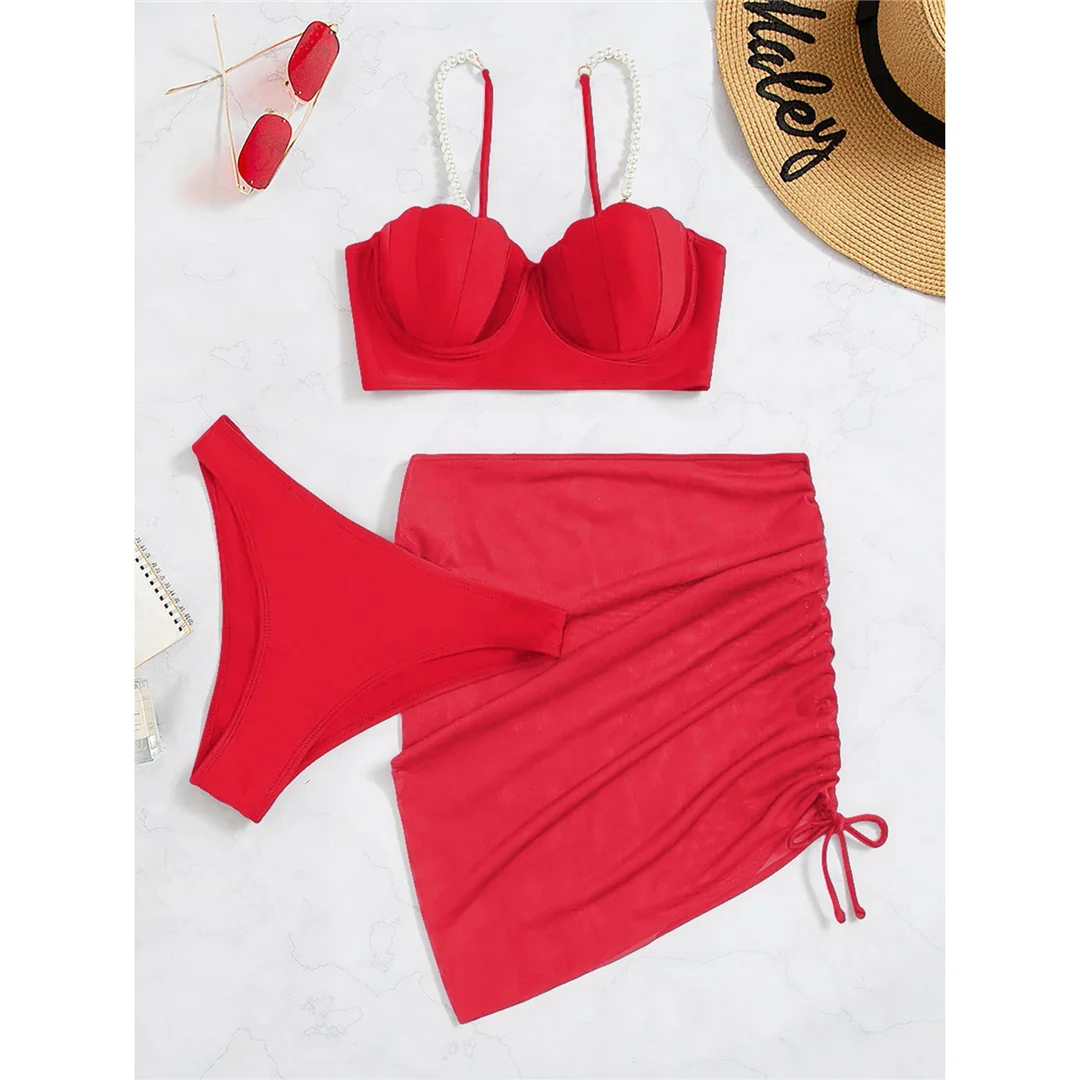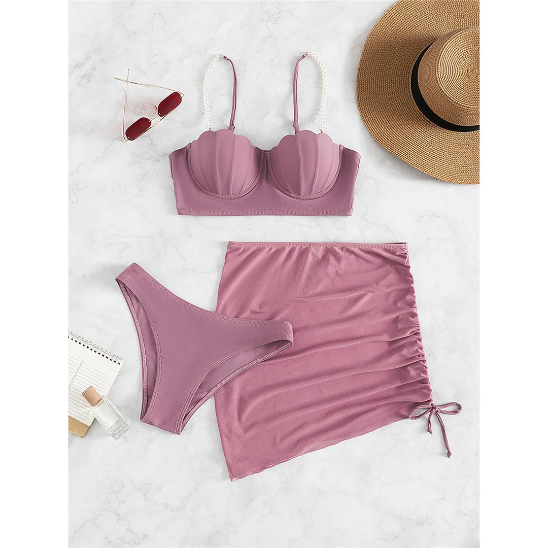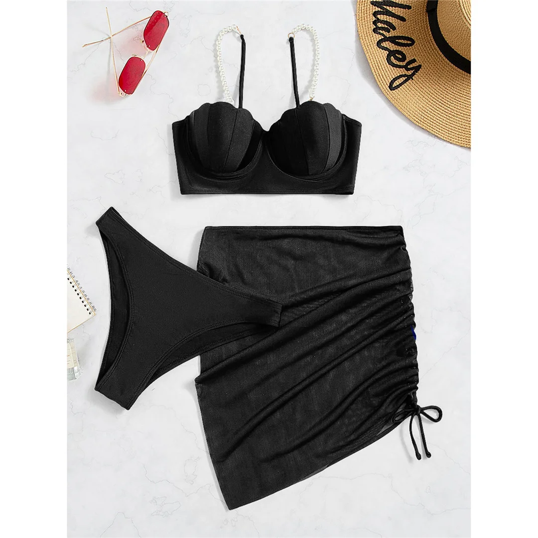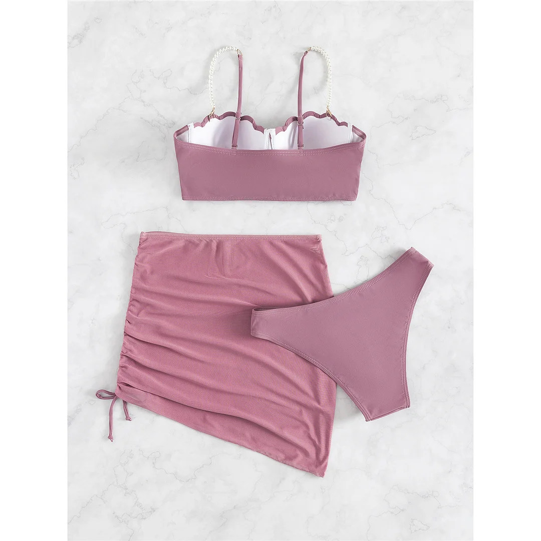 S – XL Pearls Bikini Push Up Swimsuit Female Swimwear Women Three-pieces Bikini set With Bra Cup Bather Bathing Suit Swim V4302