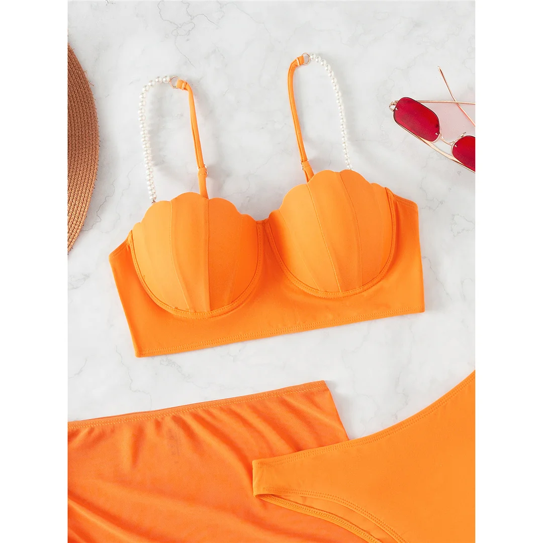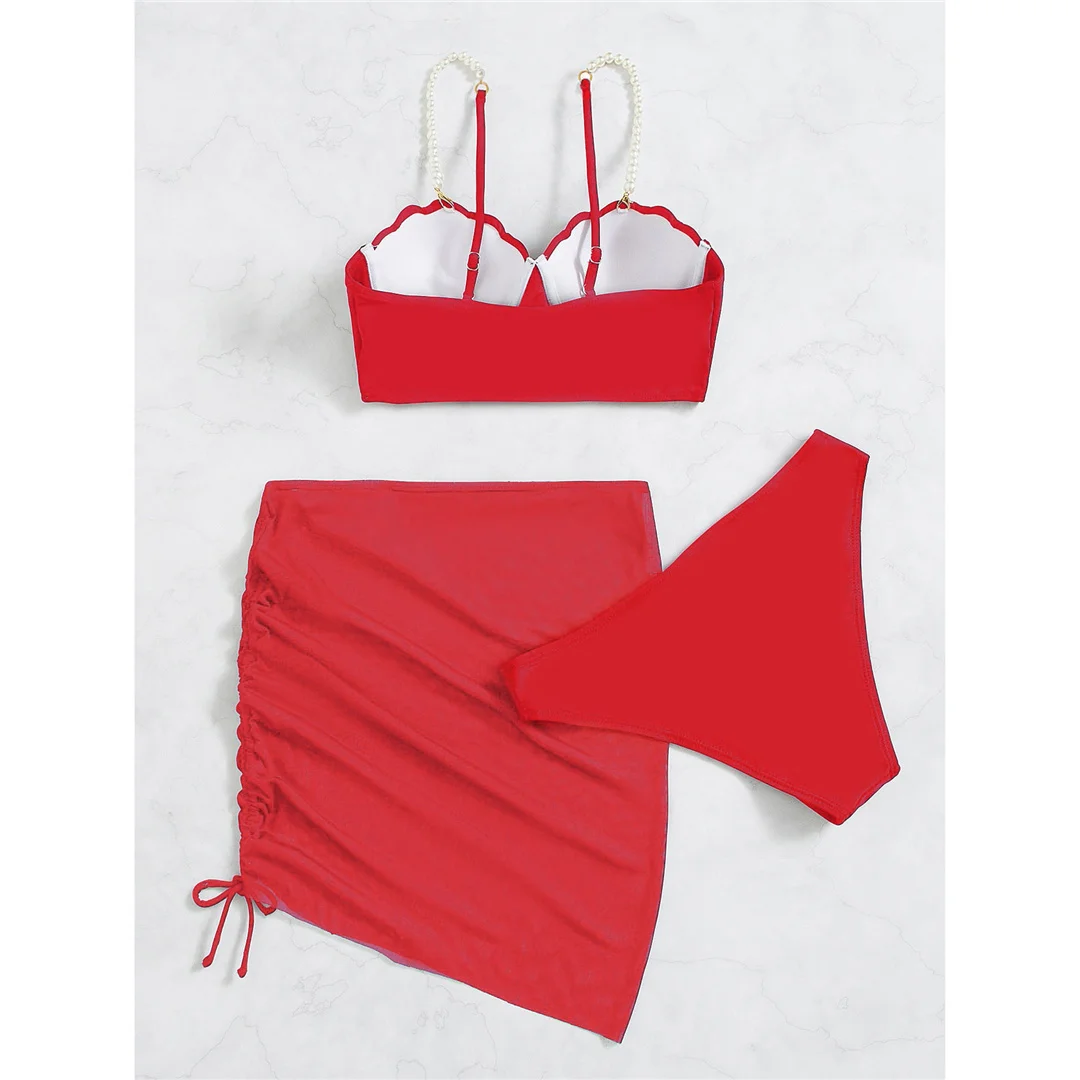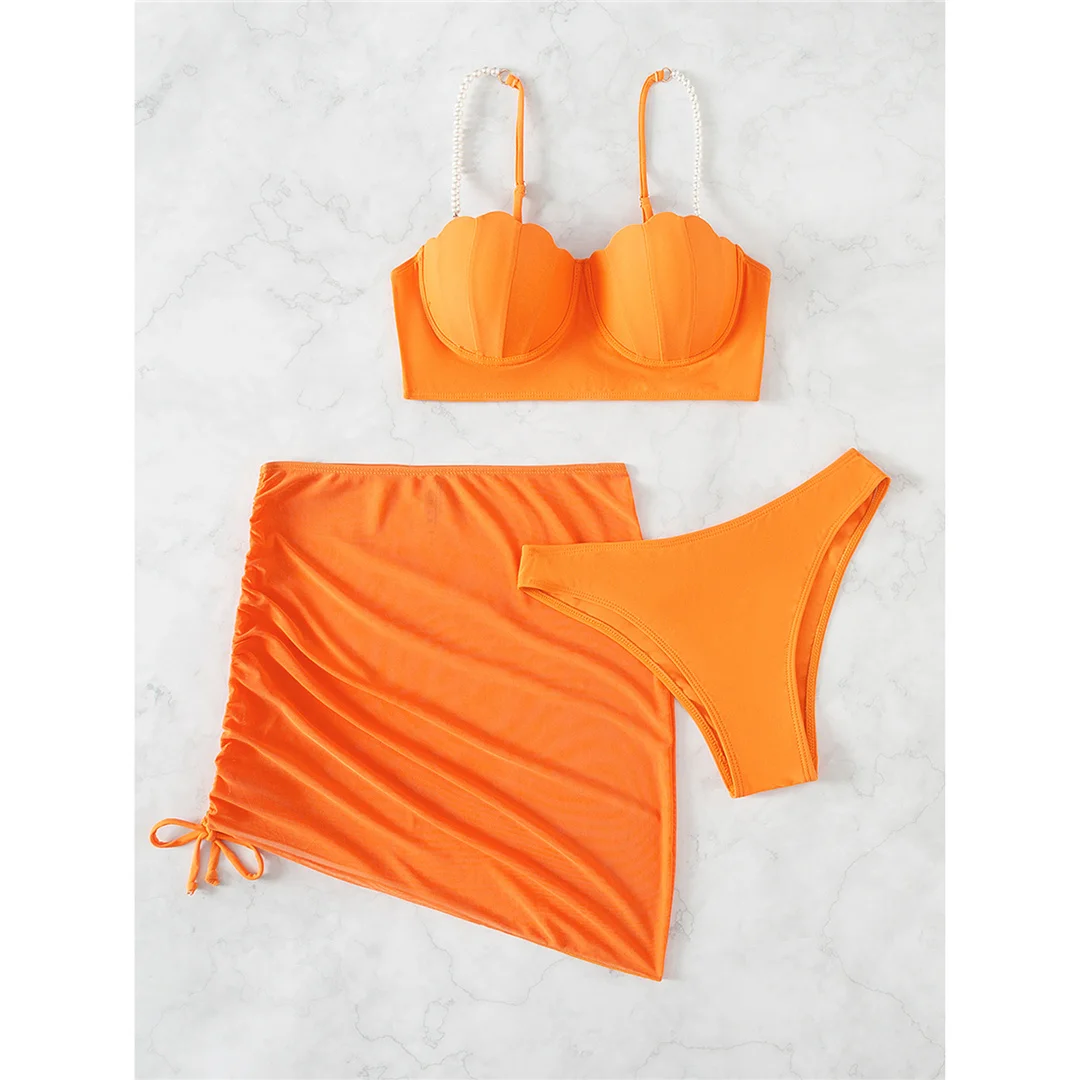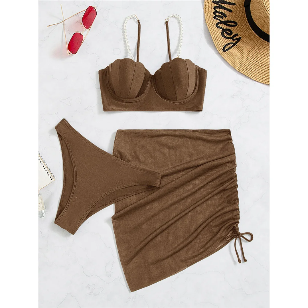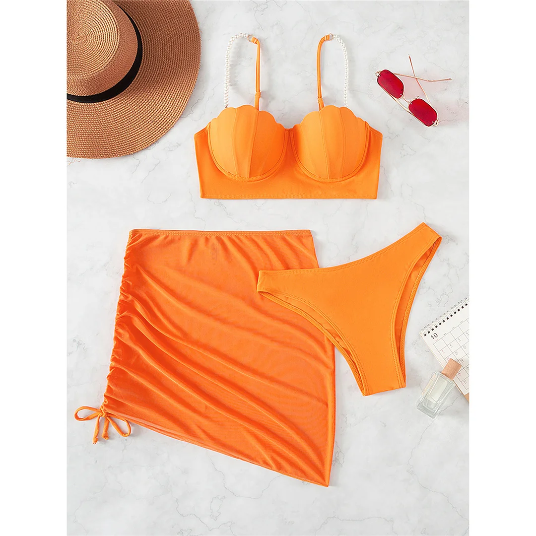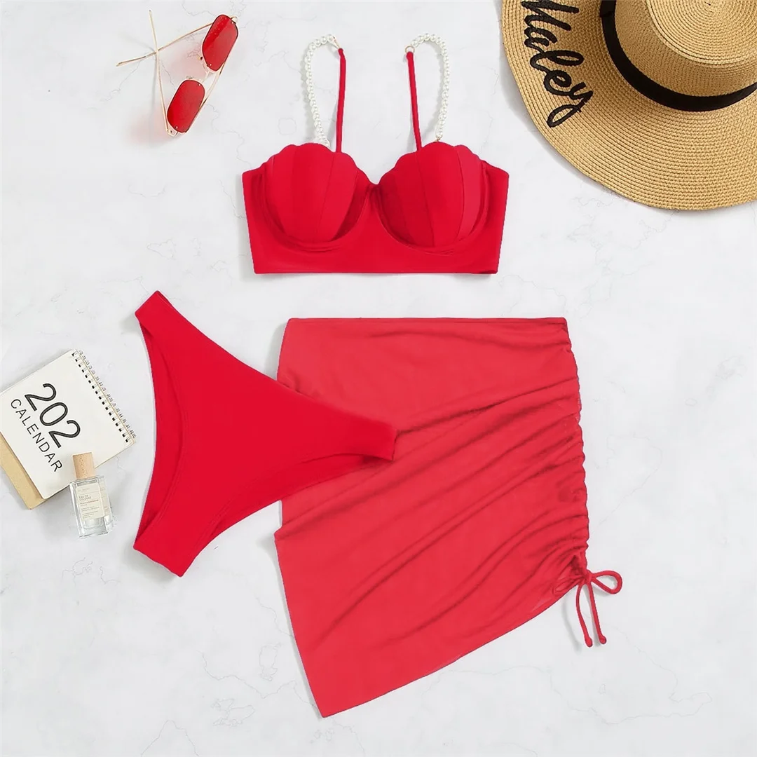 S – XL Pearls Bikini Push Up Swimsuit Female Swimwear Women Three-pieces Bikini set With Bra Cup Bather Bathing Suit Swim V4302