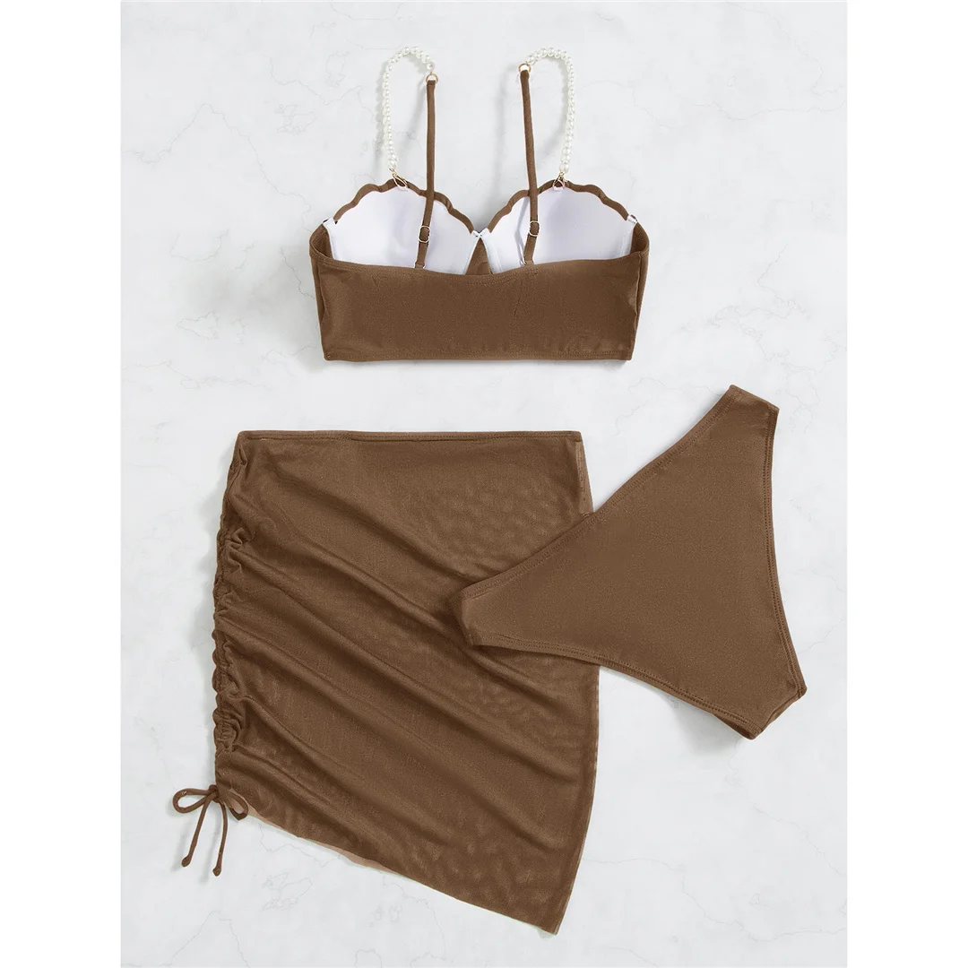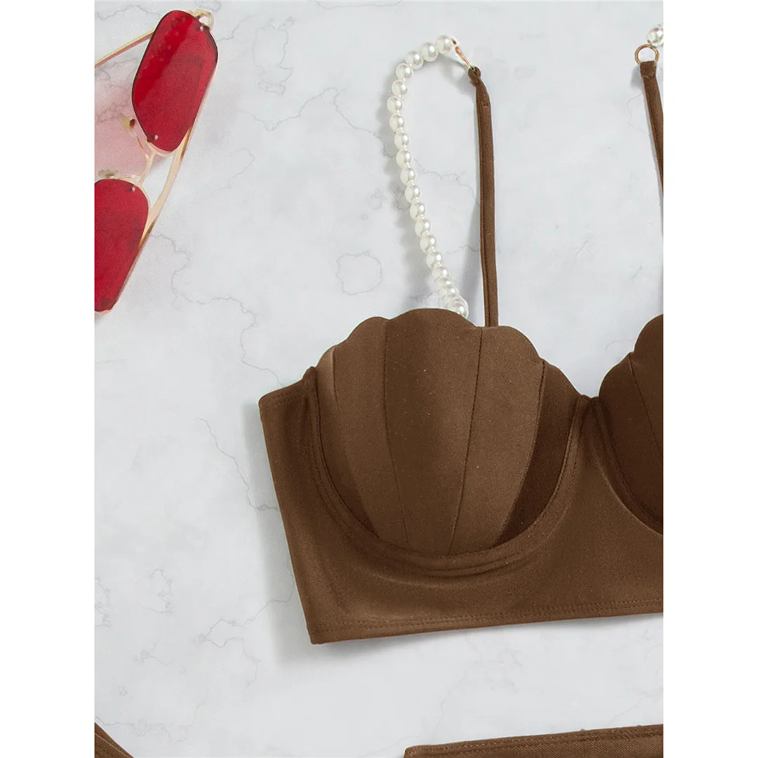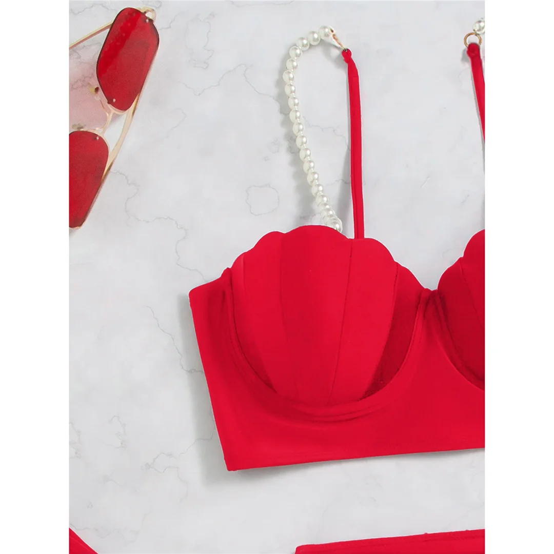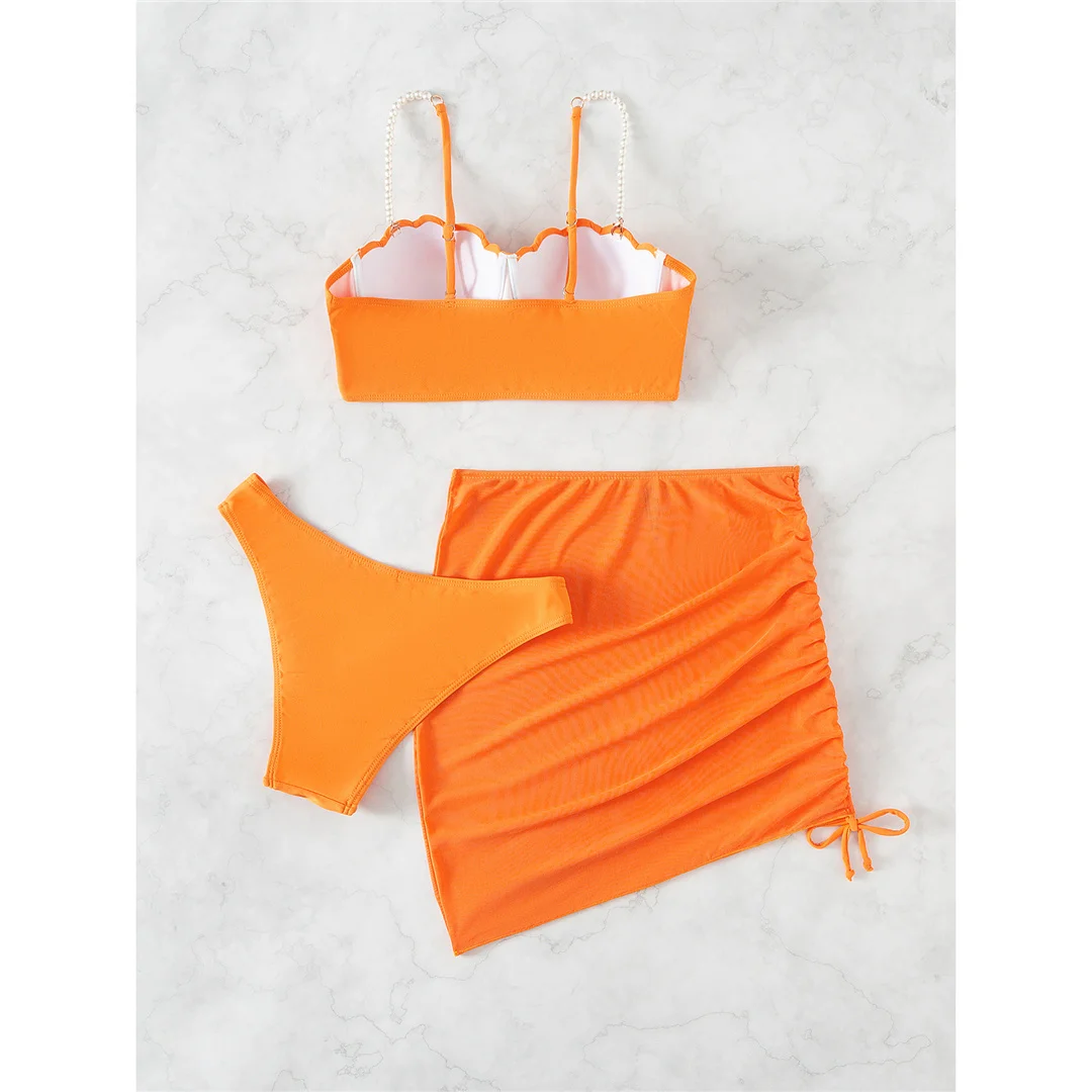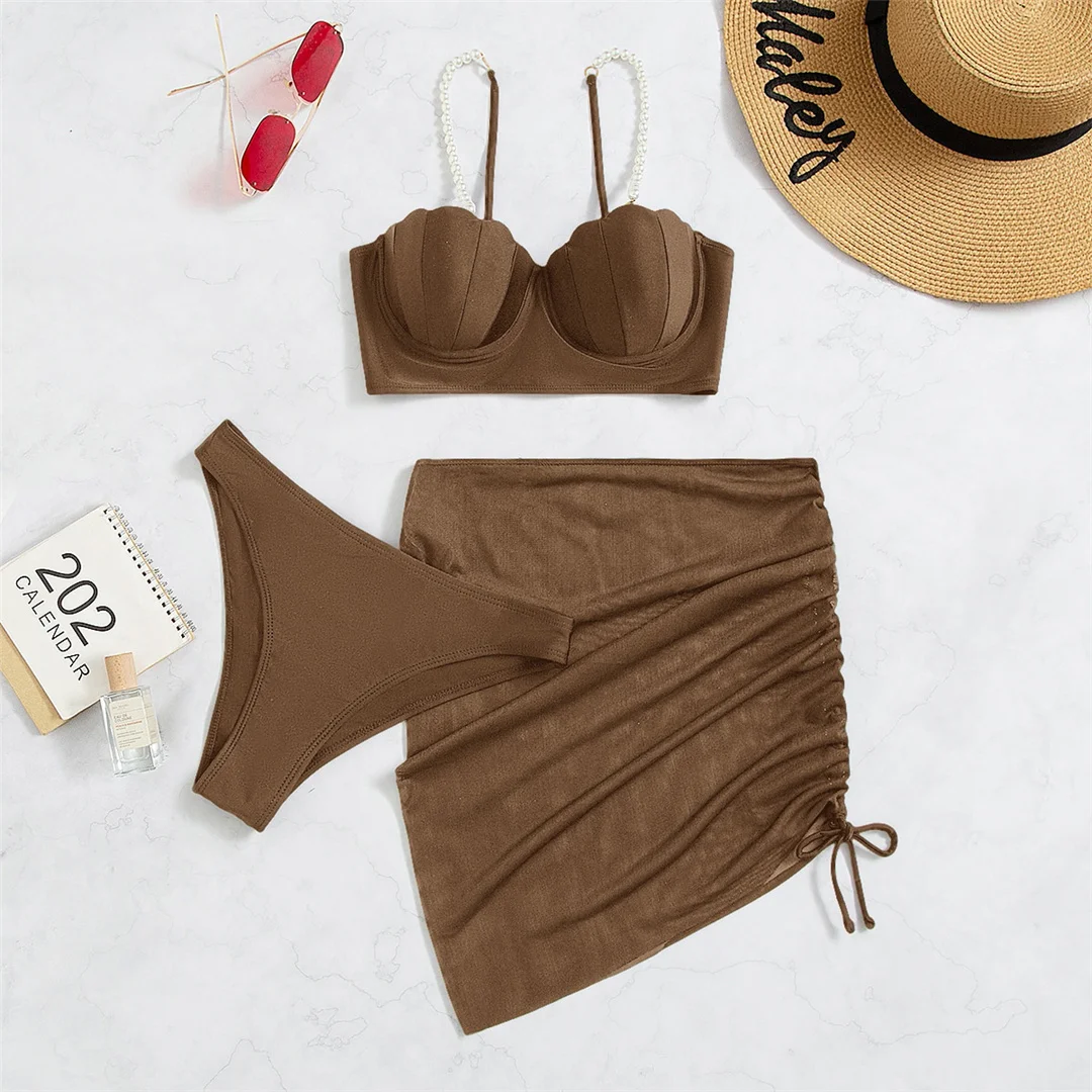 S – XL Pearls Bikini Push Up Swimsuit Female Swimwear Women Three-pieces Bikini set With Bra Cup Bather Bathing Suit Swim V4302