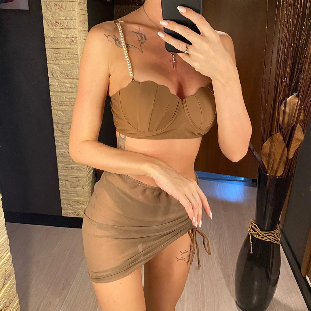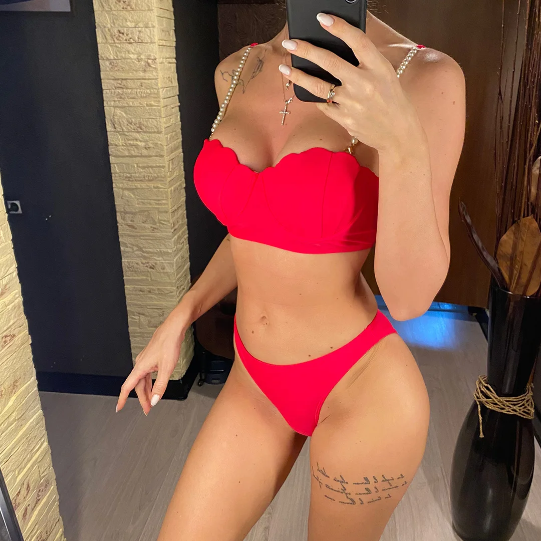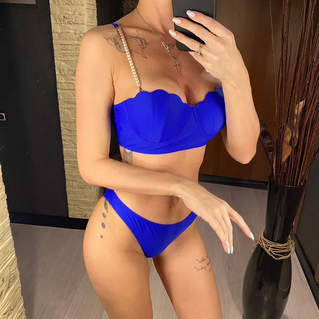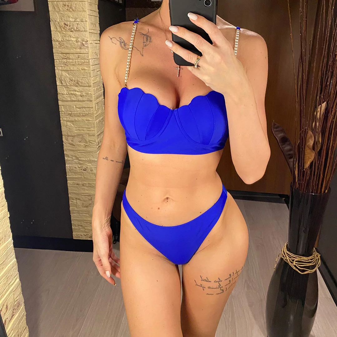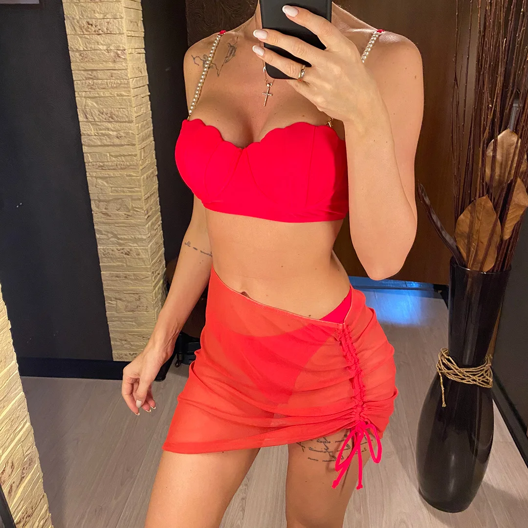 S – XL Pearls Bikini Push Up Swimsuit Female Swimwear Women Three-pieces Bikini set With Bra Cup Bather Bathing Suit Swim V4302