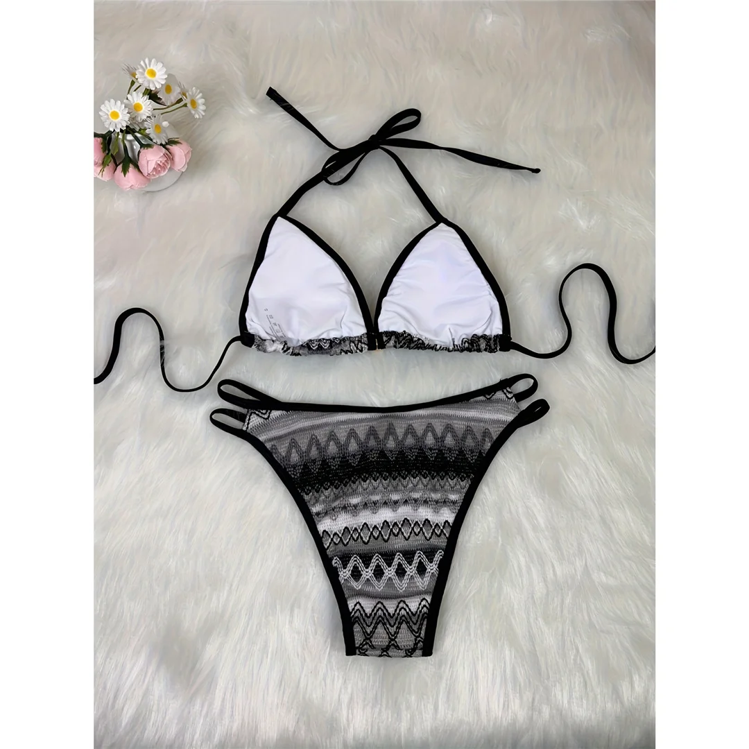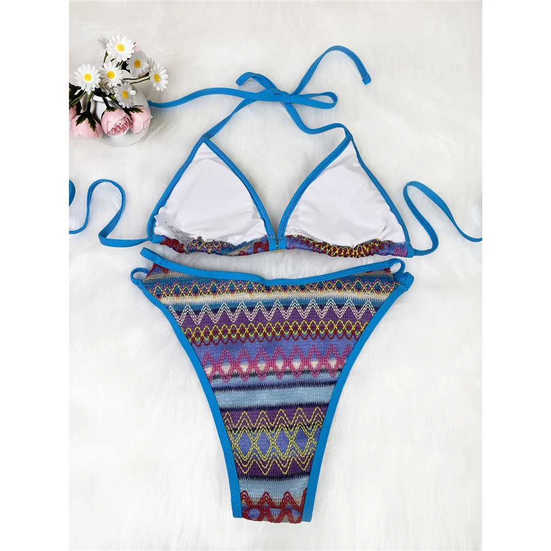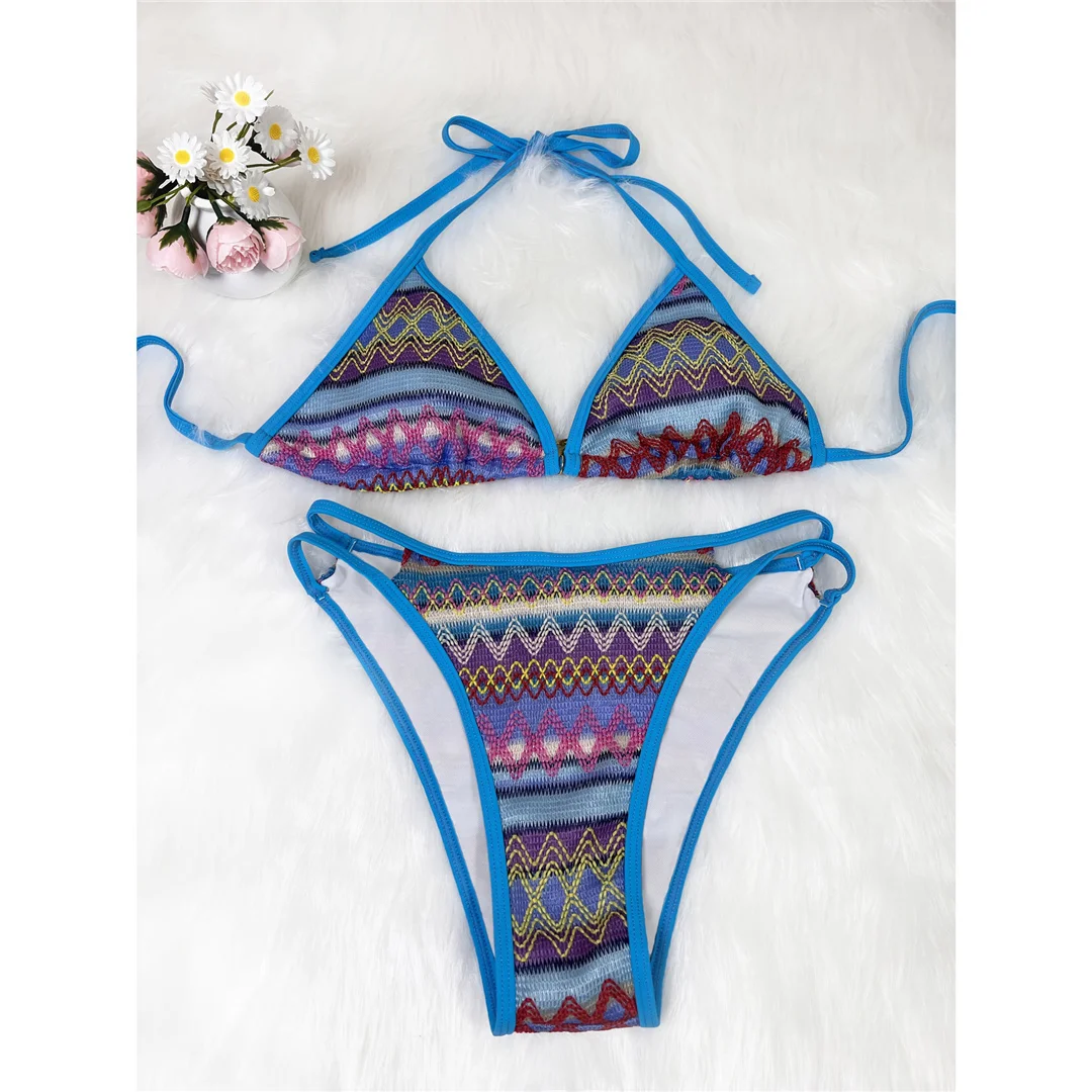S – XL Printed Halter High Leg Cut Bikini Women Swimwear Female Swimsuit Two-pieces Bikini set Bather Bathing Suit Swim V7307