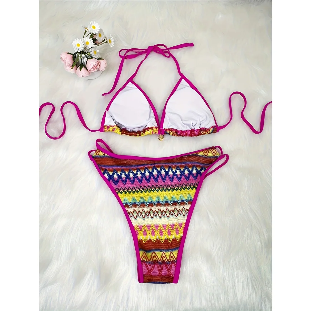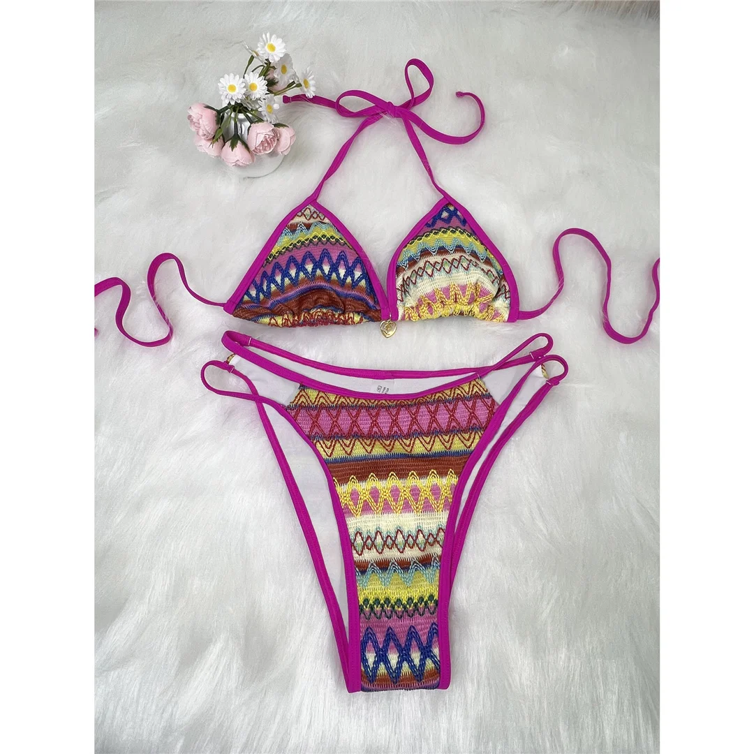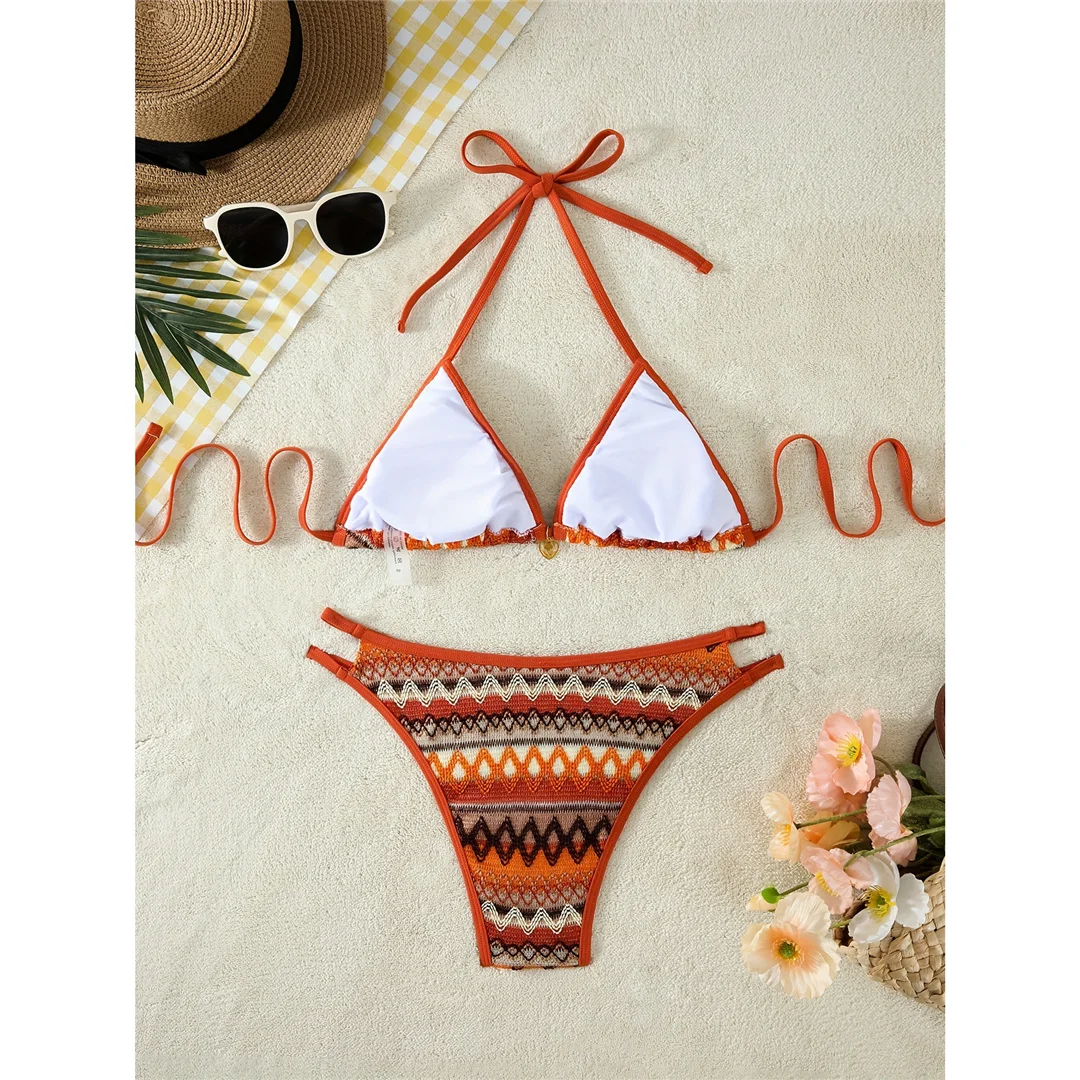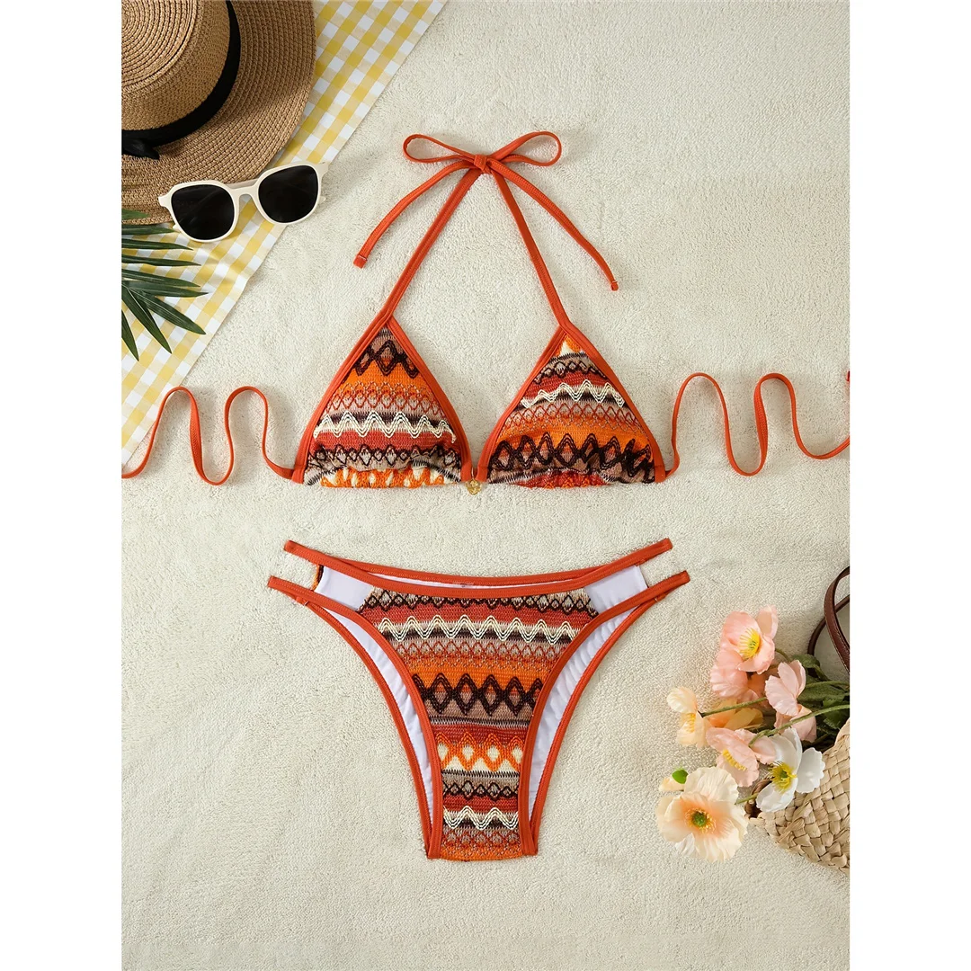 S – XL Printed Halter High Leg Cut Bikini Women Swimwear Female Swimsuit Two-pieces Bikini set Bather Bathing Suit Swim V7307