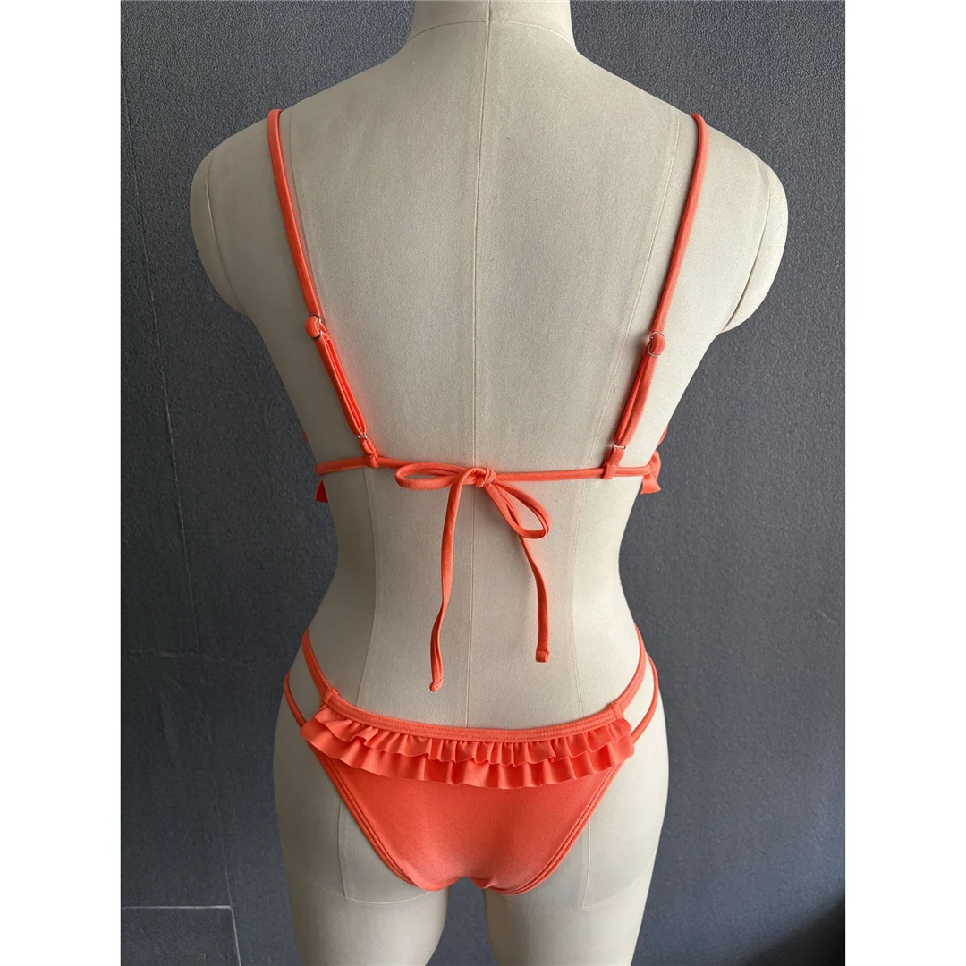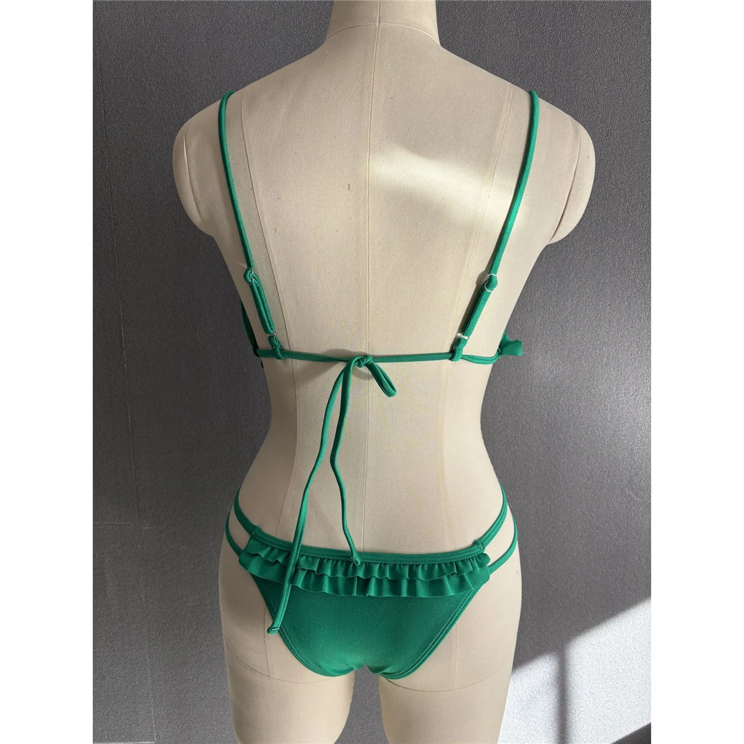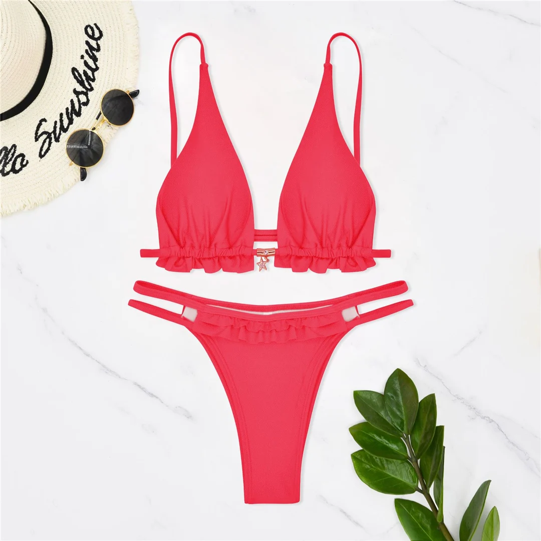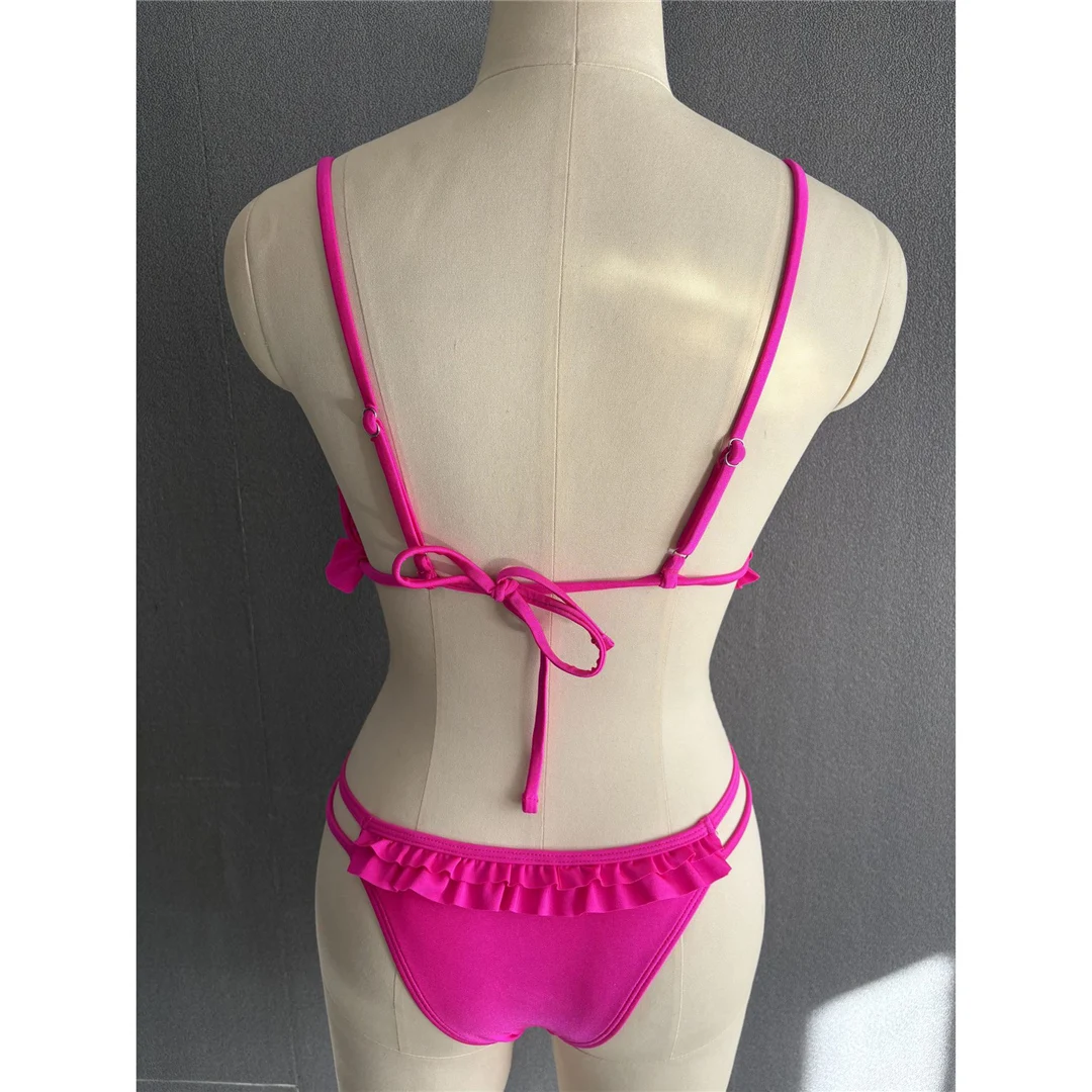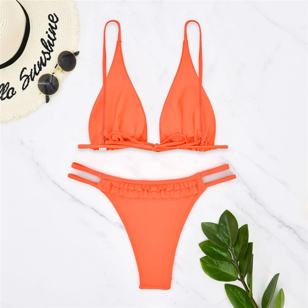 S – XL Ruffled Frilled High Leg Cut Bikini Female Swimsuit Women Swimwear Two-pieces Bikini set Bather Bathing Suit Swim V6142