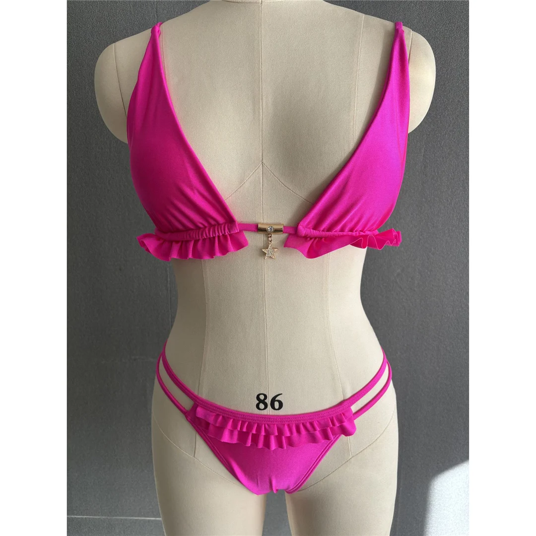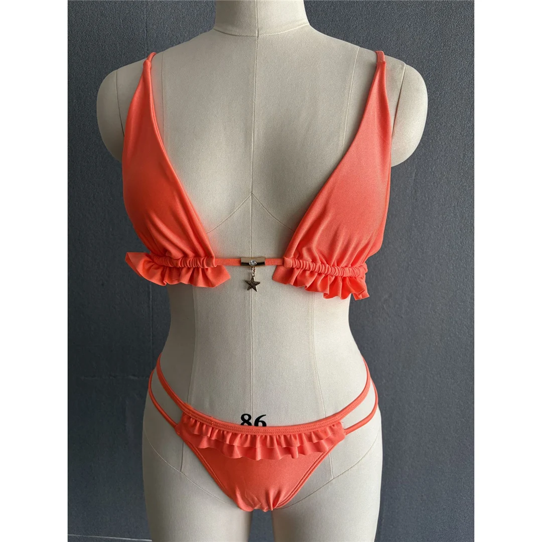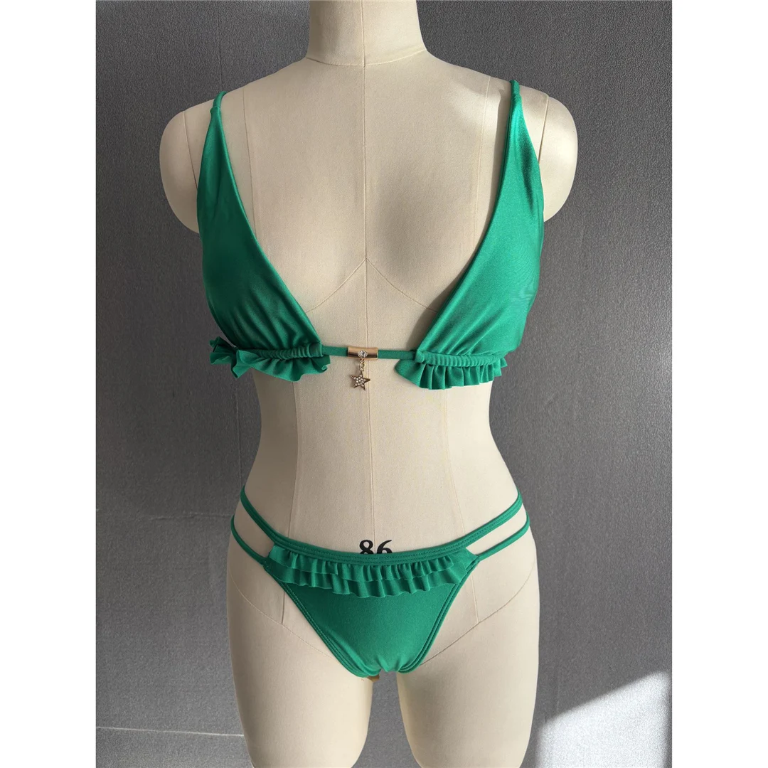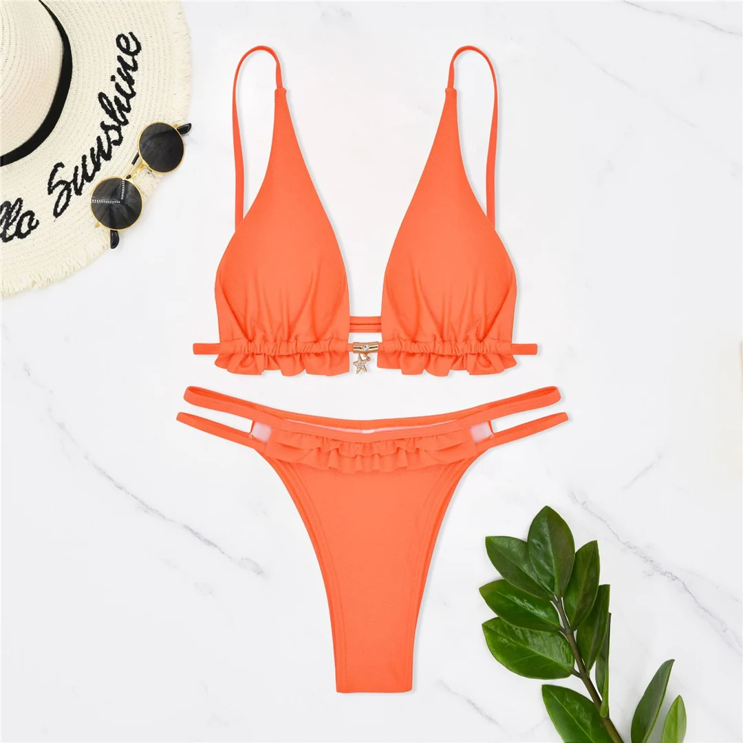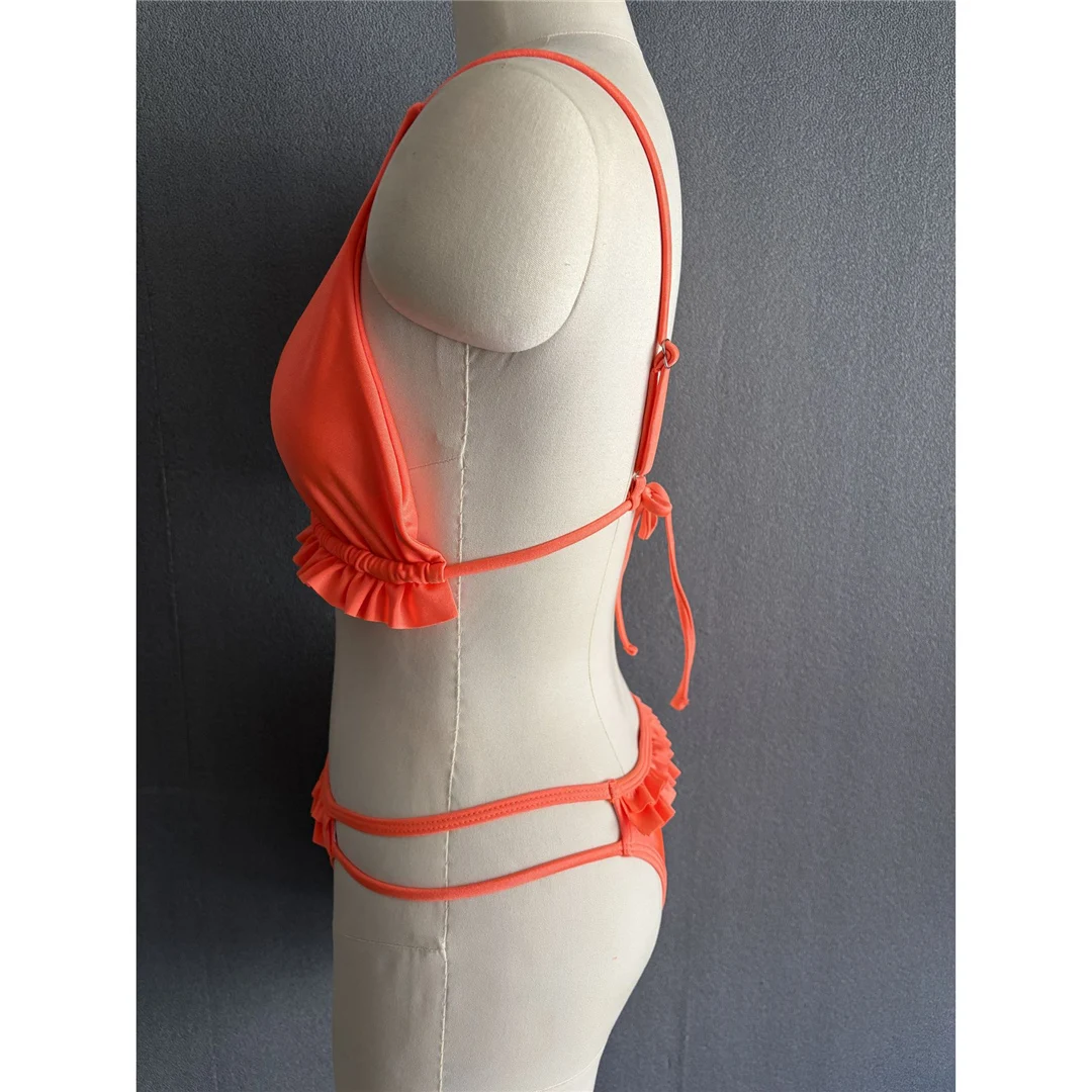 S – XL Ruffled Frilled High Leg Cut Bikini Female Swimsuit Women Swimwear Two-pieces Bikini set Bather Bathing Suit Swim V6142