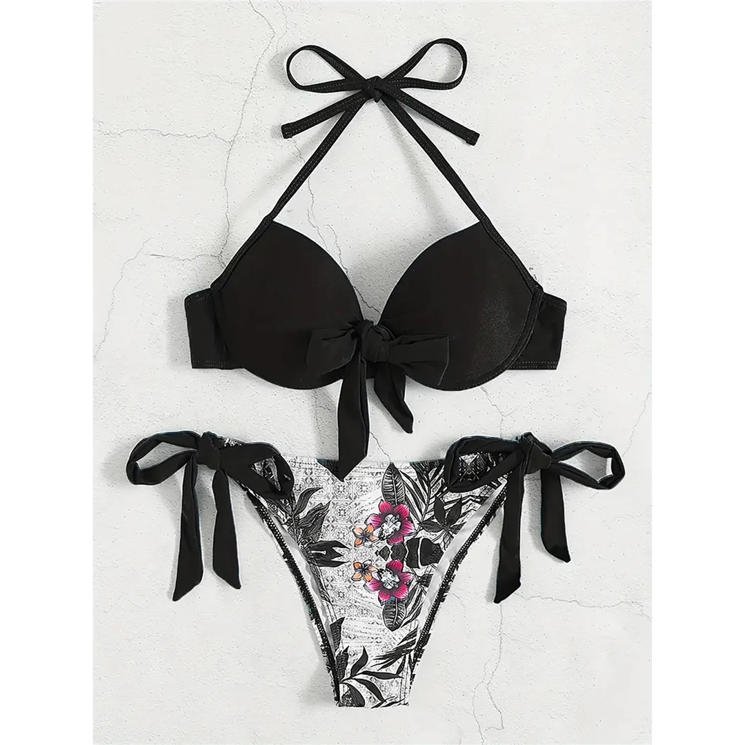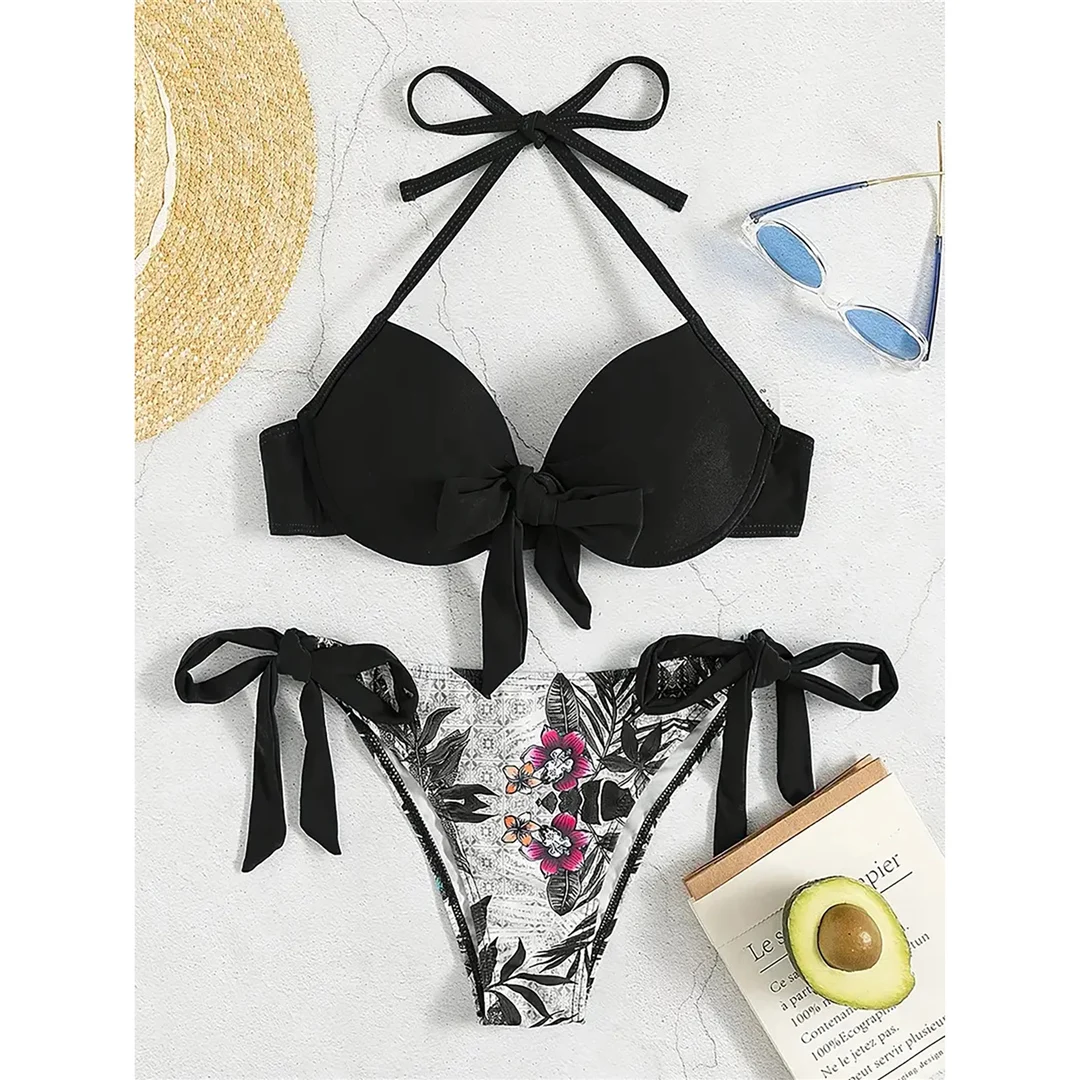 S – XL Sexy Flower Printed Underwired Bikini Female Swimsuit Women Swimwear Two-pieces Bikini set Bather Bathing Suit Swim V5984