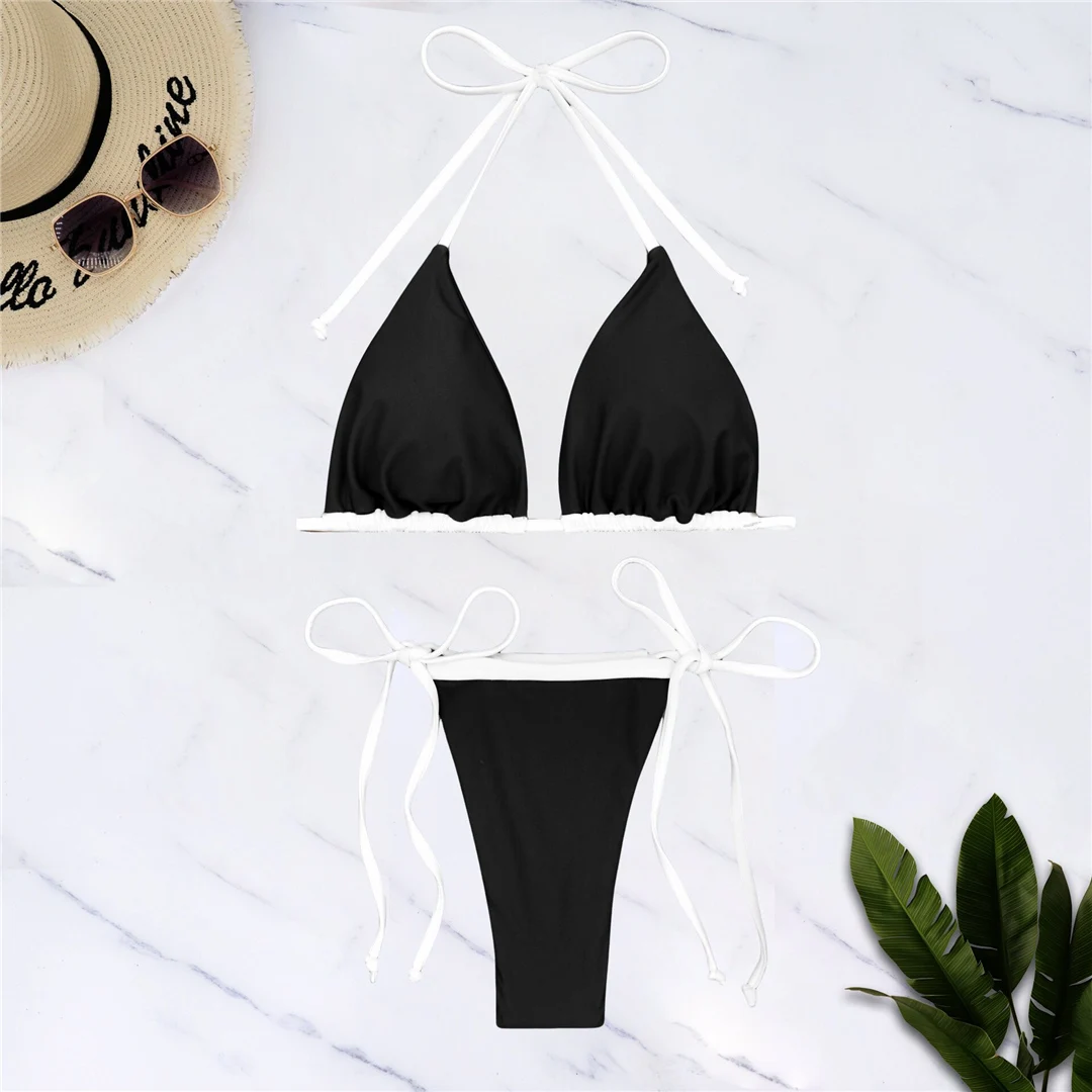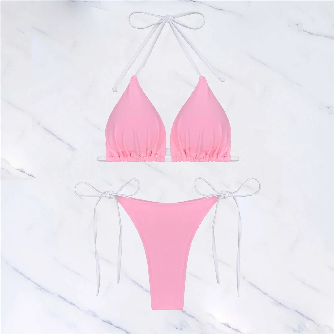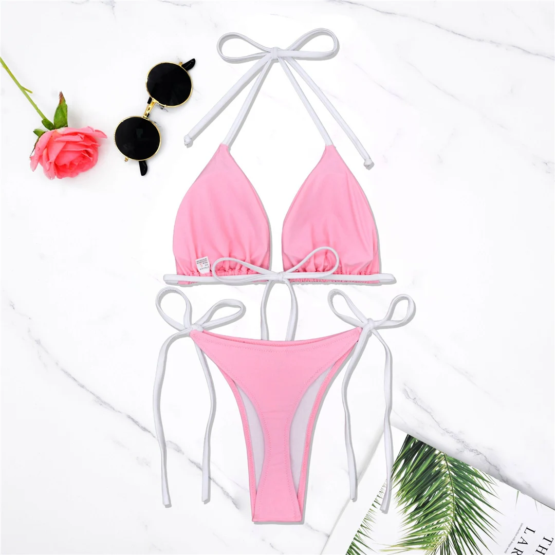 S – XL Sexy Halter Strappy High Cut Bikini Women Swimwear Female Swimsuit Two-pieces Bikini set Bather Bathing Suit Swim V6244