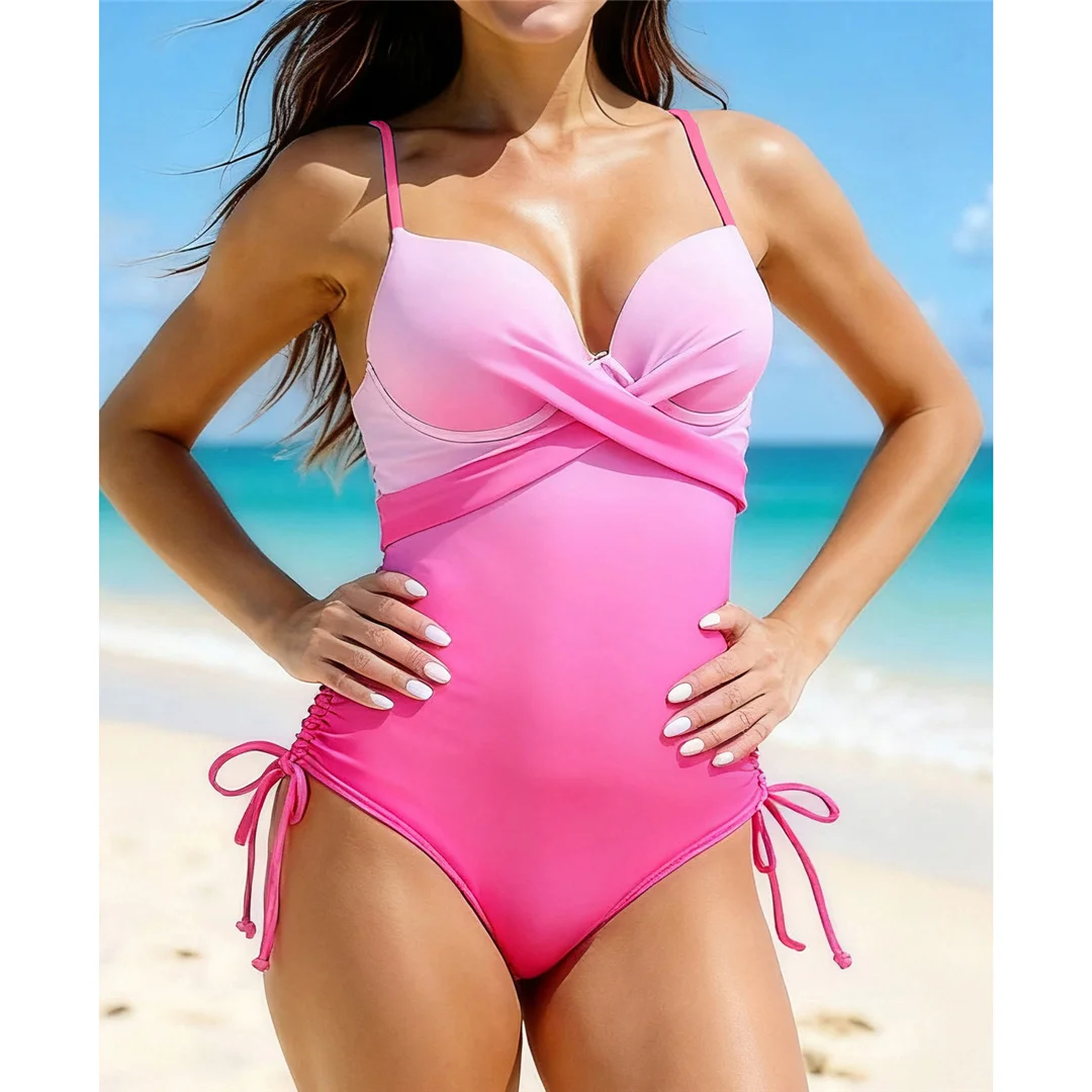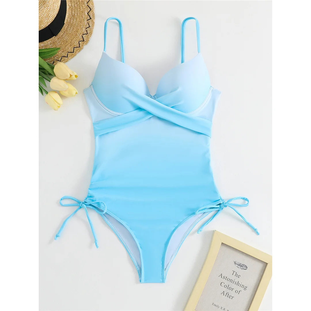 S – XL Sexy Lace Up V Neck Underwired Bra Cup Women Swimwear One Piece Swimsuit Female Monokini Bather Bathing Suit Swim V7378