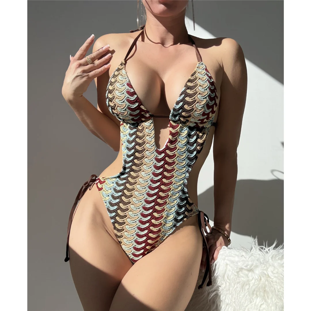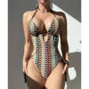 S – XL Sexy Printed Deep V Neck Halter One Piece Swimsuit Women Swimwear Female Monokini Backless Bather Bathing Suit Swim V7447