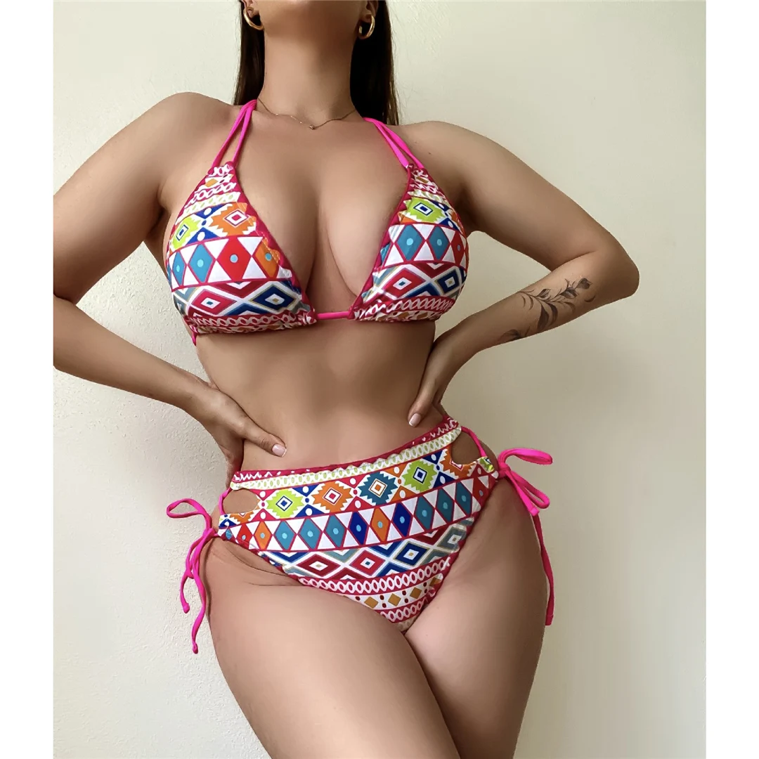 S – XL Sexy Printed Halter High Waist Bikini Female Swimsuit Women Swimwear Two-pieces Bikini set Bather Bathing Suit Swim V5999