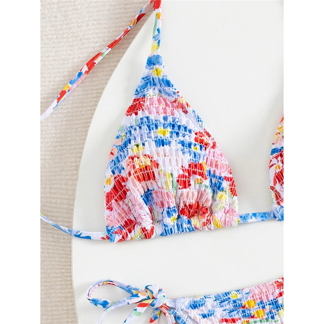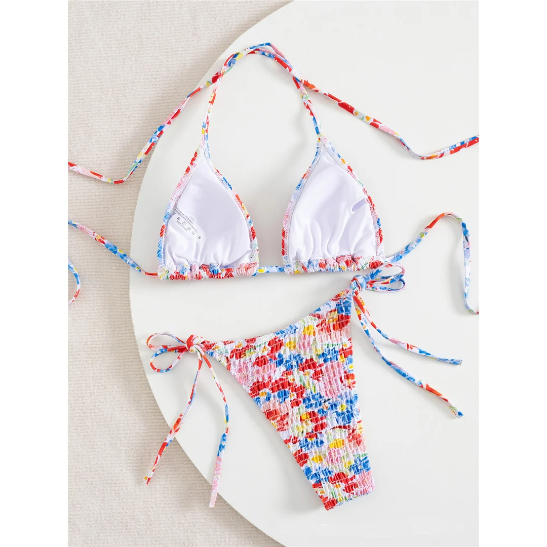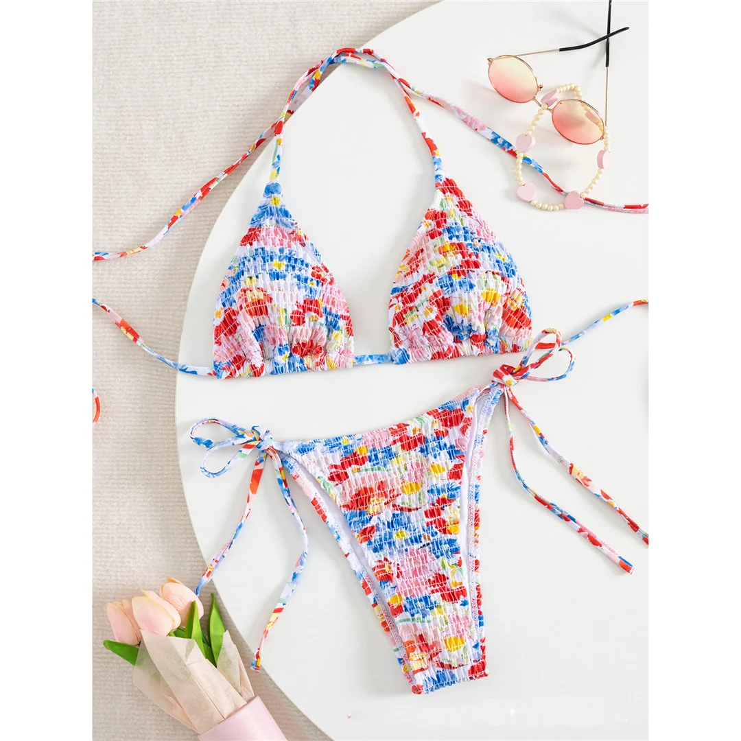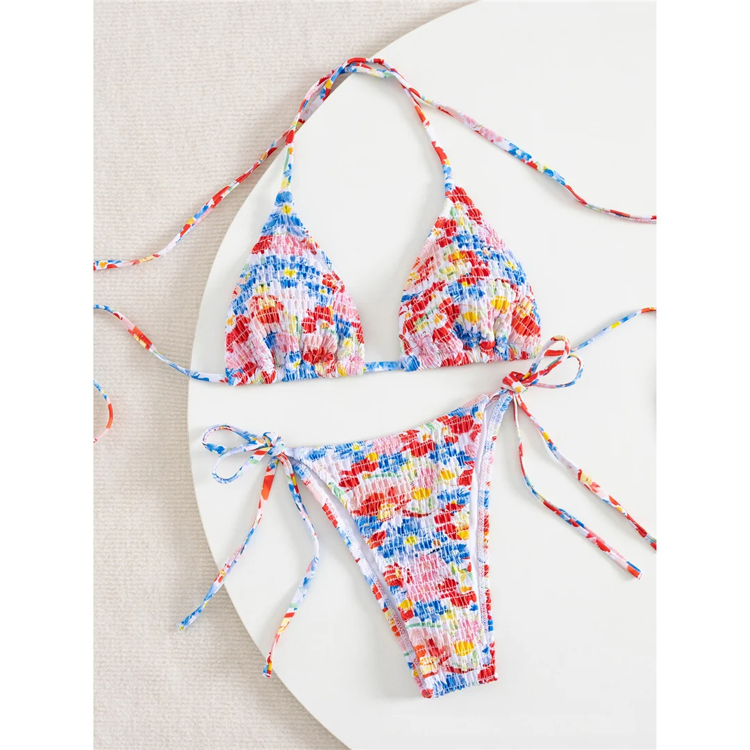 S – XL Sexy Printed Wrinkled Crinkled Bikini Female Swimsuit Women Swimwear Two-pieces Bikini set Bather Bathing Suit Swim V7268