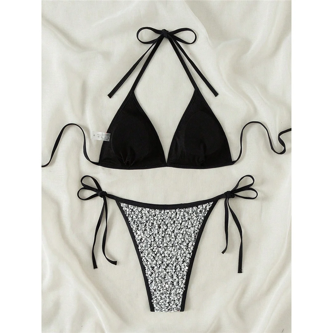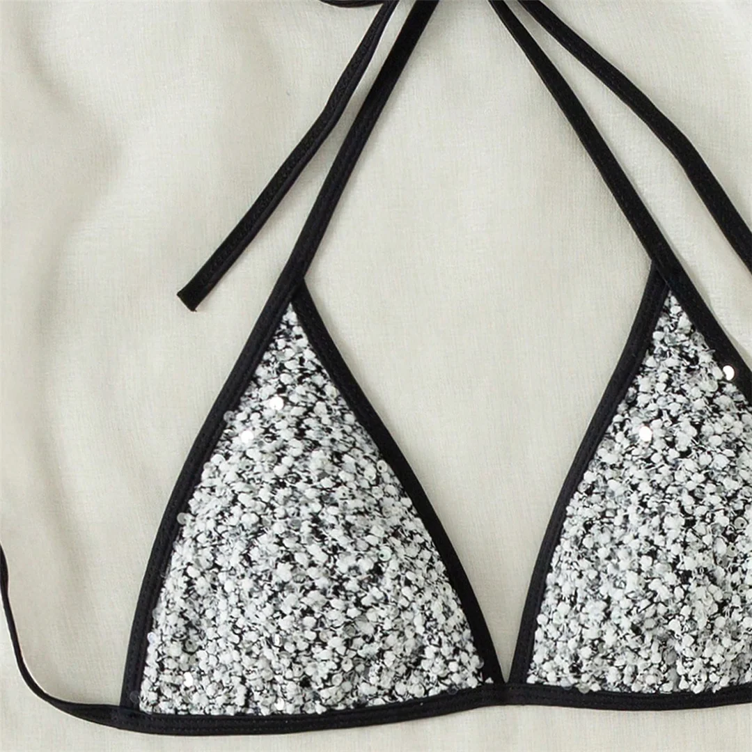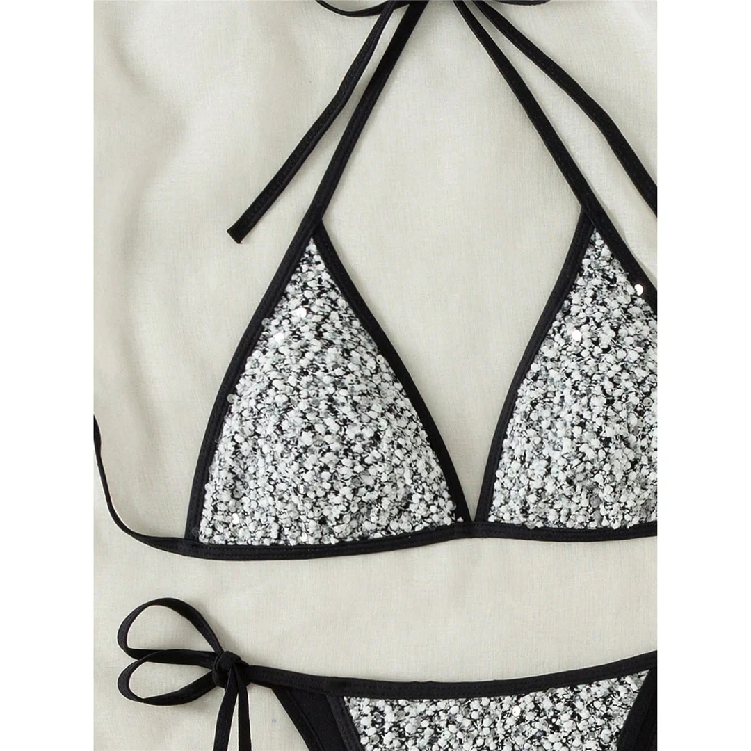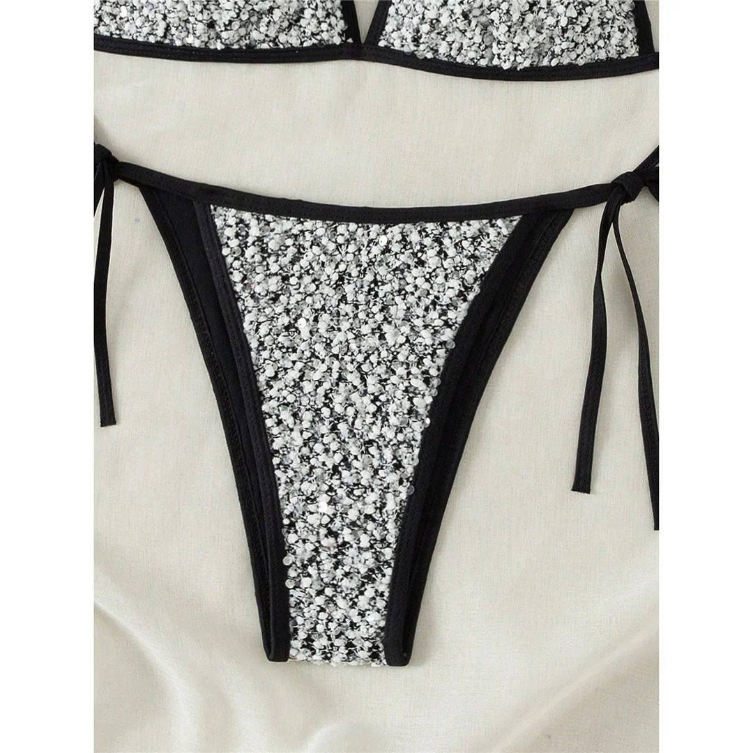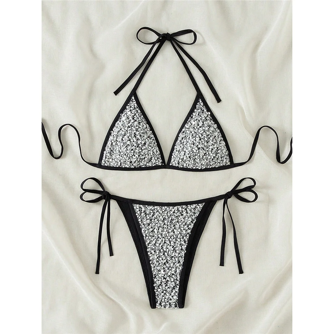 S – XL Shiny Sparkling Halter Bikini Women Swimwear Female Swimsuit Two-pieces Bikini set Strappy Bather Bathing Suit Swim V7523
