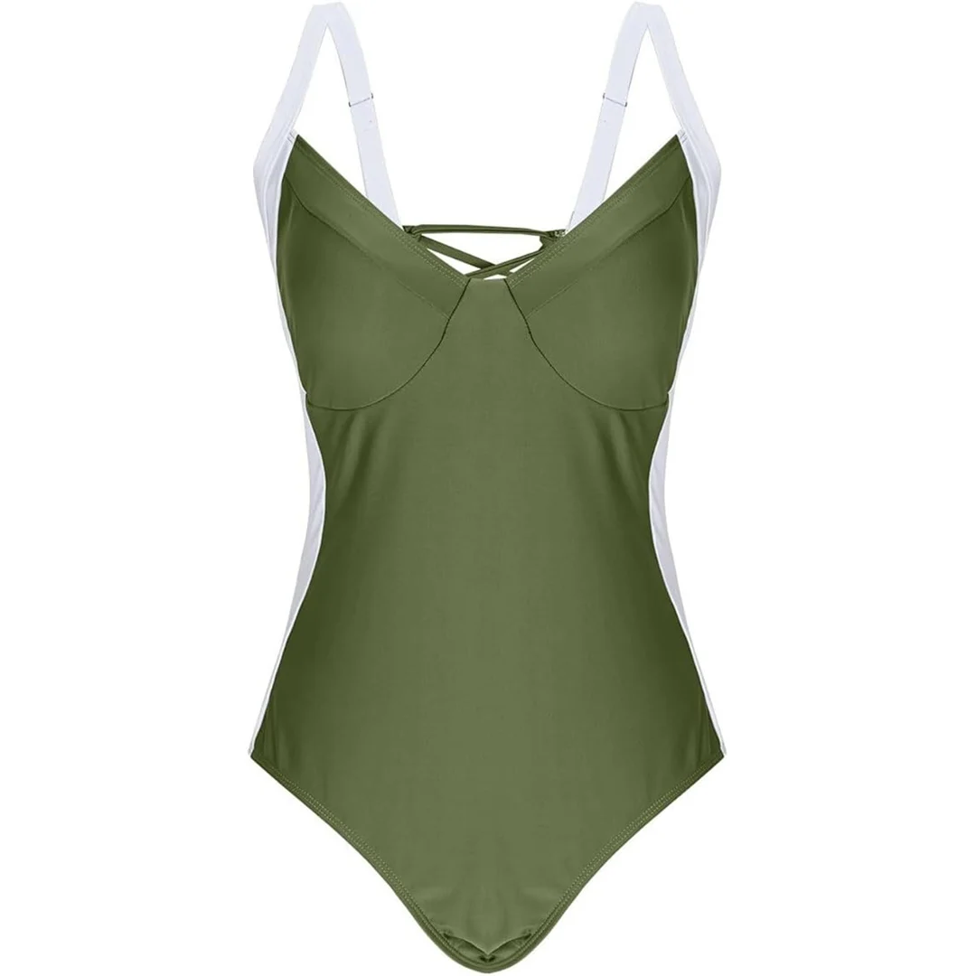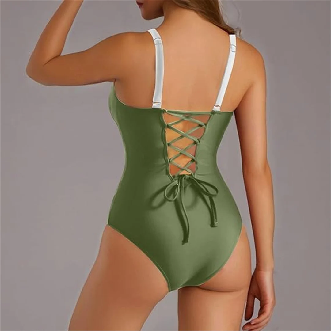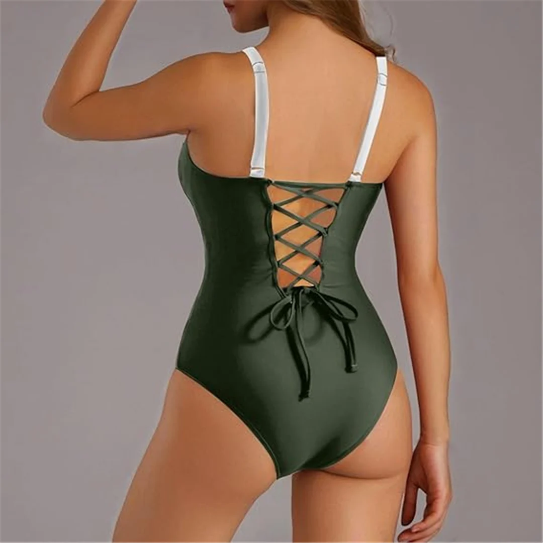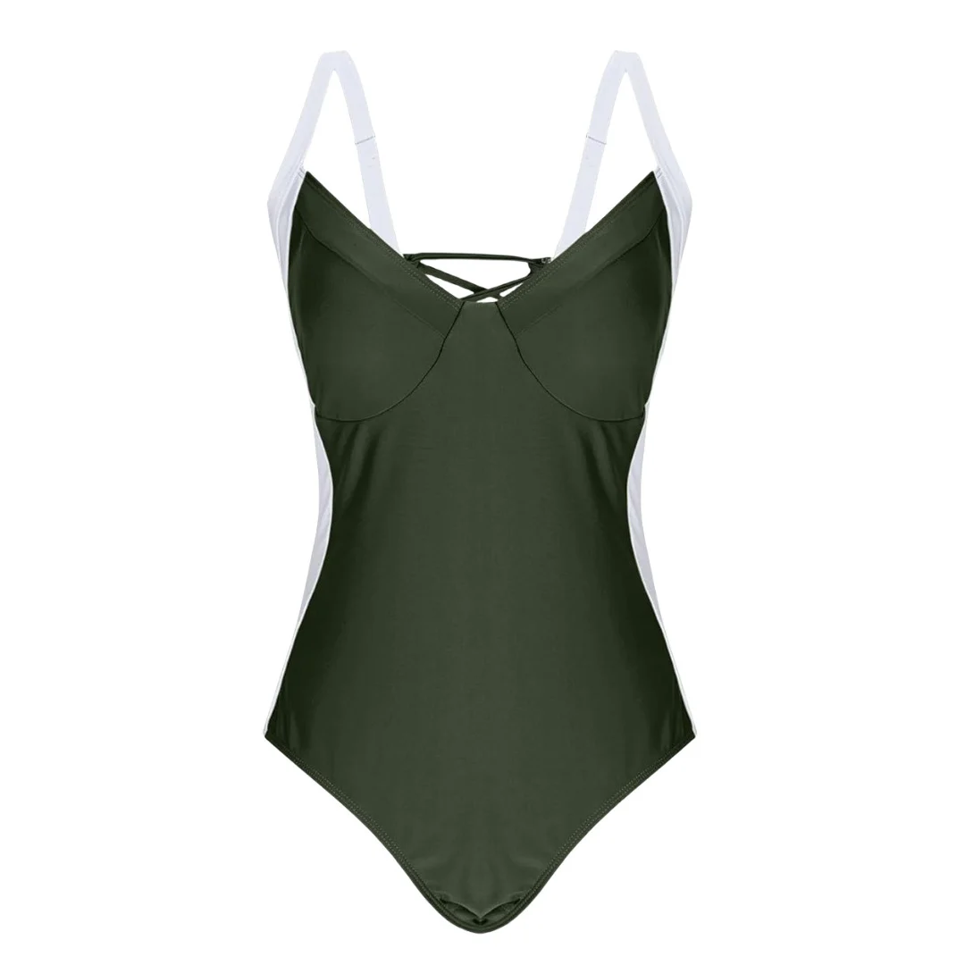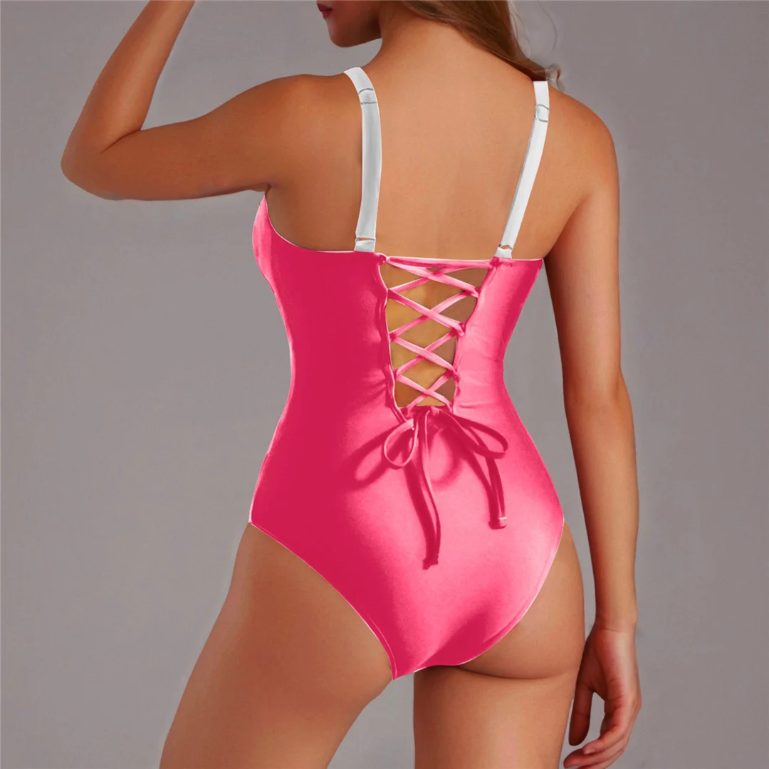 S – XL Splicing Lace Up High Cut Leg Women Swimwear One Piece Swimsuit Female Padded Monokini Bather Bathing Suit Swim V6952B